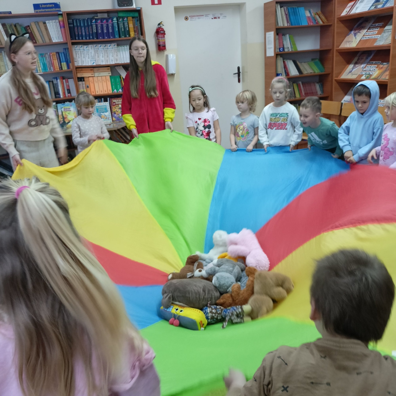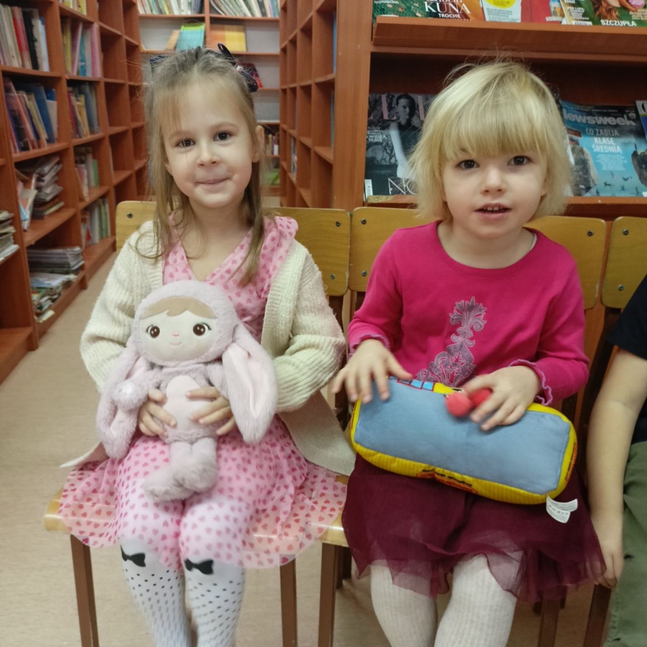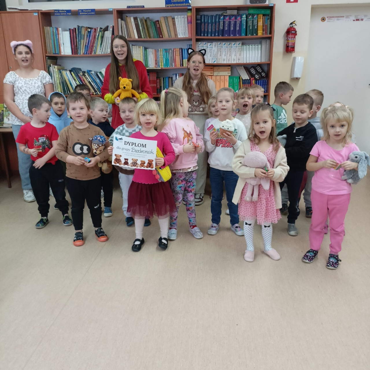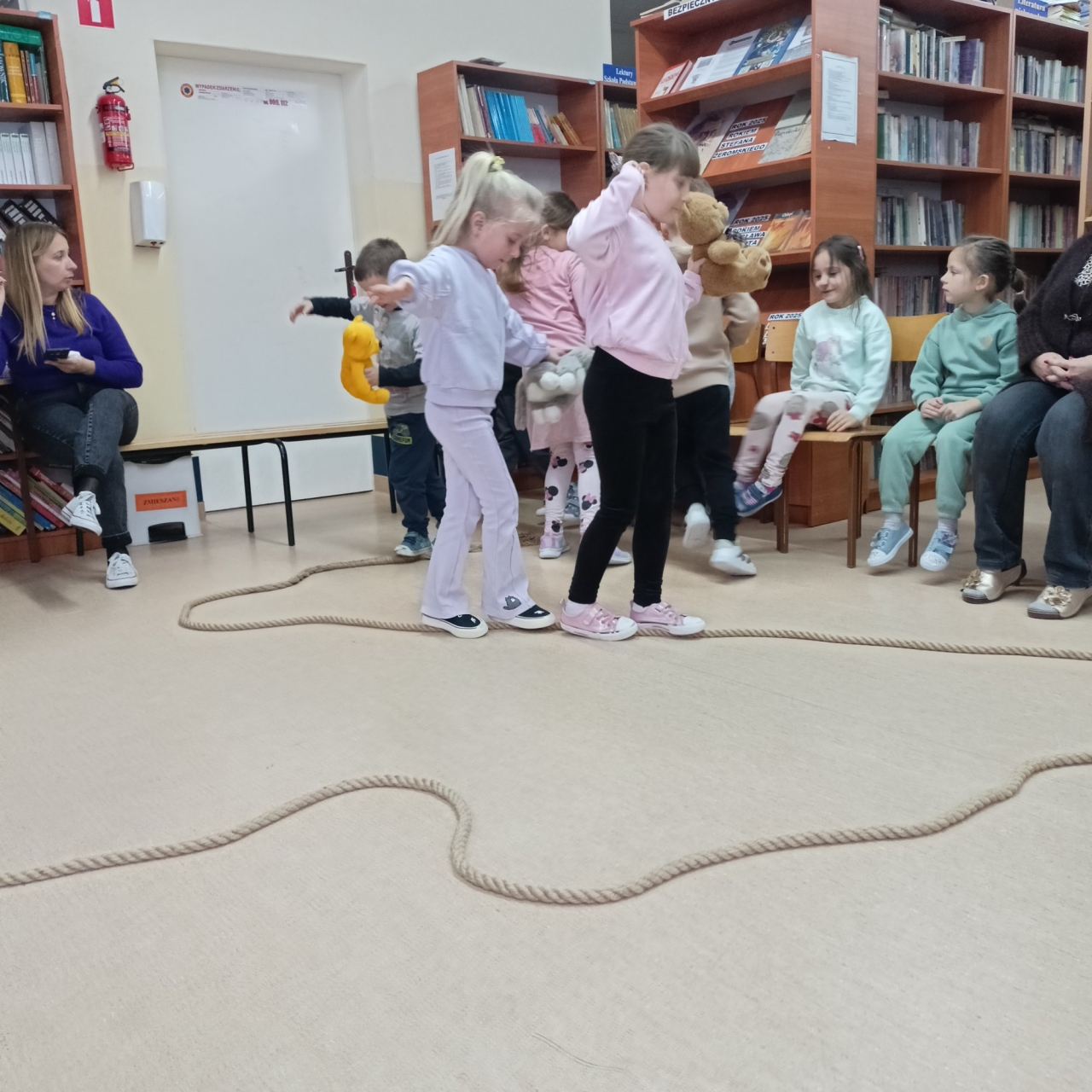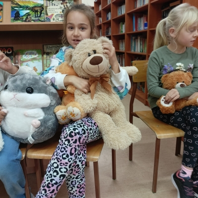 W tym dniu dzieci przyszły do biblioteki ze swoimi ulubionymi pluszakami. Już w drzwiach witał ich ogromny pluszowy miś, któremu podawały rękę. Dzieci poznały historię powstania pluszowego misia a potem opowiadały o swoich misiach.
