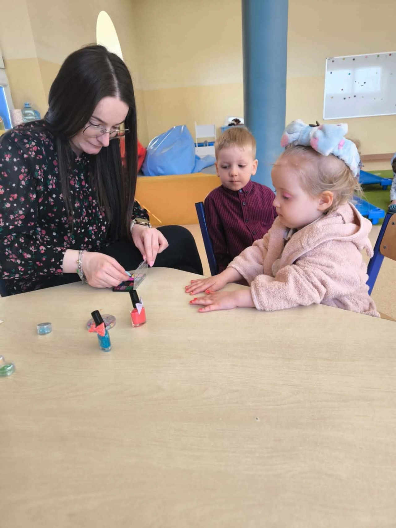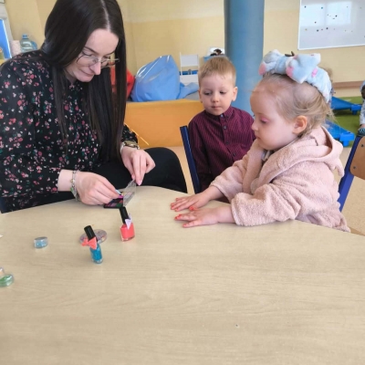 Specjalnie na tę okazję sale dydaktyczne zamieniły się w strefę relaksu i urody. Dziewczynki mogły skorzystać z różnych przyjemności przygotowanych z myślą o nich. Wśród atrakcji znalazło się malowanie paznokci w kolorowe wzory, delikatne maseczki pielęgnacyjne na twarz, a także chwile odpoczynku i relaksu przy spokojnej muzyce.