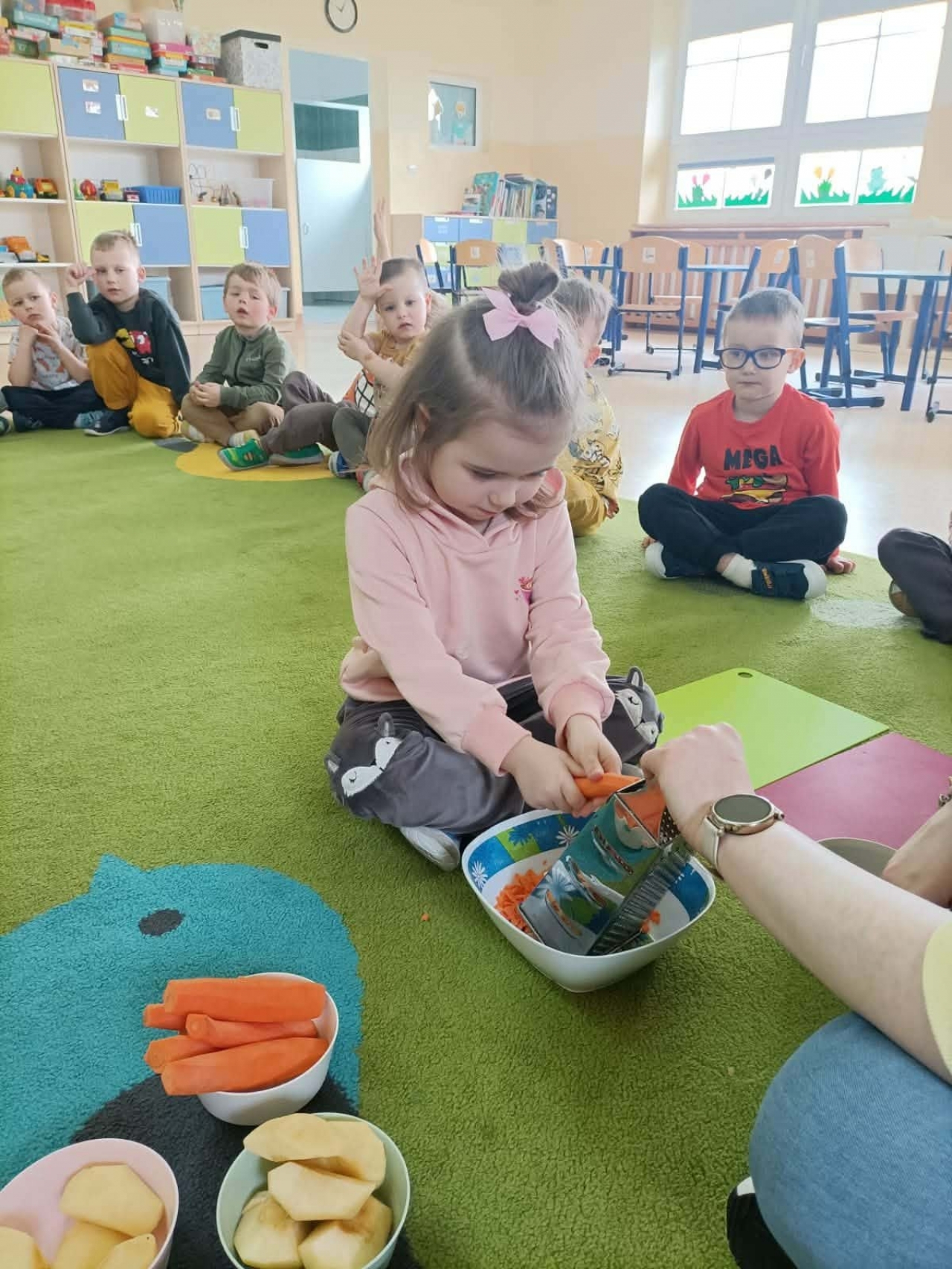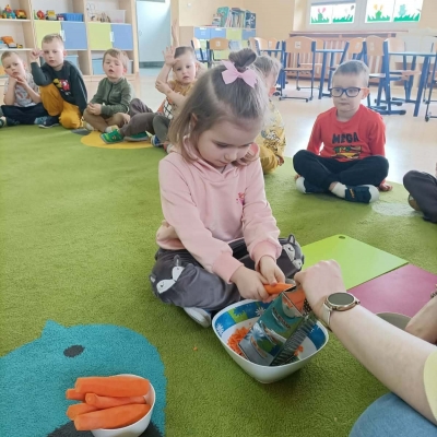 Podczas zajęć dzieci dowiedziały się, dlaczego marchewka jest taka zdrowa. Rozmawialiśmy o witaminach, które wspierają wzrok i odporność, a także o tym, jak warzywa wpływają na nasze samopoczucie. Nie zabrakło również ciekawostek i zagadek związanych z marchewką.