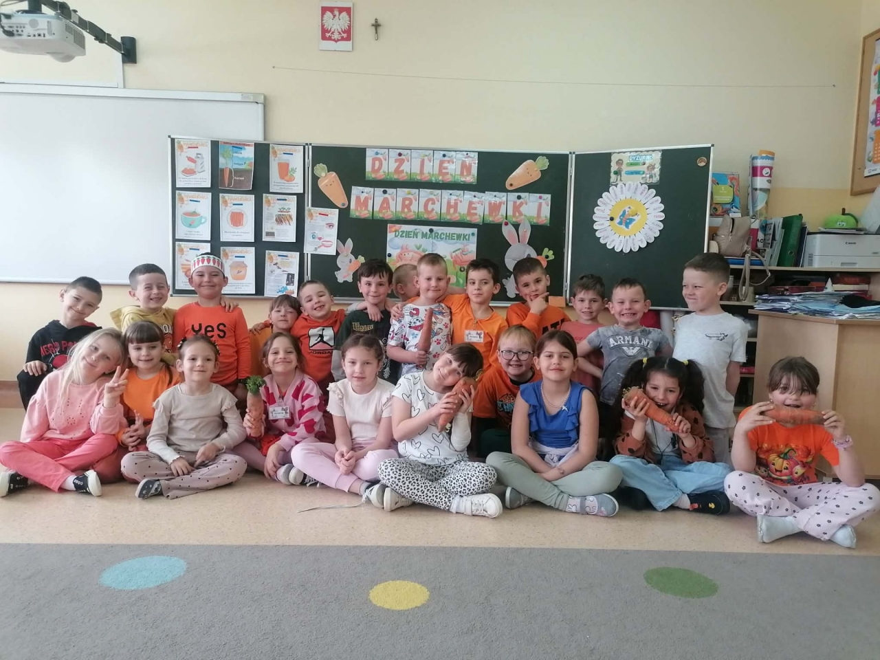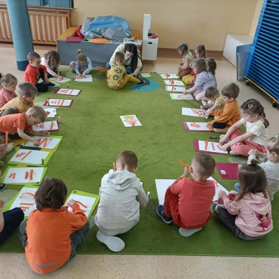 Już od samego rana w przedszkolu królował kolor pomarańczowy! Dzieci przyszły ubrane w marchewkowe stroje, opaski i dodatki, co wprowadziło wszystkich w radosny nastrój.