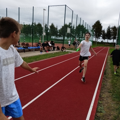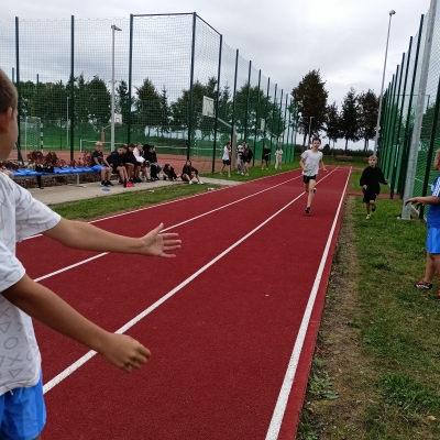 Kilka dni później, w Oleśnicy, naszą szkołę reprezentowali chłopcy z klas IV–VI, biorąc udział w zawodach powiatowych. Zmierzyli się tam z najlepszymi drużynami z całego powiatu – zwycięzcami gminnych etapów rywalizacji. Pomimo ogromnego wyzwania, nasi uczniowie zaprezentowali się z bardzo dobrej strony, pokazując sportowego ducha walki i swoje najwyższe możliwości.