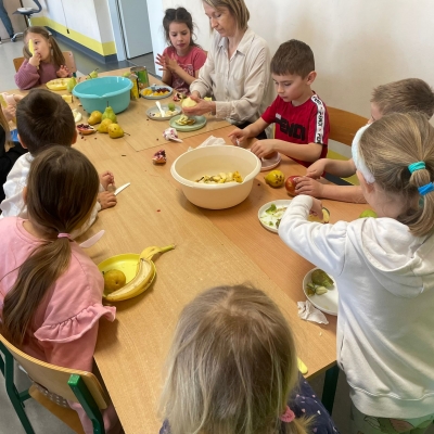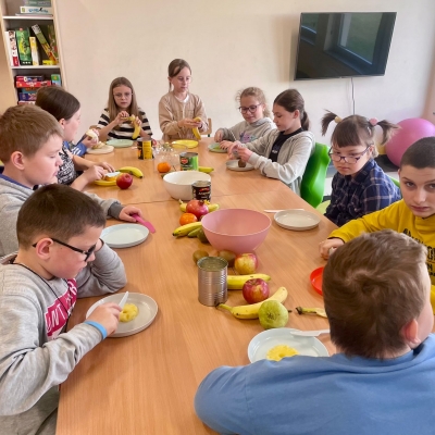 Wspólnie przygotowaliśmy różnorodne warsztaty, które pozwoliły wszystkim aktywnie spędzić czas i odkryć swoje talenty. Uczniowie z entuzjazmem przygotowywali sałatki oraz gofry, a także brali udział w zajęciach artystycznych – malowali twarze, wykonywali brokatowe tatuaże oraz tworzyli prace plastyczne.