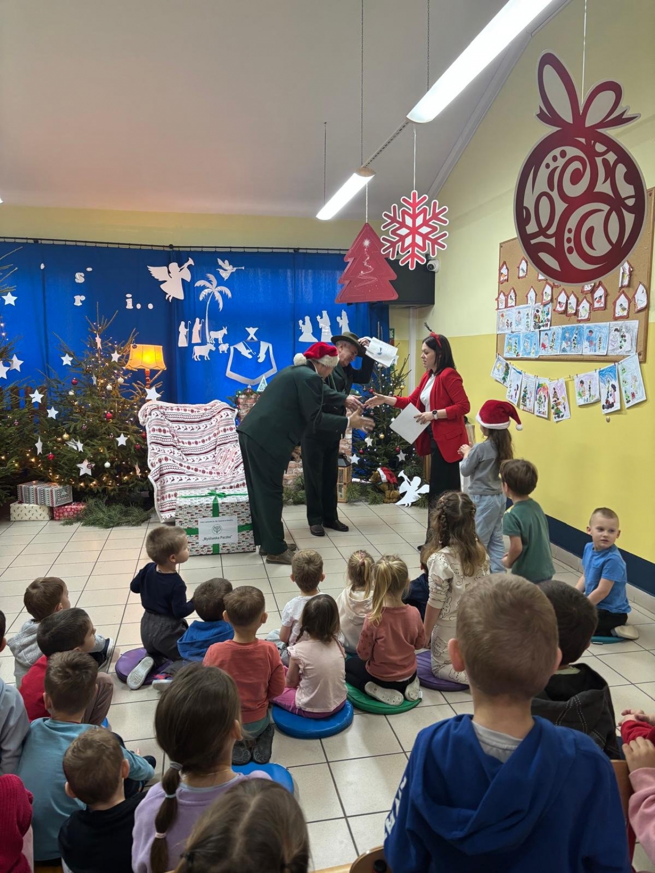 Spotkanie przebiegło w miłej atmosferze oraz scenografii świątecznej przygotowanej przez kadrę przedszkola.