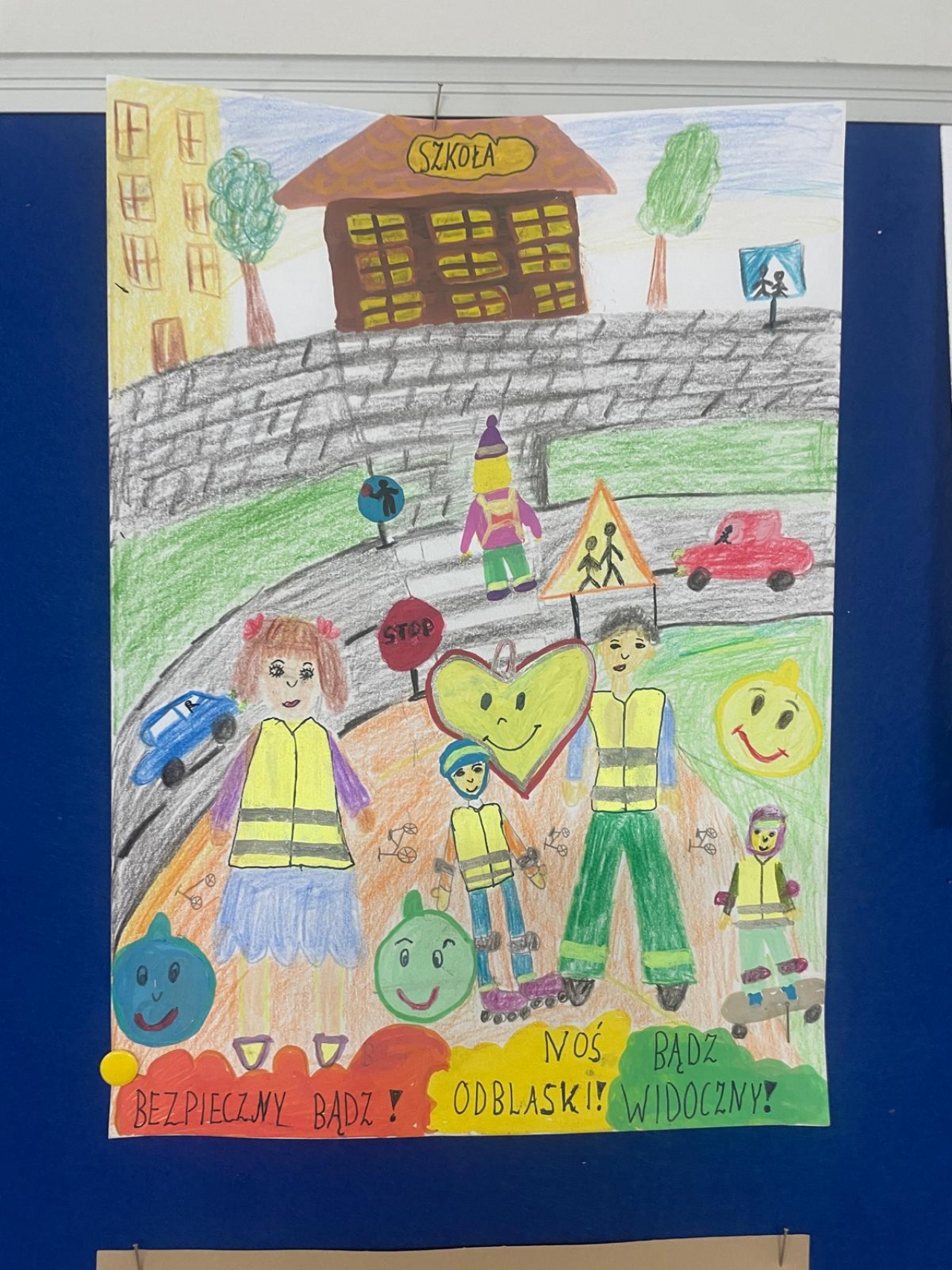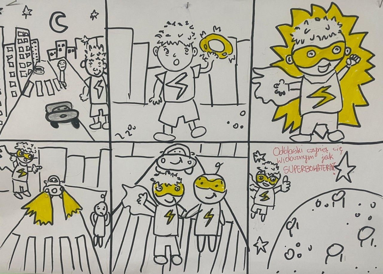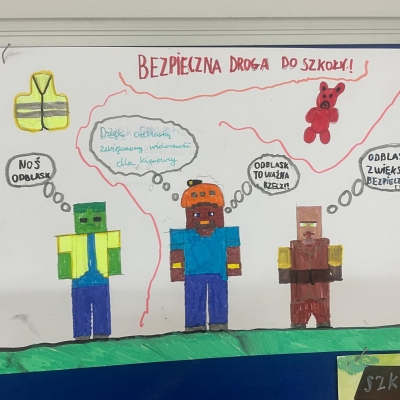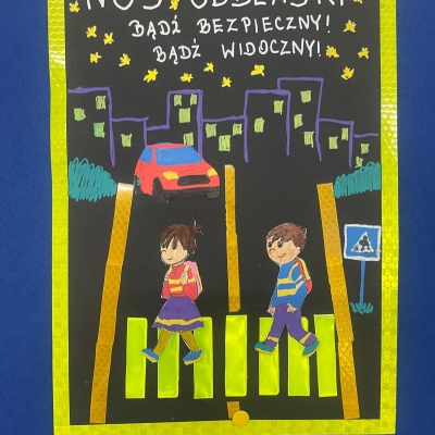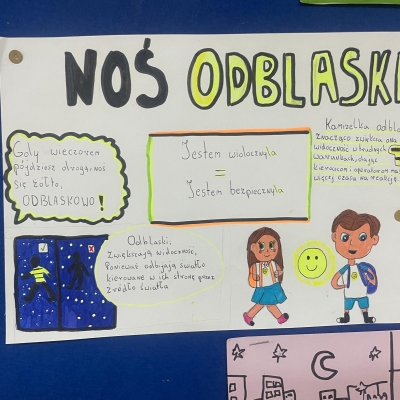 Nasza szkoła bierze udział w ogólnopolskim konkursie „Odblaskowa Szkoła”, którego celem jest promowanie bezpiecznego zachowania na drodze oraz noszenia elementów odblaskowych. Pierwszym etapem naszego udziału było wykonanie przez uczniów prac plastycznych i komiksów poświęconych tematyce bezpieczeństwa w ruchu drogowym. Uczniowie wykazali się ogromną kreatywnością i zaangażowaniem – ich dzieła przypominają, jak ważne jest bycie widocznym na drodze. Wszystkie prace można podziwiać w naszej Szkolnej Galerii Sztuki, gdzie tworzą barwną i pouczającą wystawę promującą bezpieczeństwo.