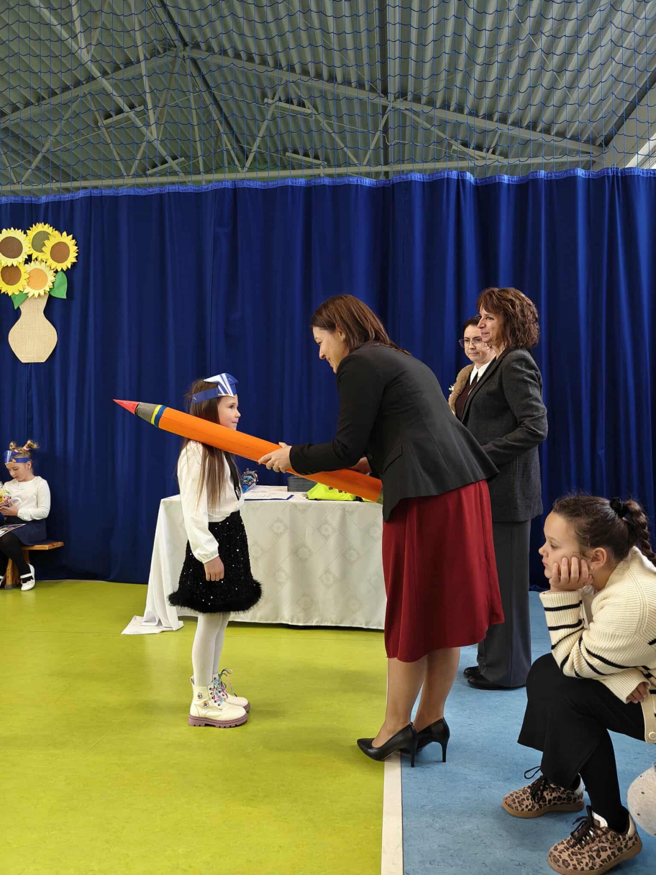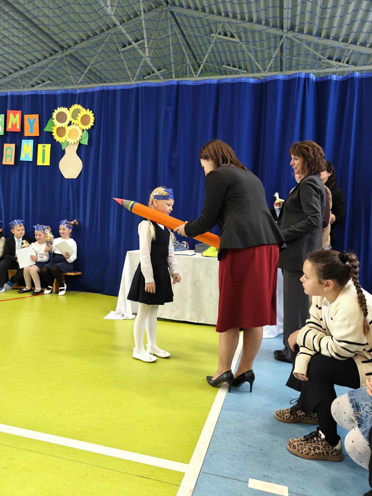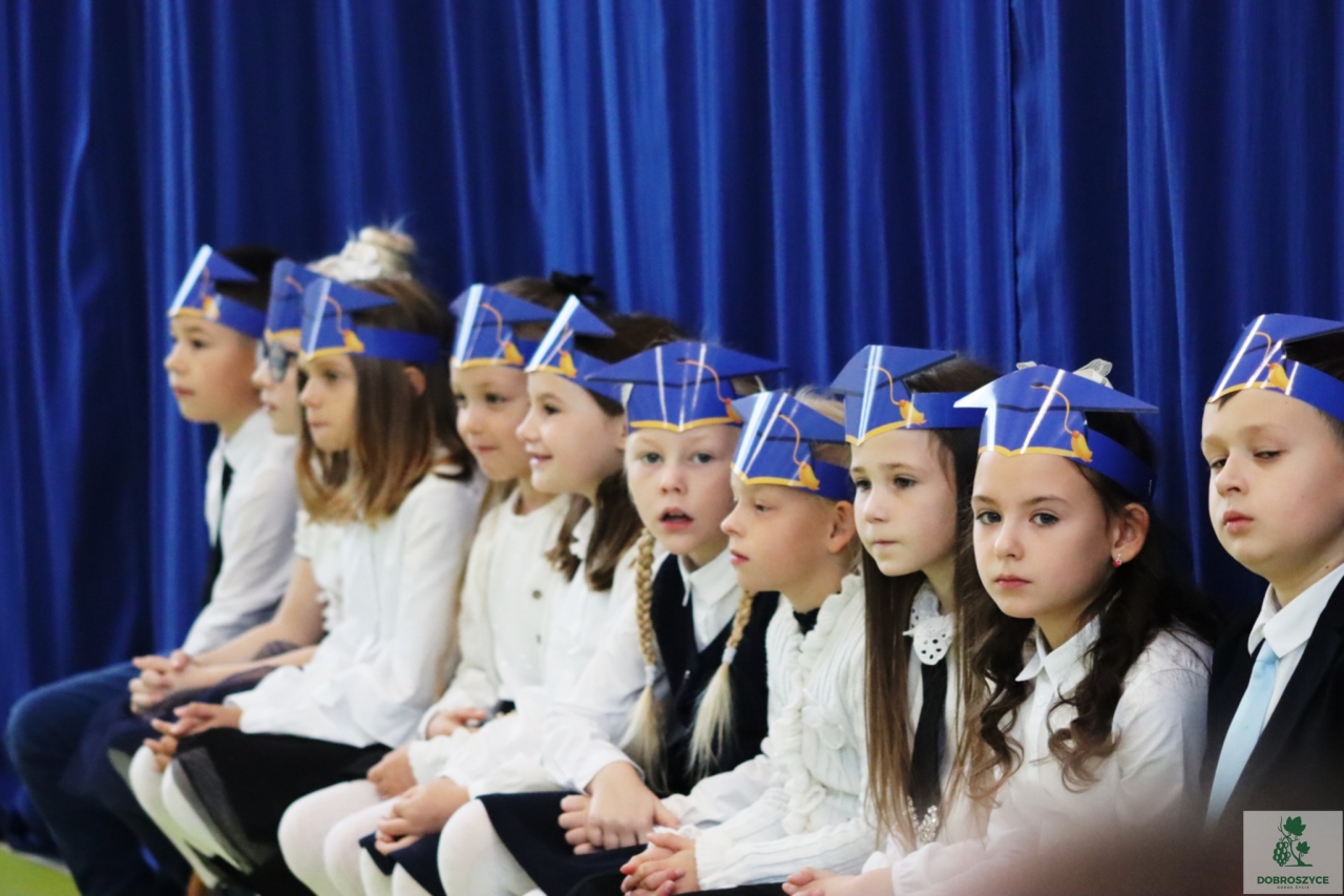 Nie zabrakło także części artystycznej – piosenek, wierszy i radosnych występów przygotowanych specjalnie na tę okazję. Serdeczne podziękowania kierujemy do wychowawczyni pani Małgorzaty Kubicz oraz pani Emilii Biegańskiej-Kozołub za przygotowanie uczniów i organizację tej pięknej uroczystości. To był dzień pełen emocji, uśmiechów i wzruszeń – dzień, który na długo pozostanie w pamięci naszych najmłodszych uczniów.