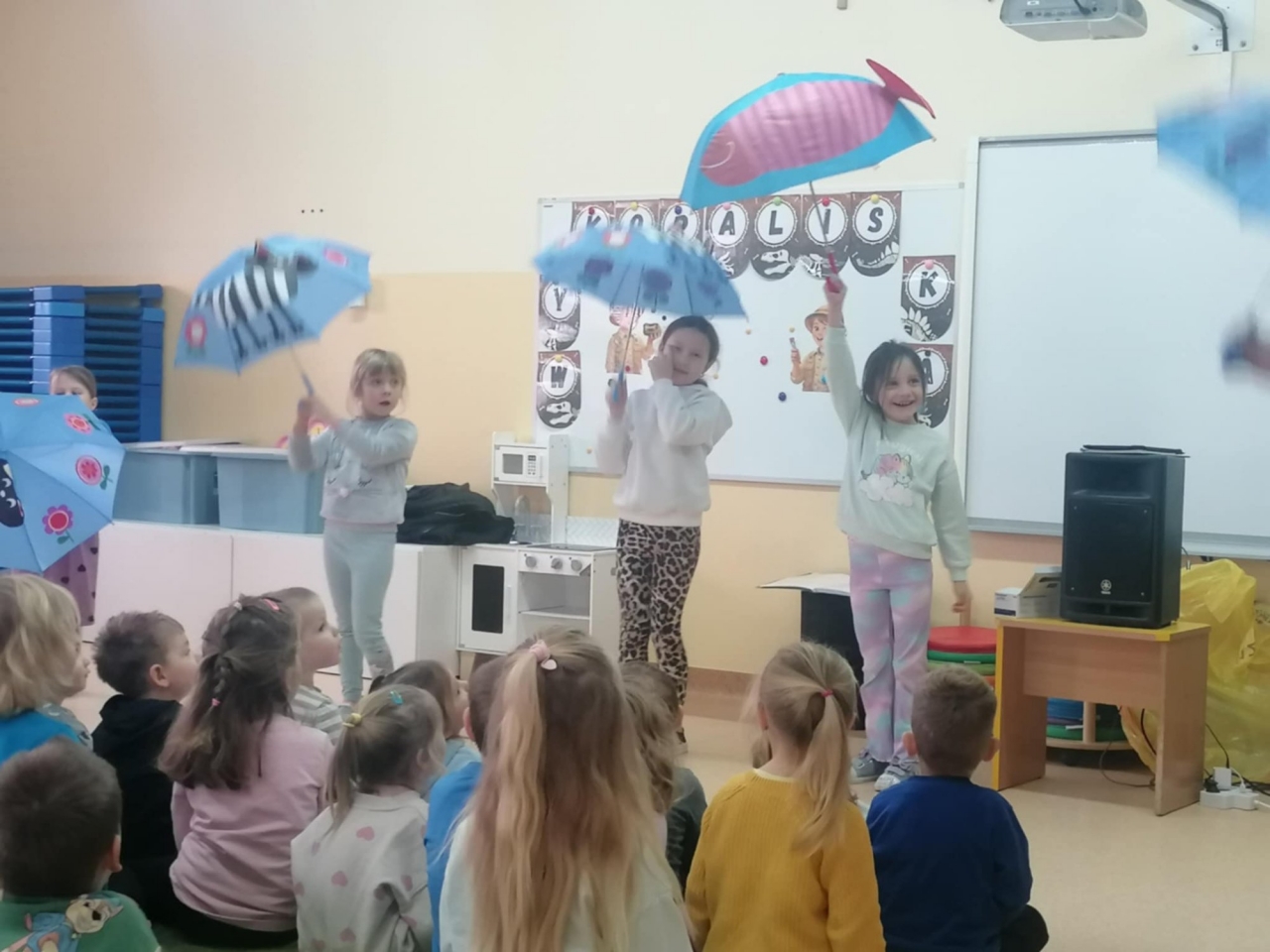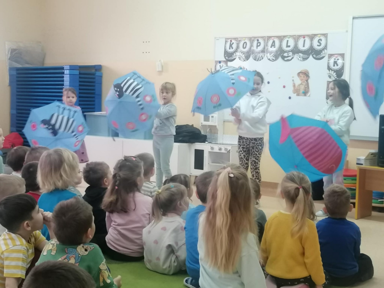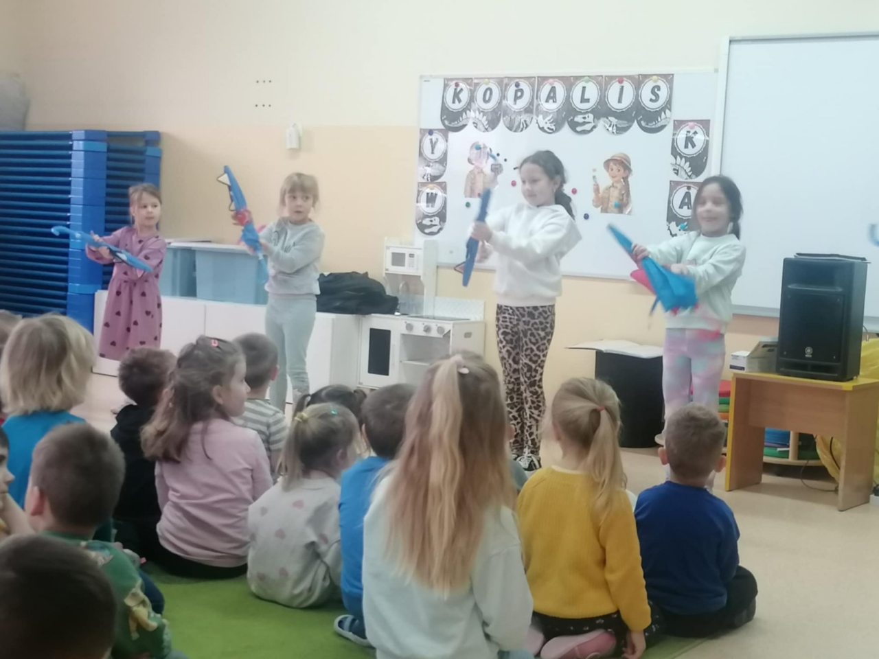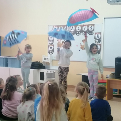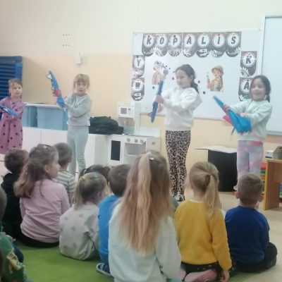 Już od pierwszych dźwięków dzieci zostały zaproszone do wspólnej zabawy rytmicznej. Przy akompaniamencie wesołych melodii przedszkolaki ćwiczyły koordynację ruchową, reagowanie na zmianę tempa oraz wyrażanie emocji poprzez taniec. Nie zabrakło podskoków, obrotów, ćwiczeń rozciągających oraz zabaw naśladowczych.