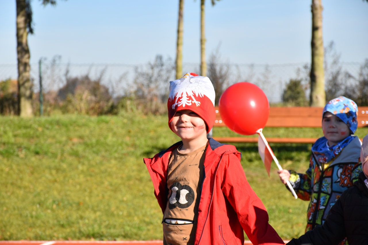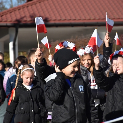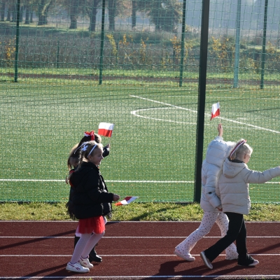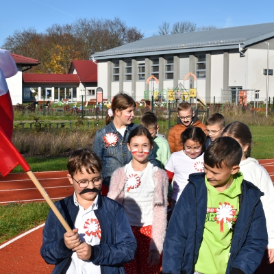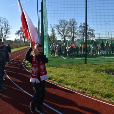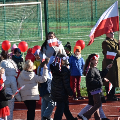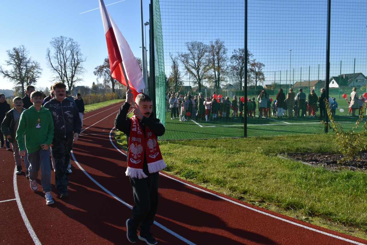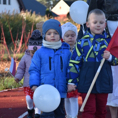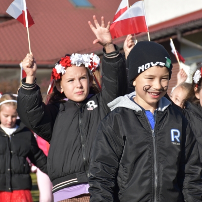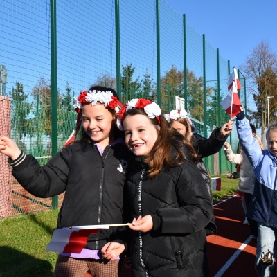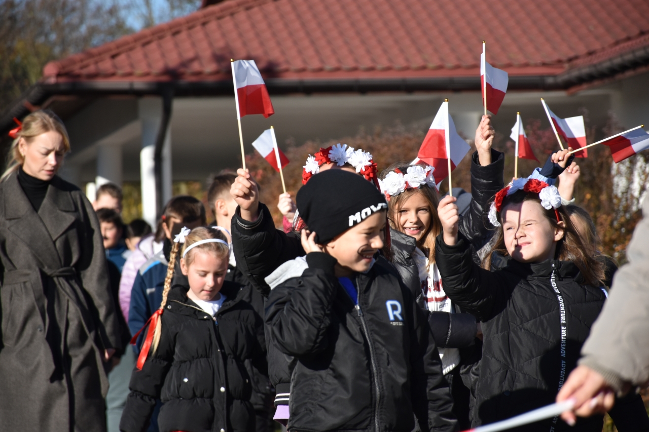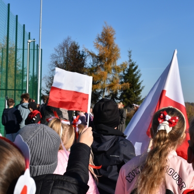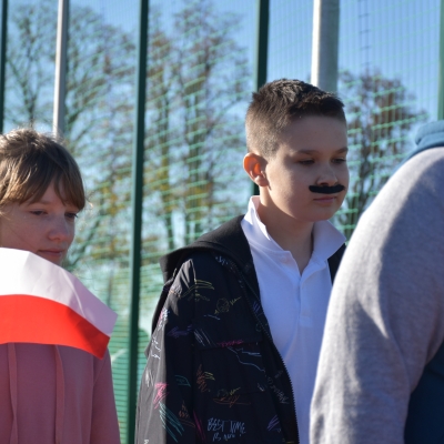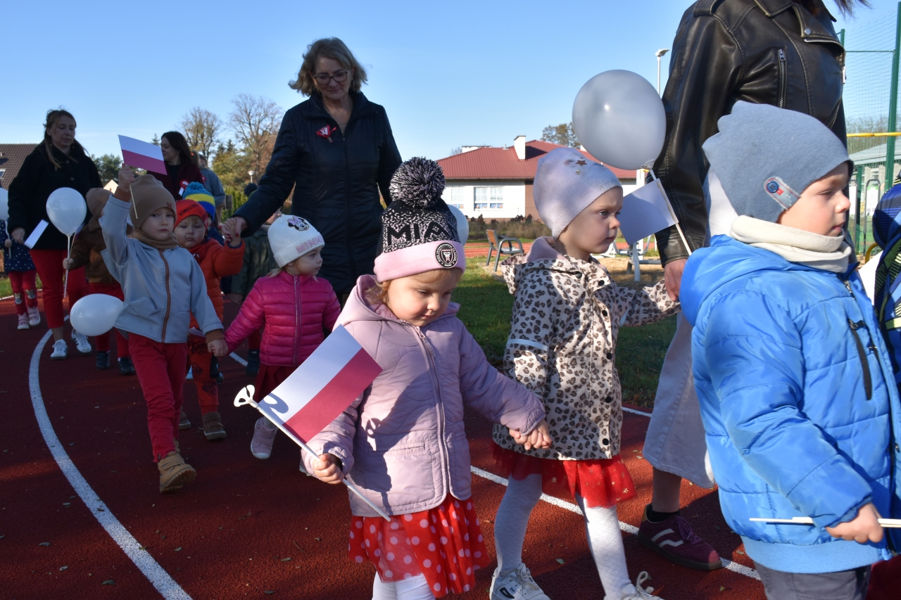 Symbolicznym rozpoczęciem obchodów była Sztafeta Niepodległości – uroczysty marsz z flagą narodową, prowadzony przez chorążego Krzysztofa Sachanka. Flaga wędrowała z rąk do rąk, począwszy od najmłodszej grupy przedszkolnej, aż po uczniów klasy ósmej.