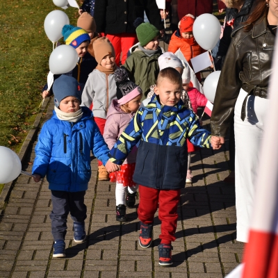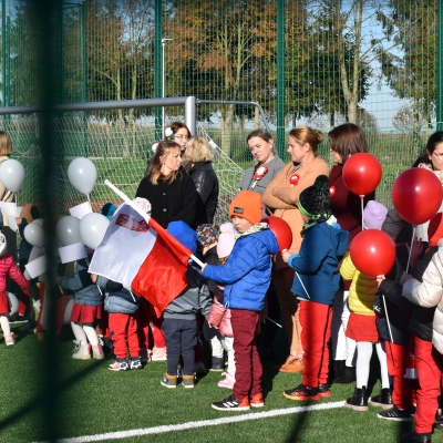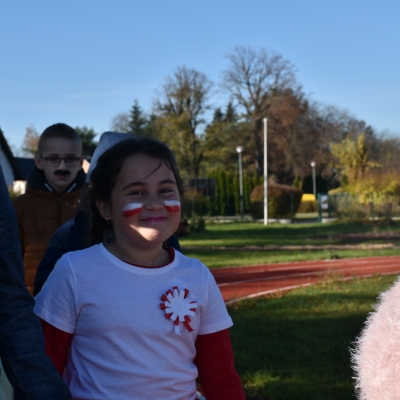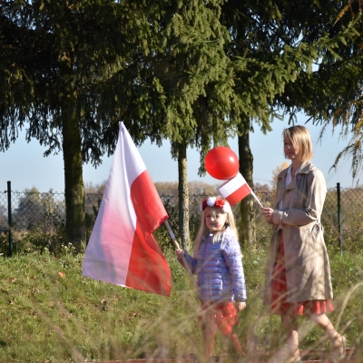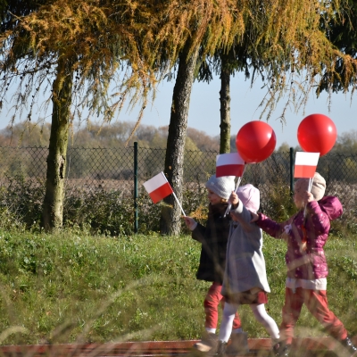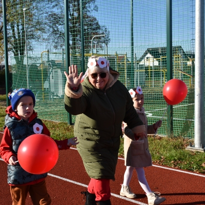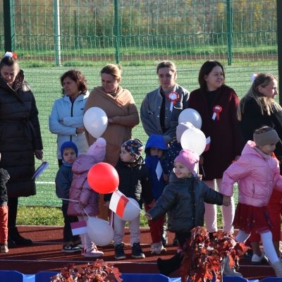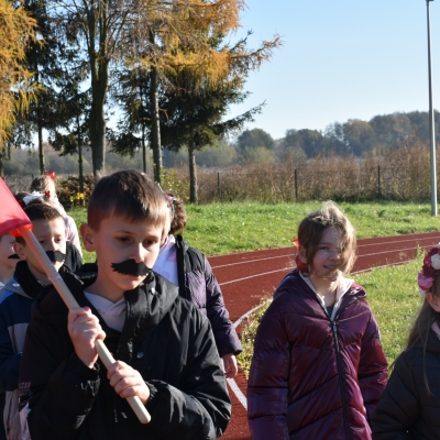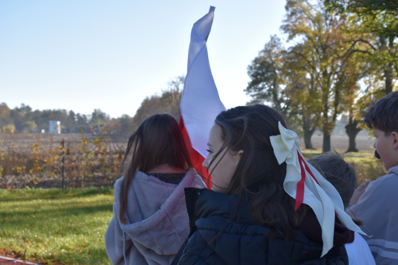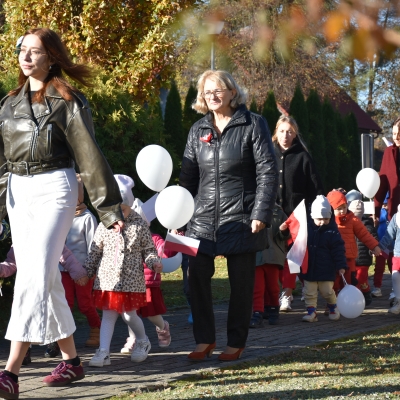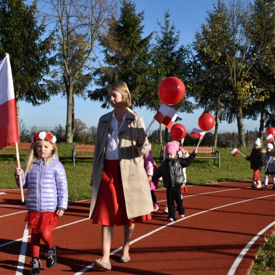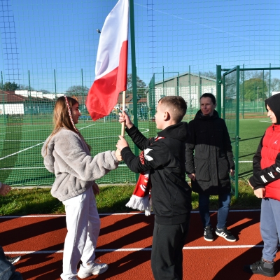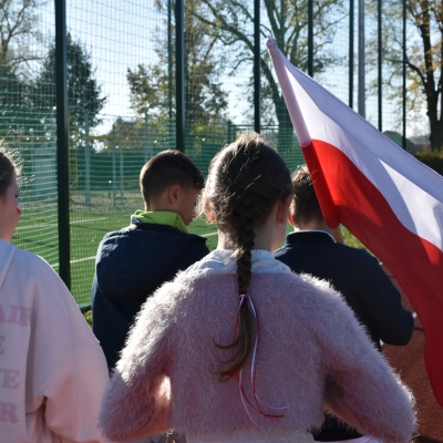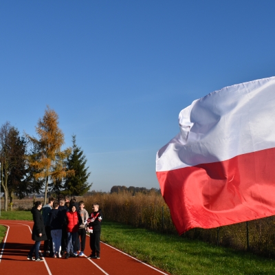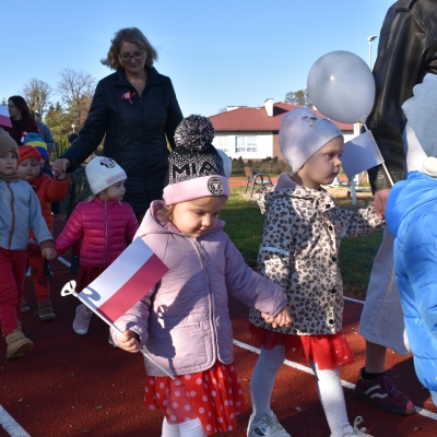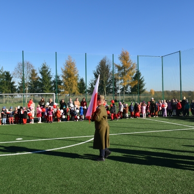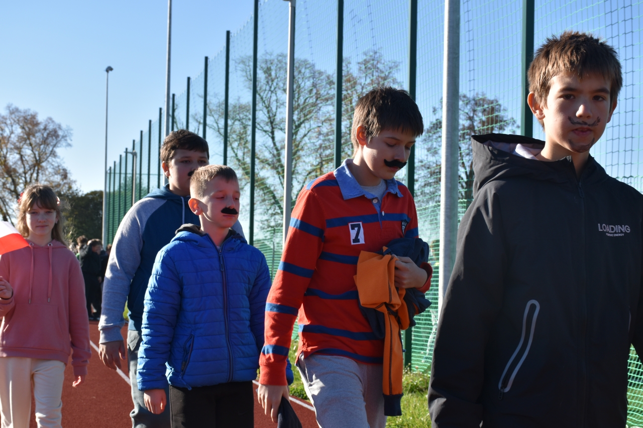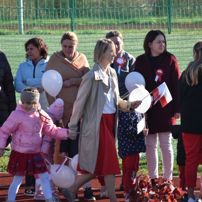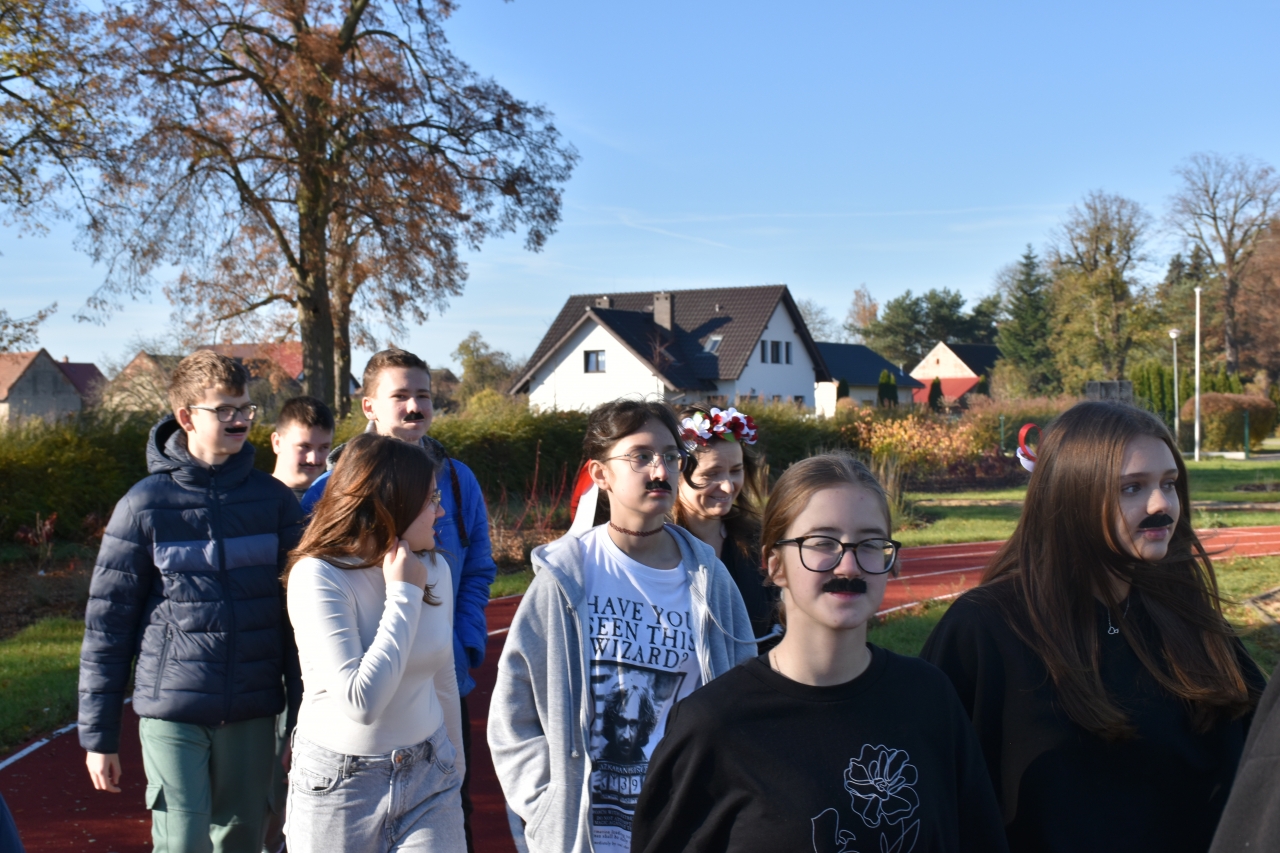 Symbolicznym rozpoczęciem obchodów była Sztafeta Niepodległości – uroczysty marsz z flagą narodową, prowadzony przez chorążego Krzysztofa Sachanka. Flaga wędrowała z rąk do rąk, począwszy od najmłodszej grupy przedszkolnej, aż po uczniów klasy ósmej.