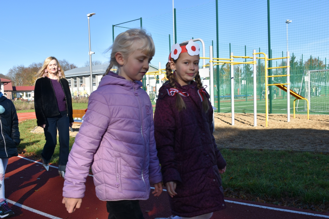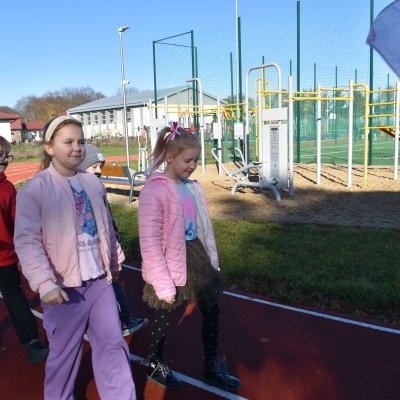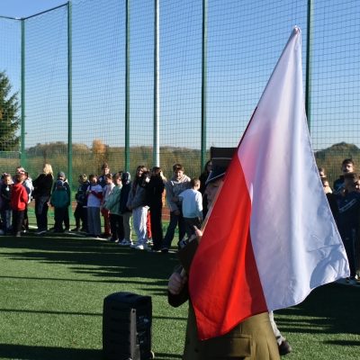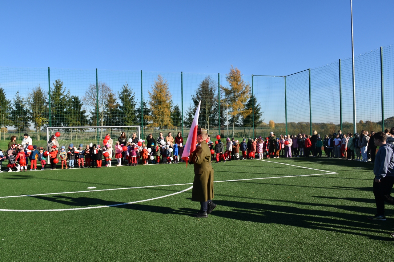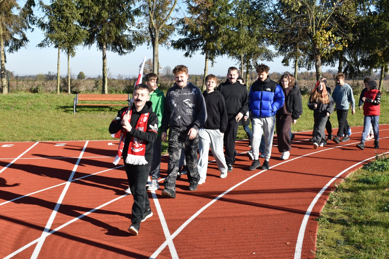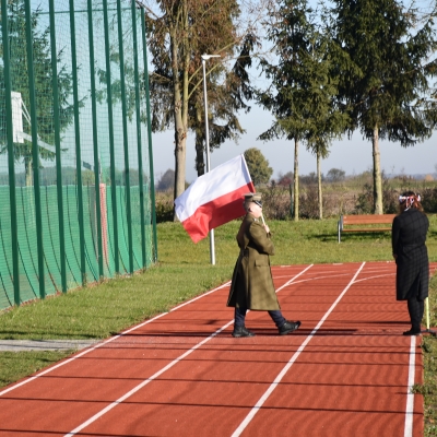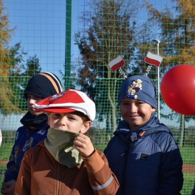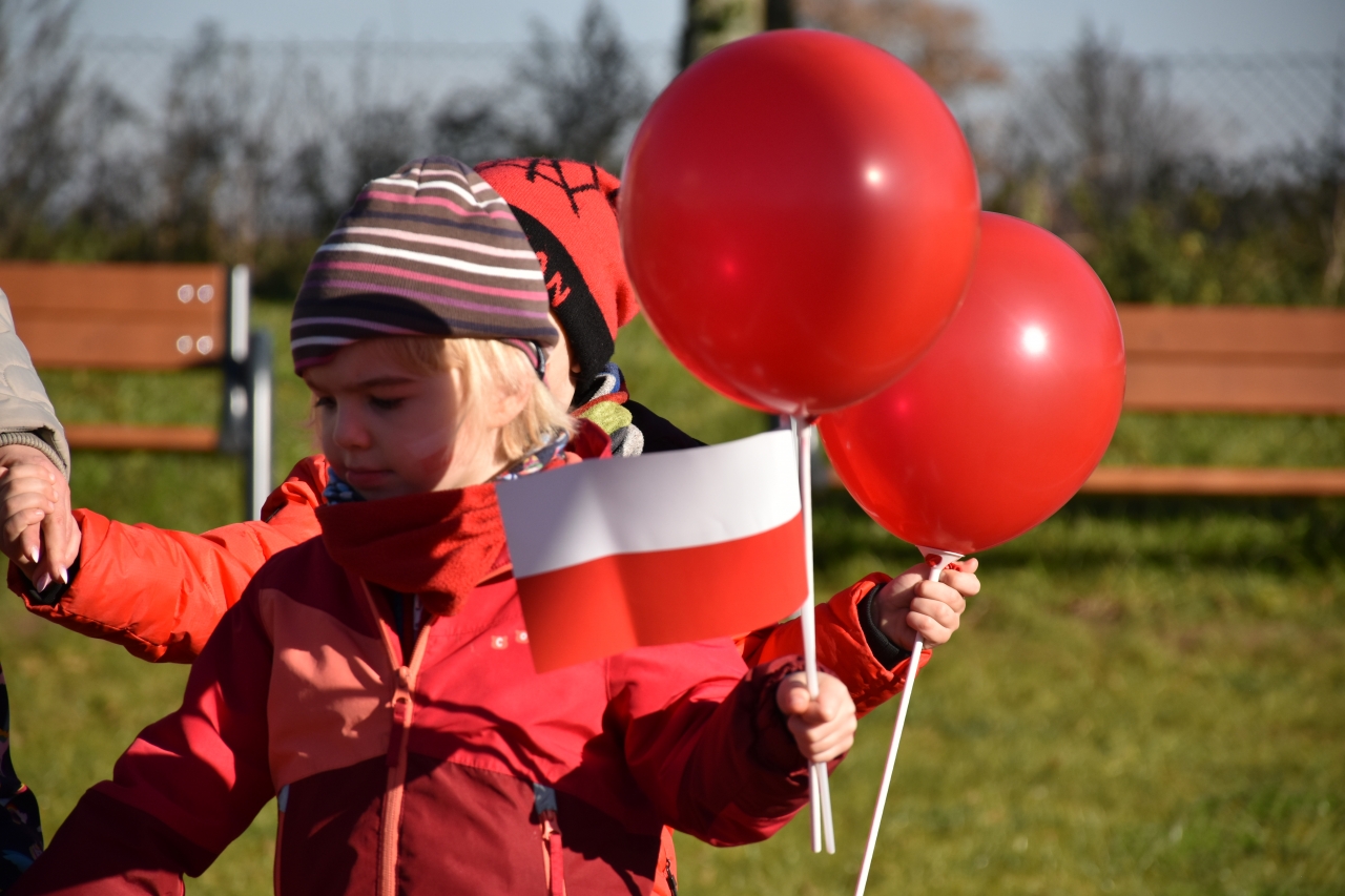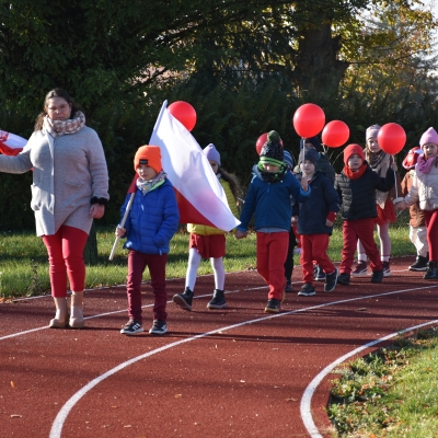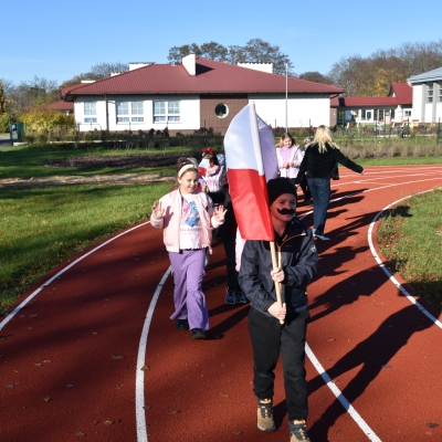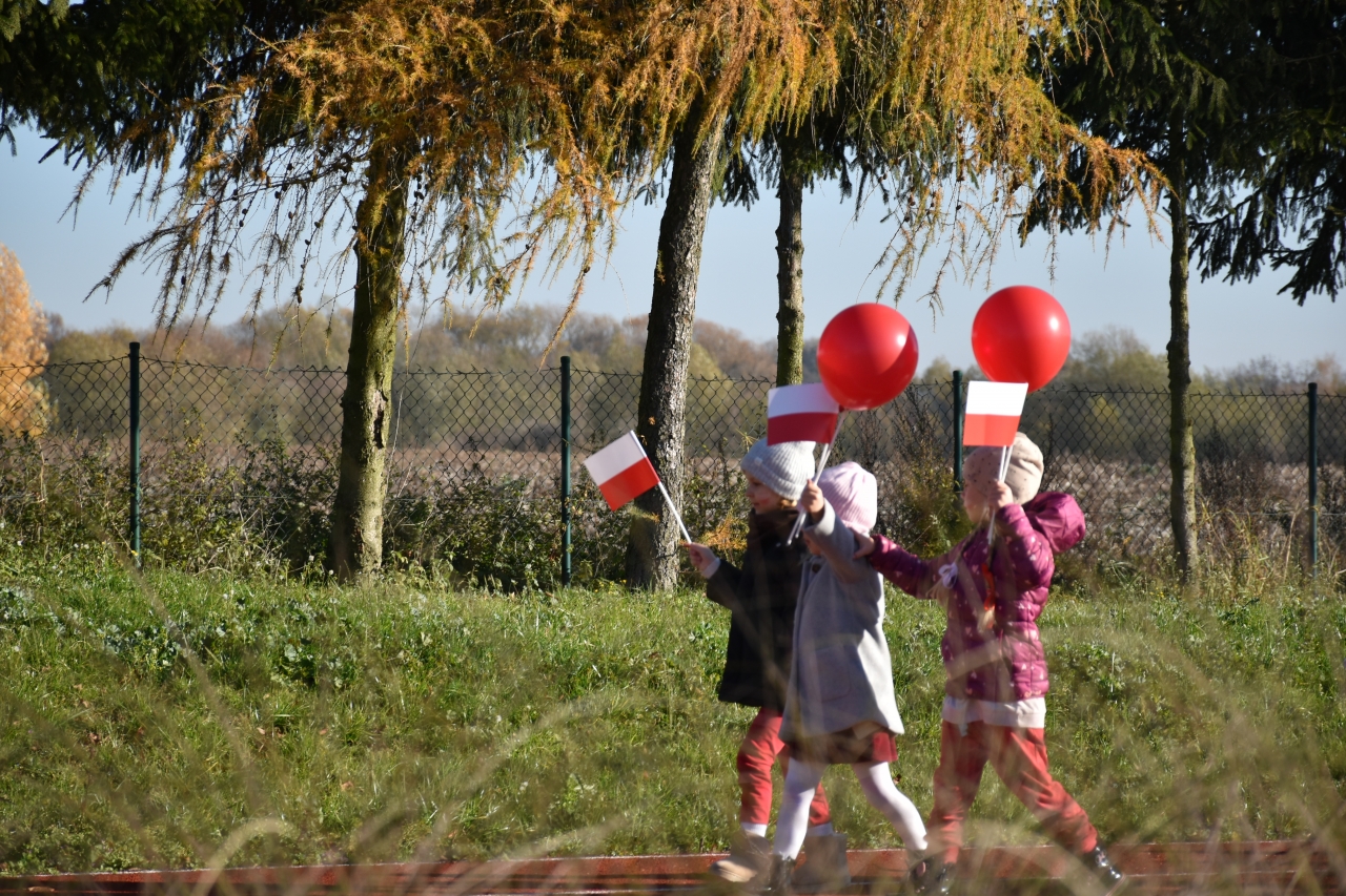 Symbolicznym rozpoczęciem obchodów była Sztafeta Niepodległości – uroczysty marsz z flagą narodową, prowadzony przez chorążego Krzysztofa Sachanka. Flaga wędrowała z rąk do rąk, począwszy od najmłodszej grupy przedszkolnej, aż po uczniów klasy ósmej.