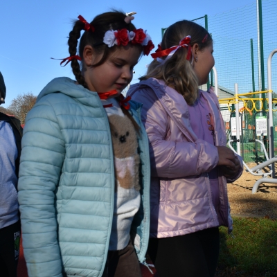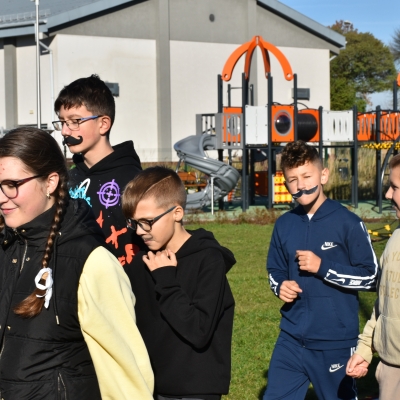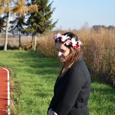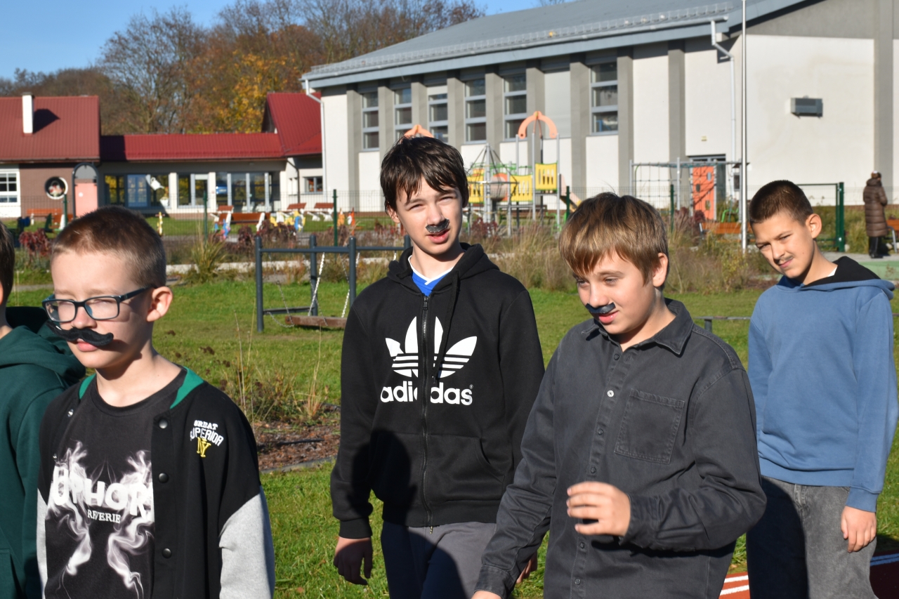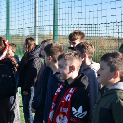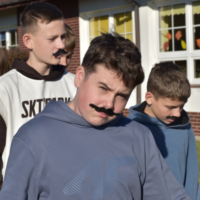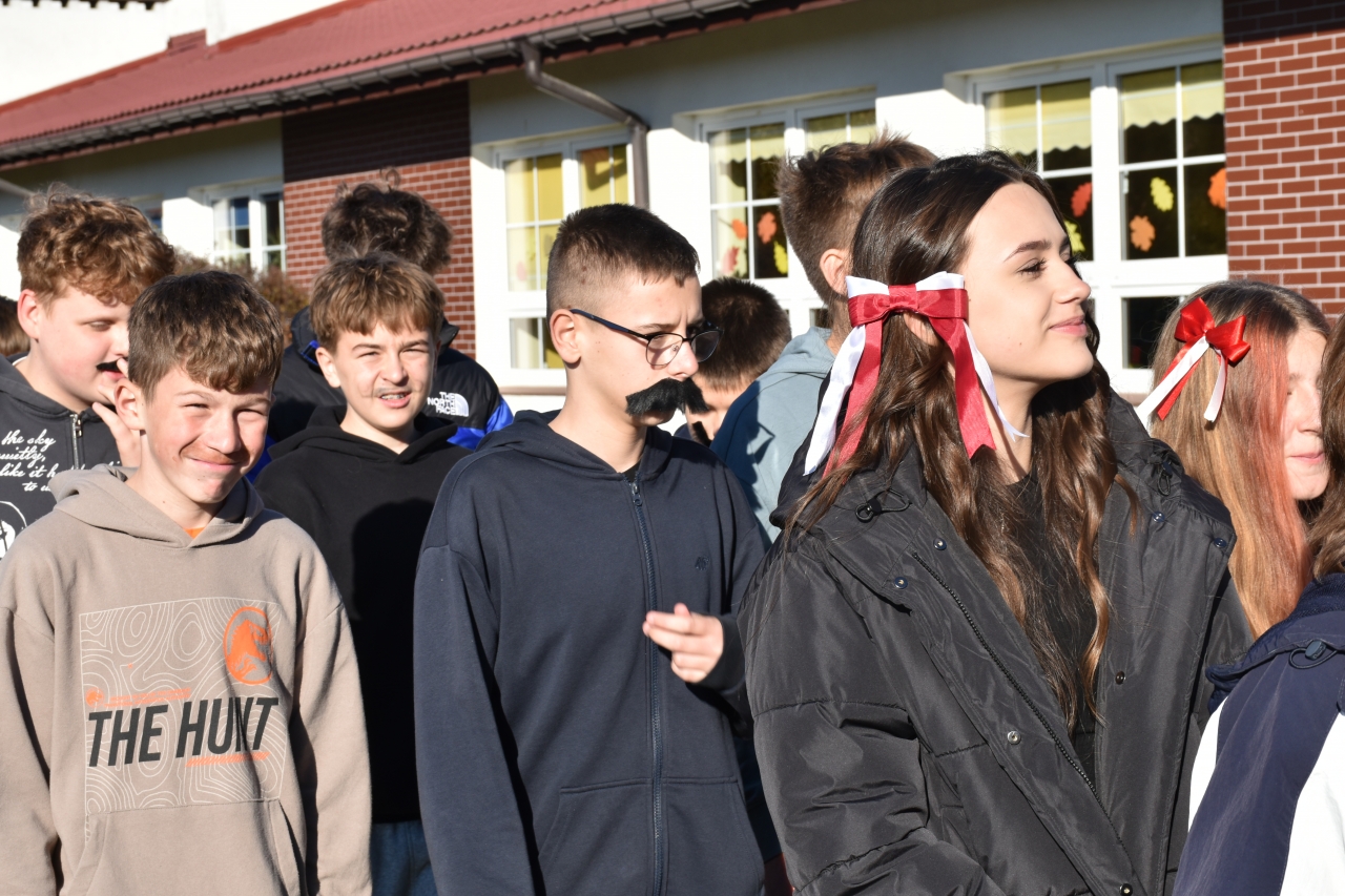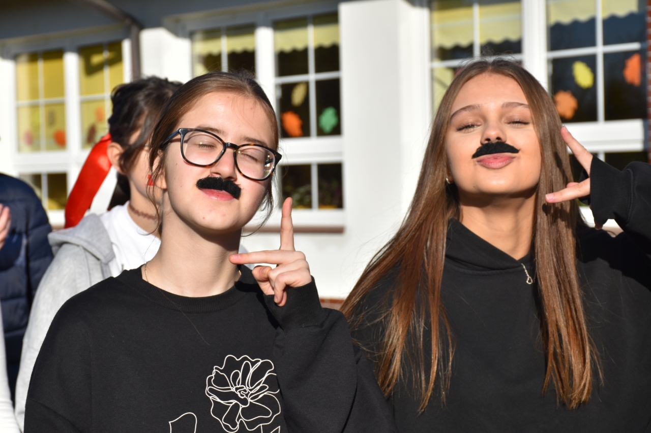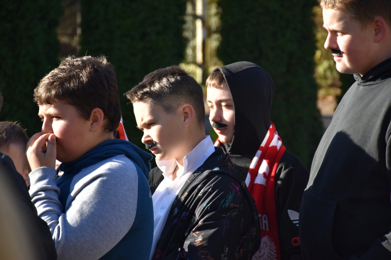 Obchody Narodowego Święta Niepodległości w naszej szkole rozpoczęliśmy już w czwartek. Od wczesnych godzin porannych w korytarzach panowała podniosła, patriotyczna atmosfera. Uczennice ubrane w biało-czerwone ozdoby – opaski i kokardy – oraz uczniowie z wąsami wprowadzili wszystkich w nastrój narodowego świętowania.