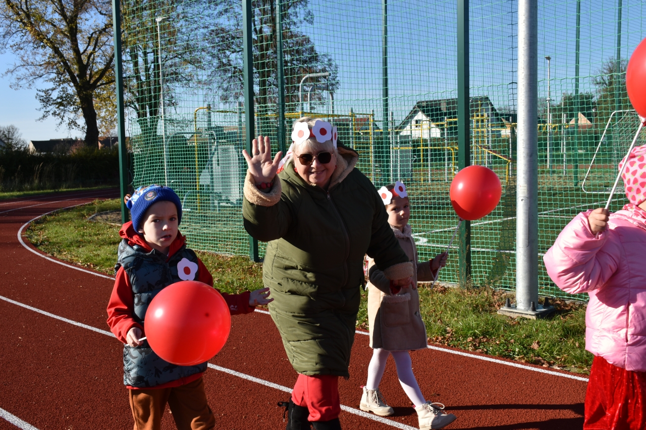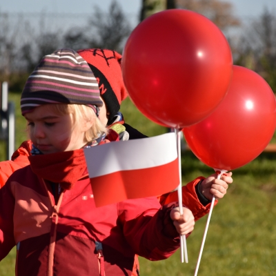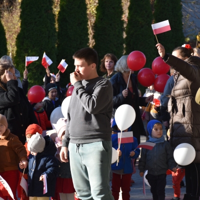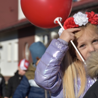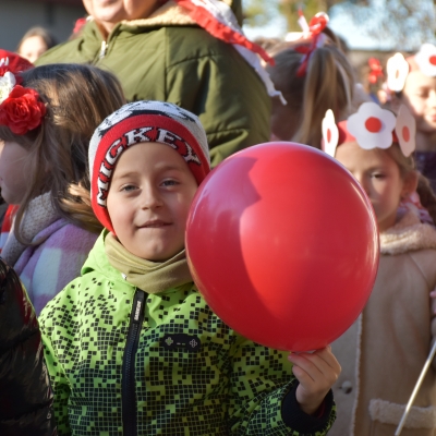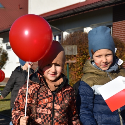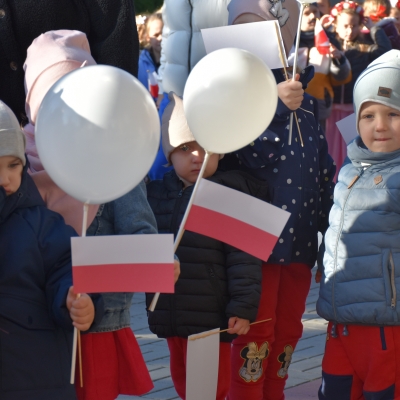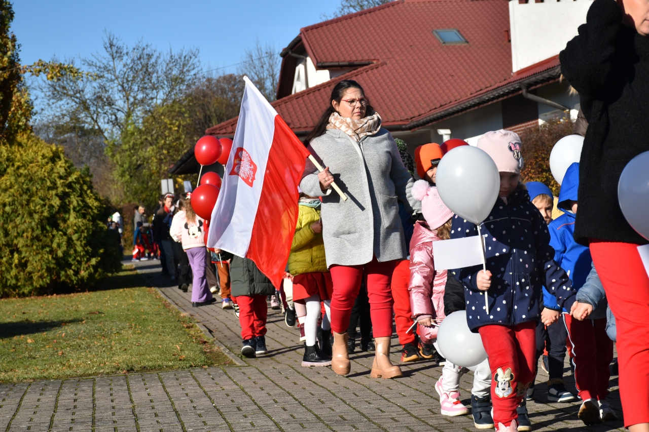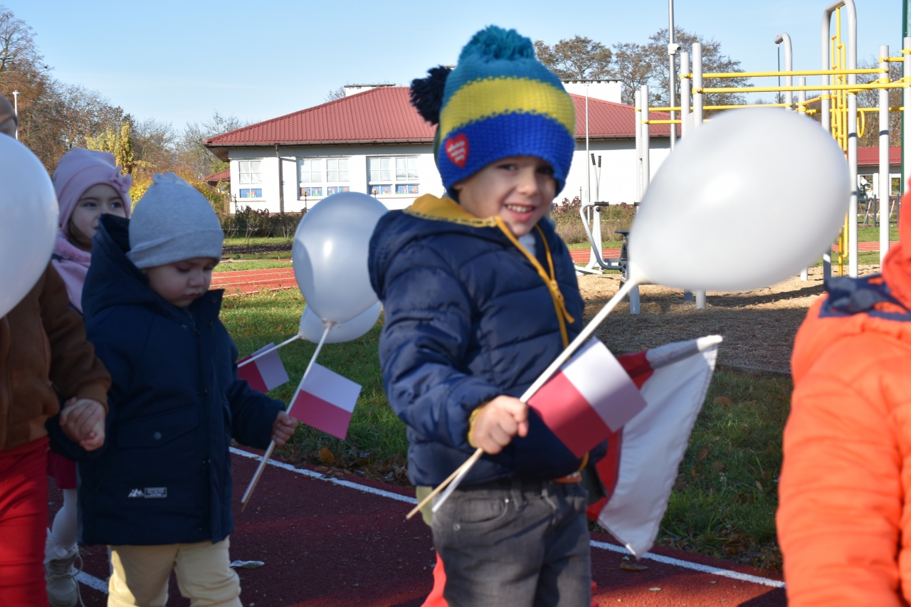 W dłoniach wielu uczniów powiewały biało-czerwone flagi, a balony w barwach narodowych dodawały wydarzeniu radosnego charakteru.