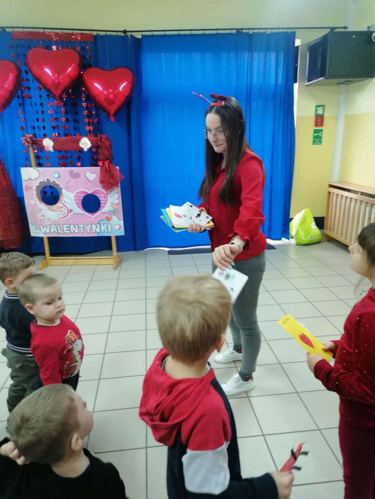 Ogromnym zainteresowaniem cieszyła się także, Poczta Walentynkowa. W holu przedszkola stanęła specjalna skrzynka, do której dzieci mogły wrzucać przygotowane kartki dla swoich kolegów, koleżanek oraz pań.