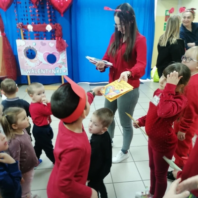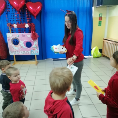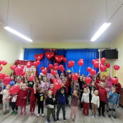 W przedszkolu ten dzień obchodziliśmy 16 lutego, dzieci przyszły ubrane na czerwono i różowo, a sale przedszkolne wypełniły się serduszkami oraz walentynkowymi dekoracjami. Podczas zajęć rozmawialiśmy o tym, jak ważne jest mówienie miłych słów, pomaganie innym i bycie dobrym kolegą czy koleżanką. Nie zabrakło wspólnych zabaw oraz prac plastycznych – dzieci przygotowały piękne kartki walentynkowe i serduszkowe upominki.