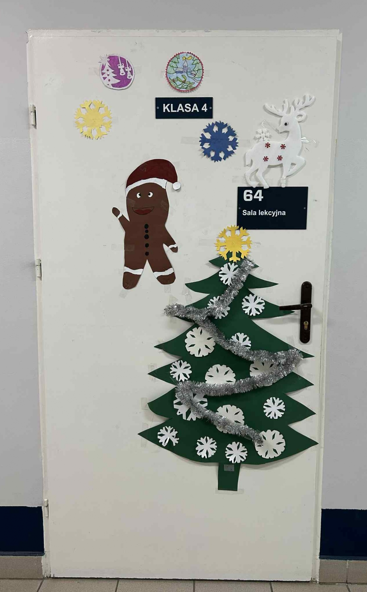 Uczniowie wraz z wychowawcami udekorowali drzwi sal lekcyjnych, nadając im wyjątkowy, świąteczny charakter.