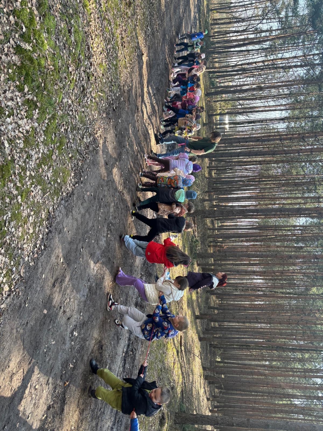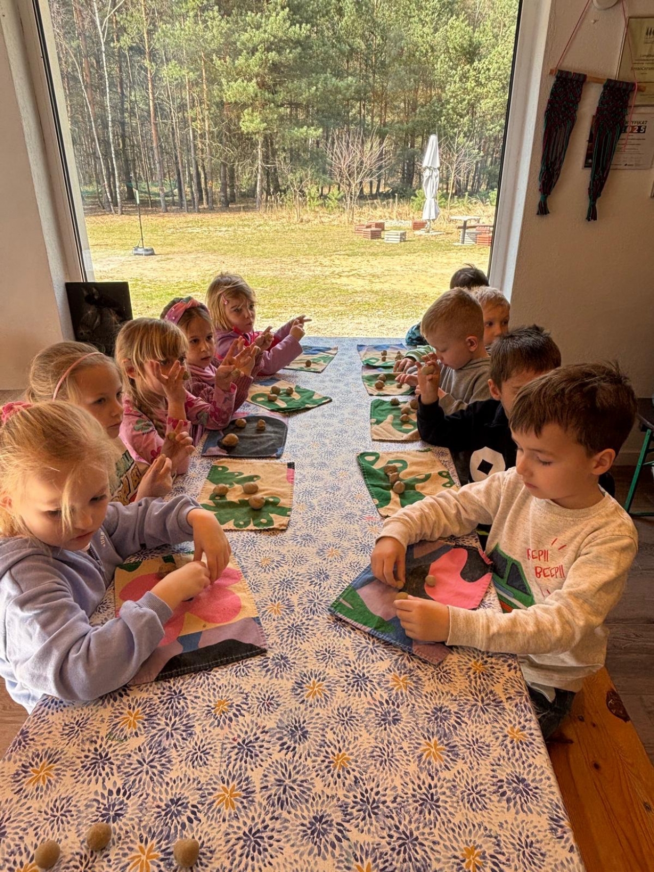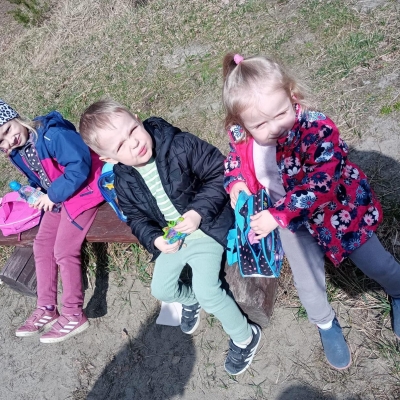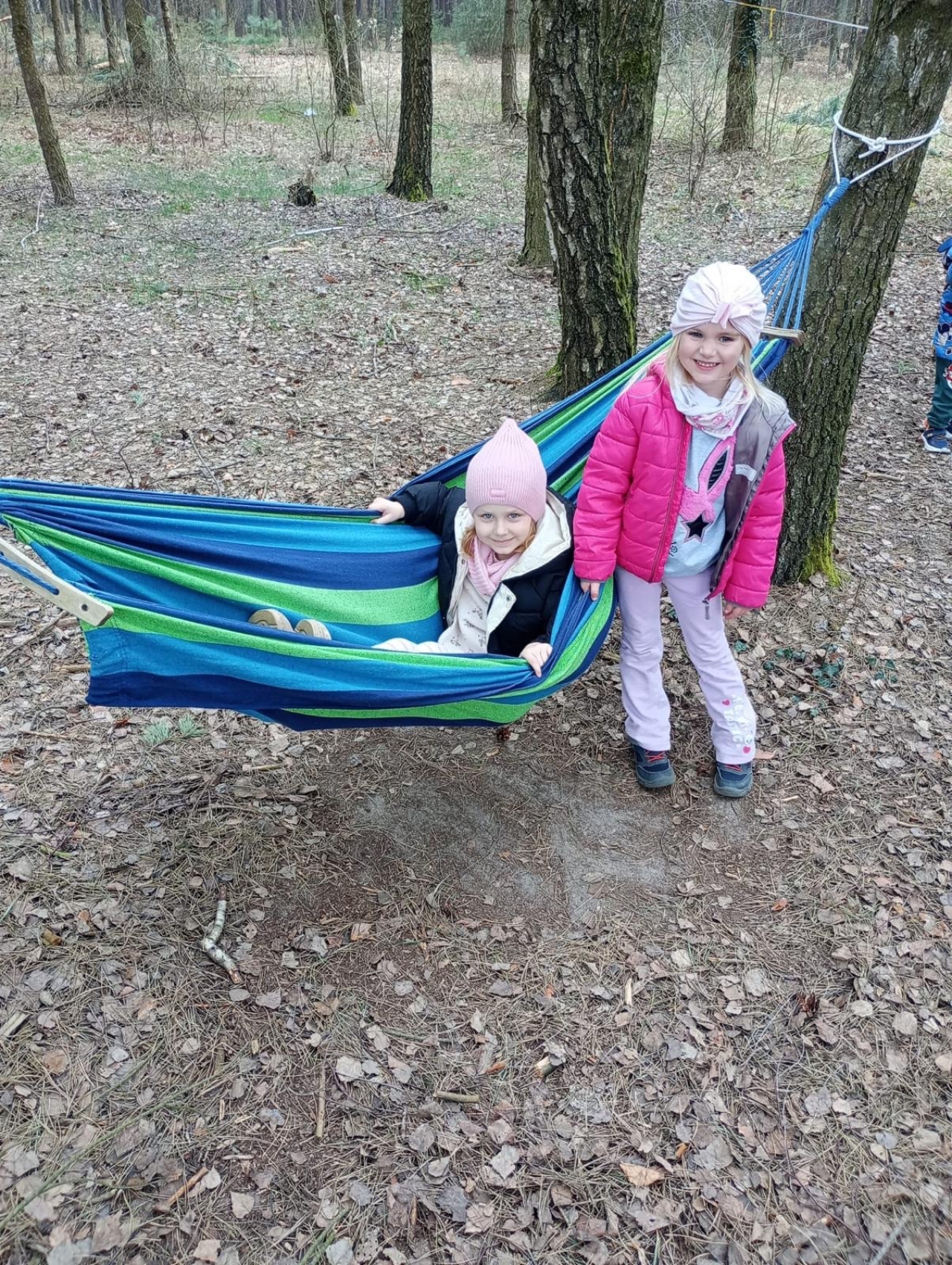 Nie zabrakło także czasu na poszukiwanie oznak wiosny w lesie, obserwację przyrody oraz wspólne rozmowy o zmianach zachodzących w otoczeniu. Dużą atrakcją było karmienie króliczków marchewką i kapustą, a także wspólne ognisko. Dzieci miały również czas na swobodną zabawę na terenie obiektu.