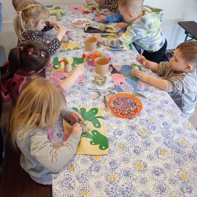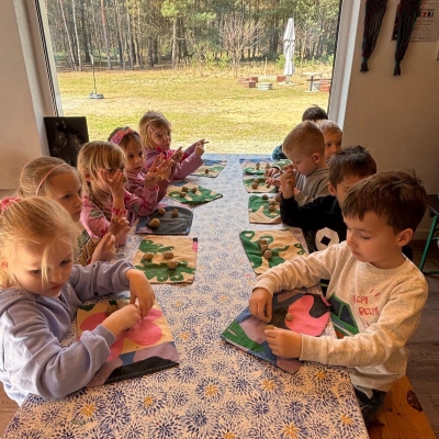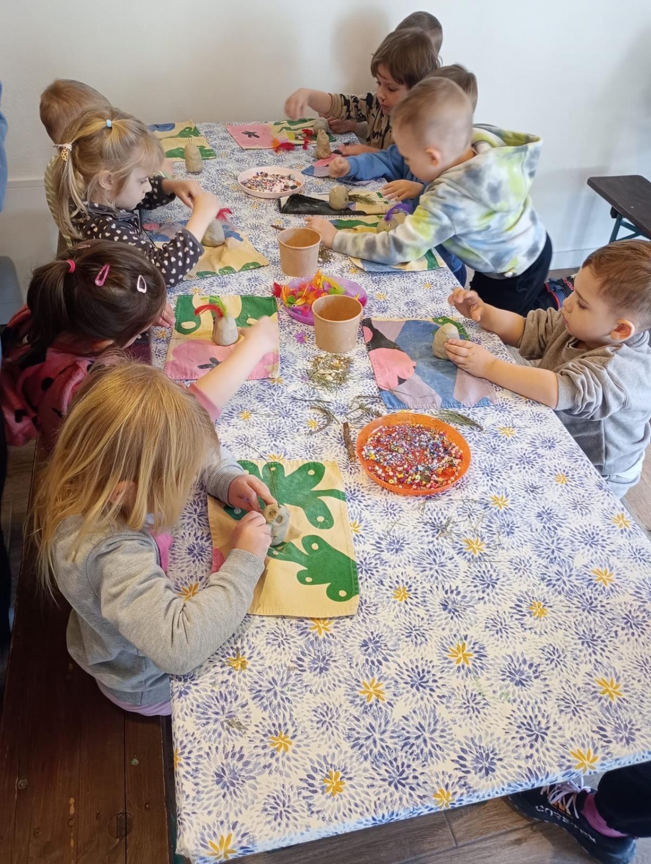 Następnie dzieci uczestniczyły w warsztatach z sensoplastyki, podczas których samodzielnie wykonały wielkanocne jajka z gliny, rozwijając swoją kreatywność i zdolności manualne.