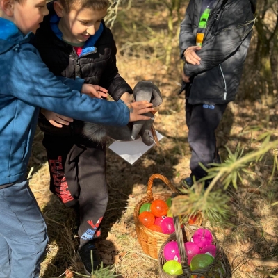 W miniony poniedziałek nasze przedszkolaki wzięły udział w wyjątkowej wycieczce do Domasławic. Po przyjeździe na miejsce dzieci rozpoczęły poszukiwanie zajączków, przy których czekały na nie różnorodne zadania do wykonania. Każda kolejna stacja dostarczała nowych emocji i wyzwań, a przy ostatnim zajączku na przedszkolaki czekała miła niespodzianka –prezent w postaci jajek na wodę.