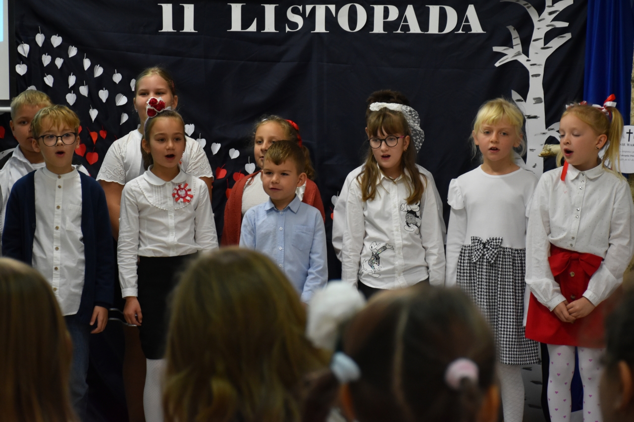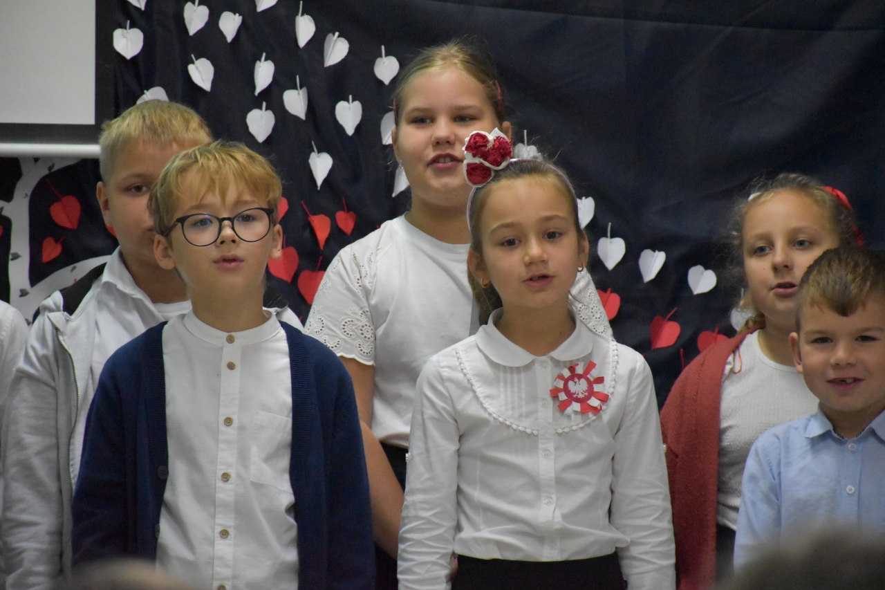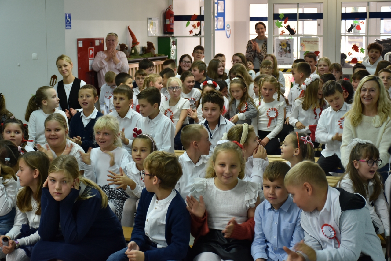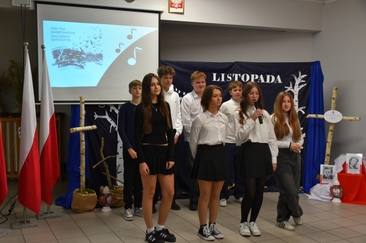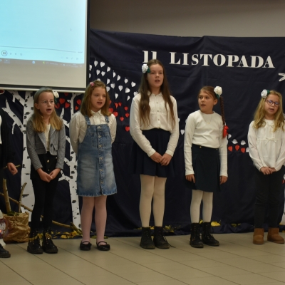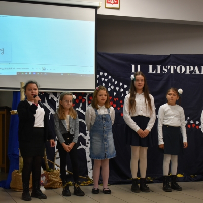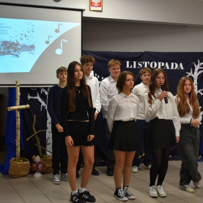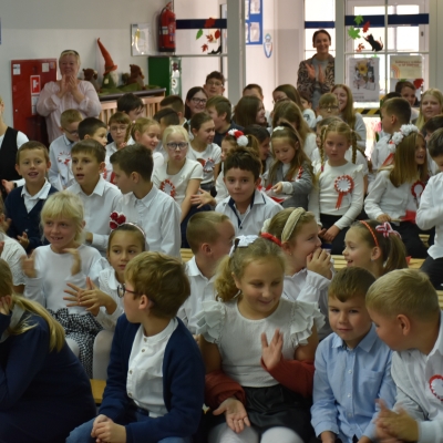 W piątek – 7 listopada, w holu szkoły odbył się uroczysty apel połączony z festiwalem pieśni patriotycznych.Ósmoklasistki prowadzące uroczystość przypomniały zgromadzonym, że niepodległość to dzieło wielu pokoleń Polaków. Dzięki ich wierze, odwadze i bohaterstwu przetrwaliśmy 123 lata zaborów, a w 1918 roku odzyskaliśmy Ojczyznę. Śpiewanie melodii wolności okazało się być doskonałą receptą na dobrą zabawę i historię w radosnym, patriotycznym klimacie.
