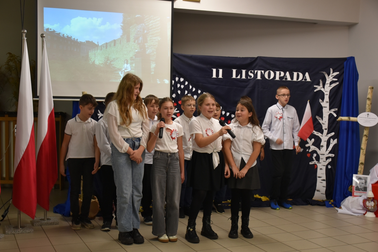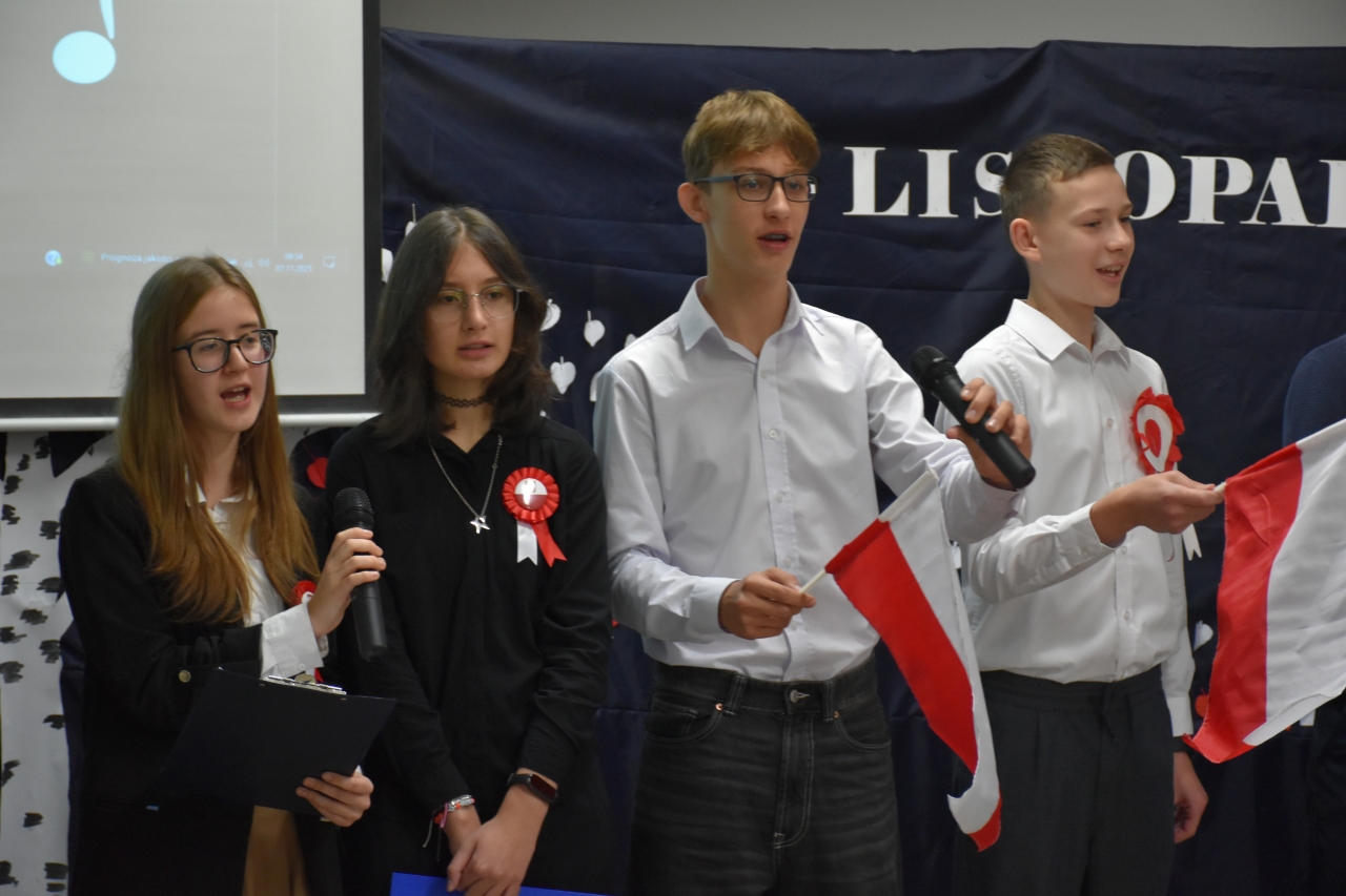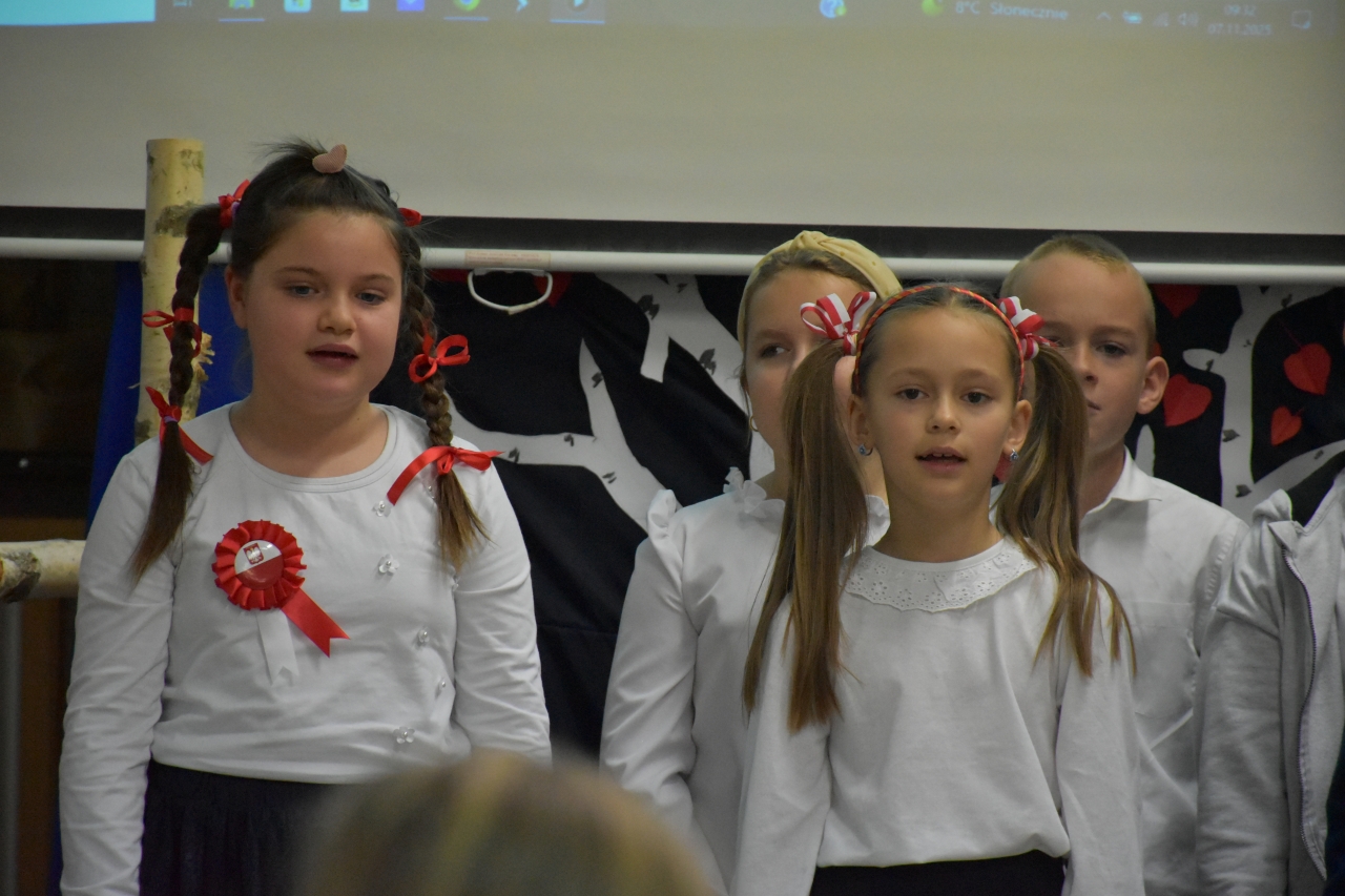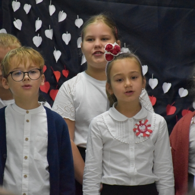 W piątek – 7 listopada, w holu szkoły odbył się uroczysty apel połączony z festiwalem pieśni patriotycznych.Ósmoklasistki prowadzące uroczystość przypomniały zgromadzonym, że niepodległość to dzieło wielu pokoleń Polaków. Dzięki ich wierze, odwadze i bohaterstwu przetrwaliśmy 123 lata zaborów, a w 1918 roku odzyskaliśmy Ojczyznę. Śpiewanie melodii wolności okazało się być doskonałą receptą na dobrą zabawę i historię w radosnym, patriotycznym klimacie.