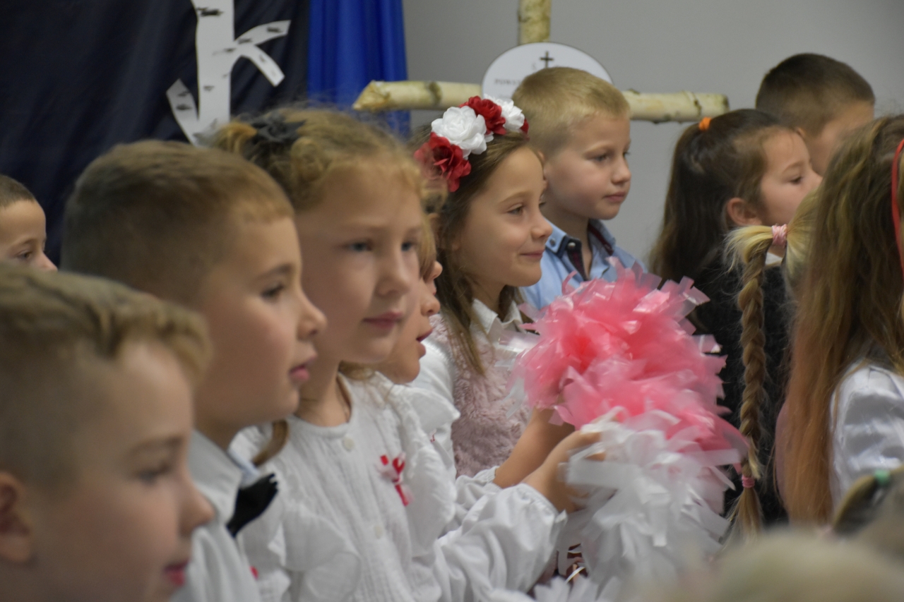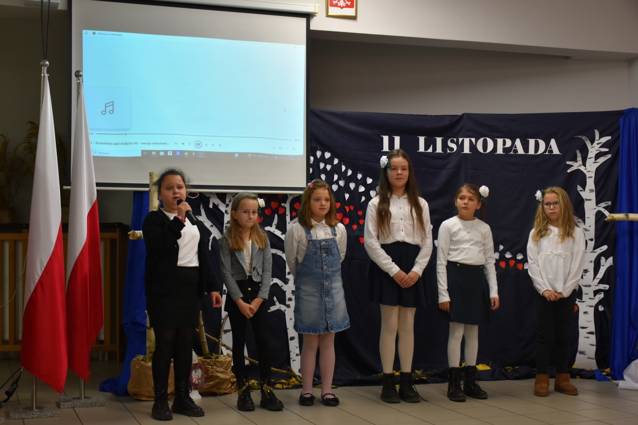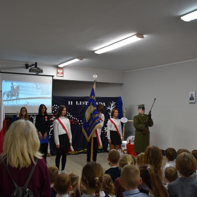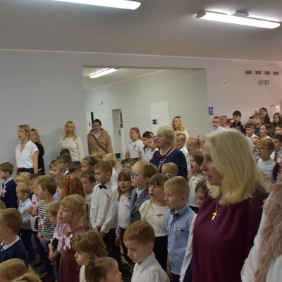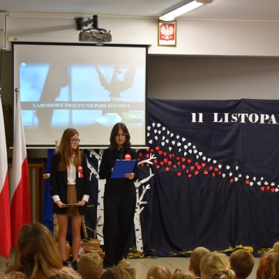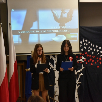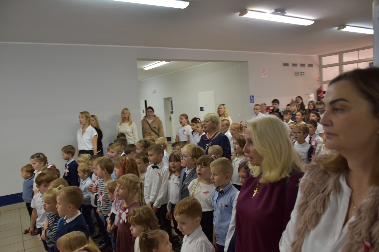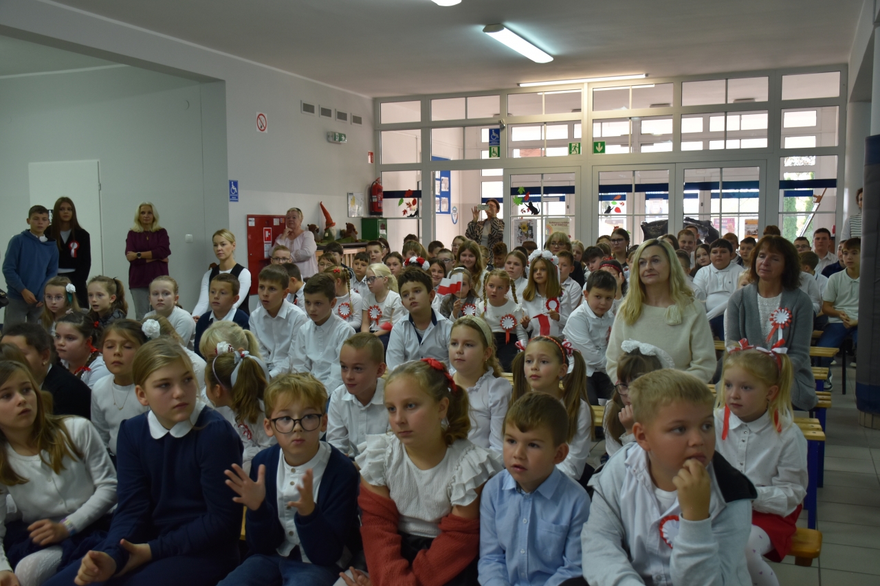 W piątek – 7 listopada, w holu szkoły odbył się uroczysty apel połączony z festiwalem pieśni patriotycznych.Ósmoklasistki prowadzące uroczystość przypomniały zgromadzonym, że niepodległość to dzieło wielu pokoleń Polaków. Dzięki ich wierze, odwadze i bohaterstwu przetrwaliśmy 123 lata zaborów, a w 1918 roku odzyskaliśmy Ojczyznę. Śpiewanie melodii wolności okazało się być doskonałą receptą na dobrą zabawę i historię w radosnym, patriotycznym klimacie.