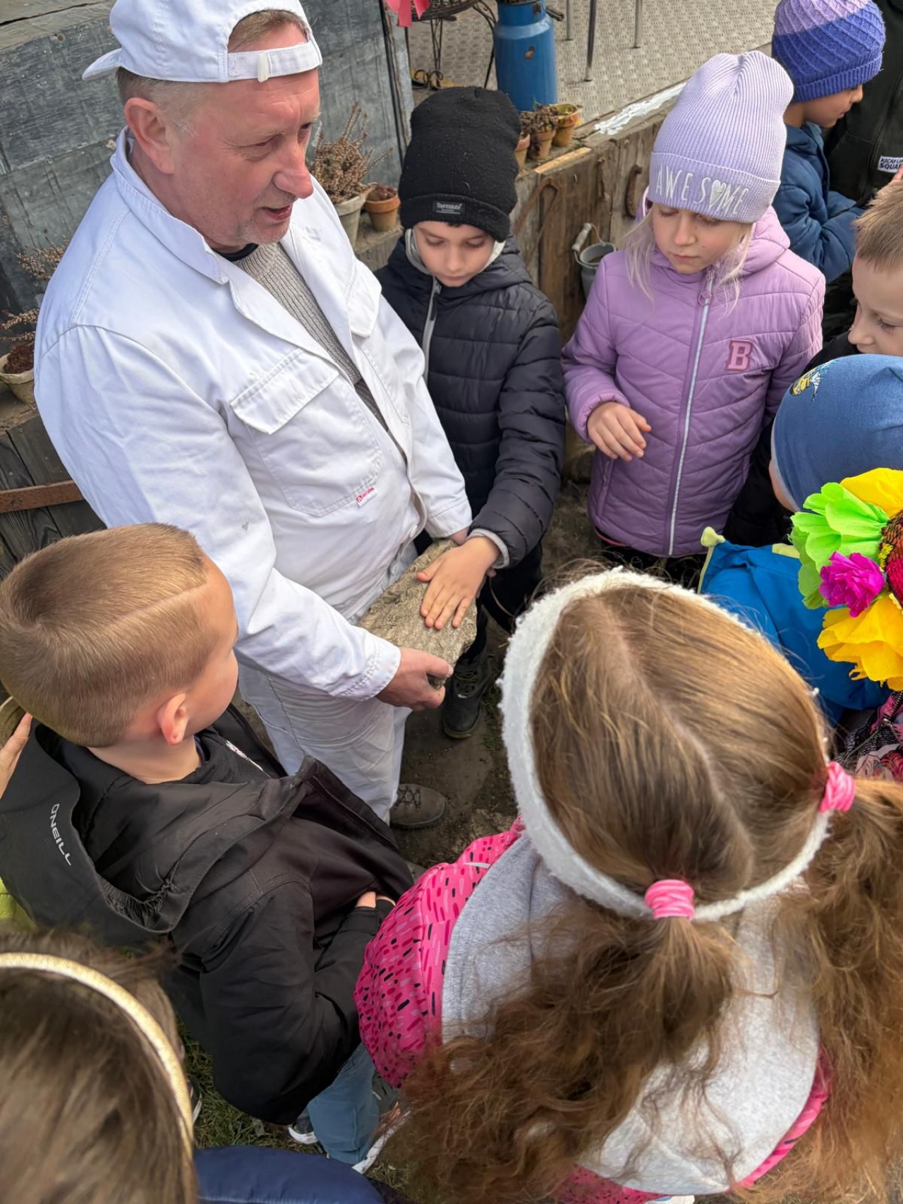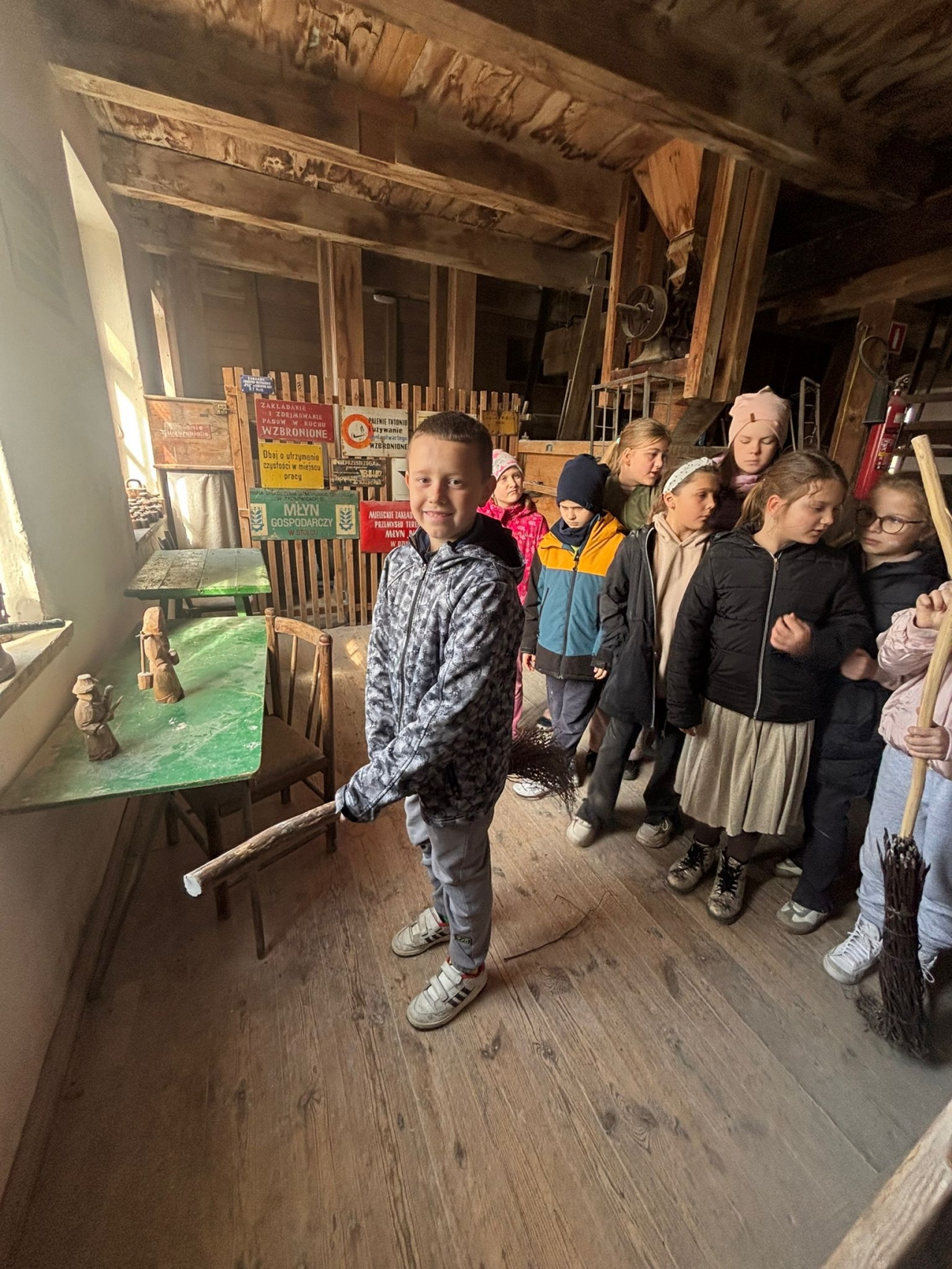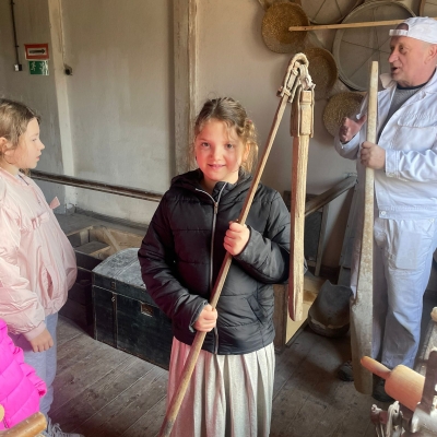 Duże zainteresowanie wzbudziły maszyny wykorzystywane w młynie oraz opowieści o różnych szkodnikach, które można tam spotkać. Dzieci z zaciekawieniem słuchały również o mieszkańcach młyna – czterech kotach, które pilnują porządku i dbają o to, aby nie pojawiali się tam niechciani goście, tacy jak myszy czy szczury. Wycieczka była nie tylko ciekawym doświadczeniem edukacyjnym, ale także świetną okazją do wspólnego spędzenia czasu i radosnego powitania wiosny. Składamy serdeczne podziękowania dla pana Ireneusza Greli, właściciela Młyna Dobra, za ciepłe przyjęcie uczniów oraz poświęcony czas.
