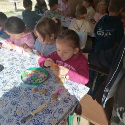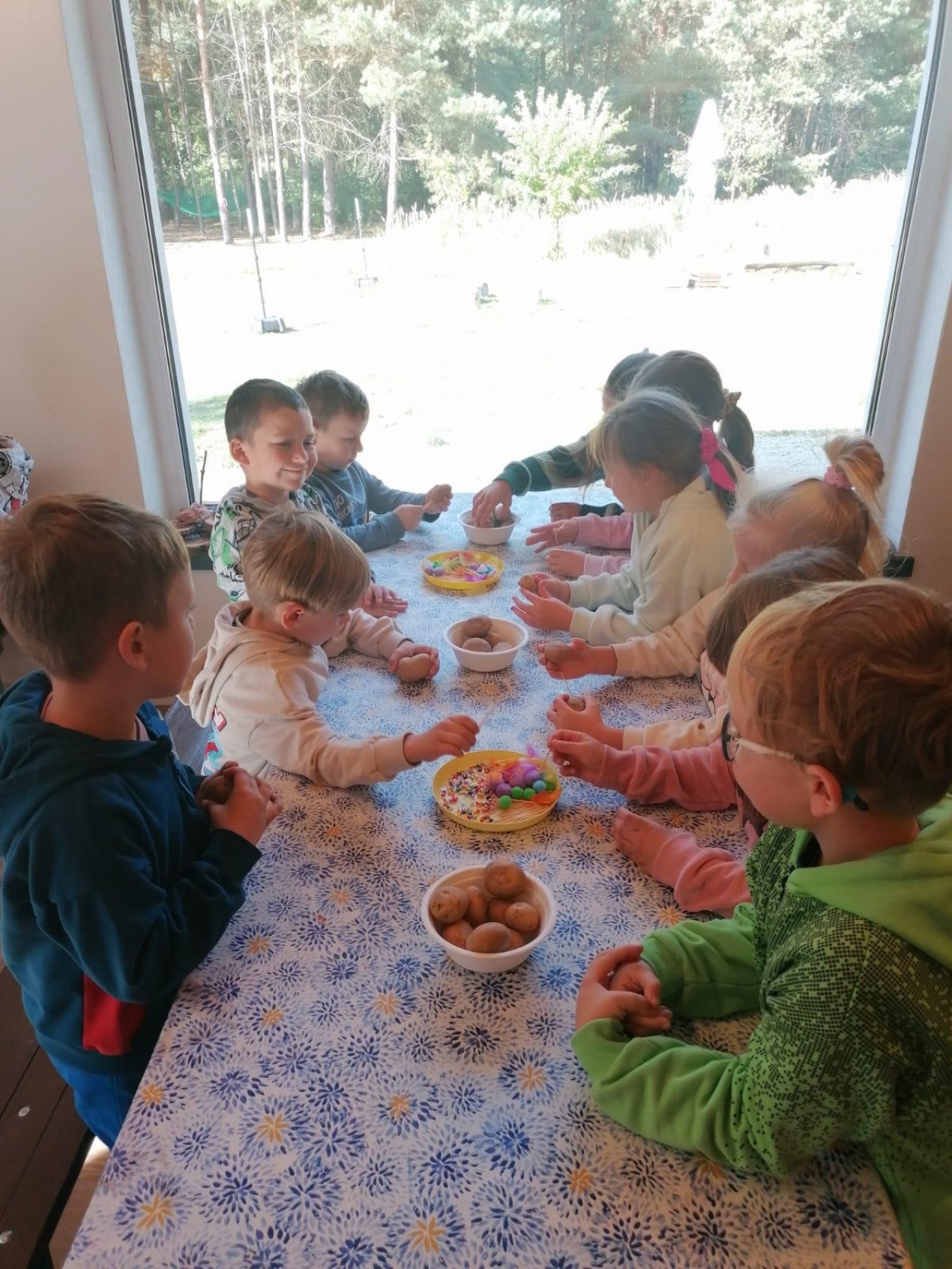 Następnie na dzieci czekały zawody sportowe oraz zajęcia plastyczne, w czasie których dzieci tworzyły figurki z ziemniaków.
