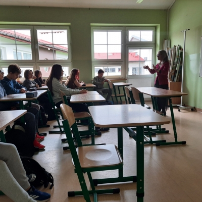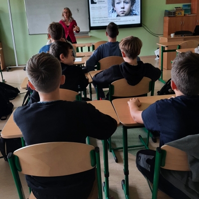 7 października 2025 roku w naszej szkole odbyło się spotkanie z p. Jolantą Sowińską-Gogacz, pracownikiem Muzeum Dzieci Polskich – ofiar totalitaryzmu. Autorka książki ,,Mały Oświęcim” przybyła do nas na zaproszenie p. Sylwii Trzeciak. Zajęcia edukacyjne dotyczące historii jedynego niemieckiego obozu dla dzieci polskich wywarły na uczniach klas VII i VIII ogromne wrażenie. Ukryte przed światem miejsce, z którego nie można było uciec. Naznaczone bólem i cierpieniem dziecięce piekło stworzone przez Niemców na terenie łódzkiego getta to historia, która nigdy nie powinna się wydarzyć.
