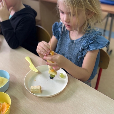 Podczas zajęć rozmawialiśmy o wartościach odżywczych warzyw i owoców. Dzieci poznały ich wpływ na zdrowie, m.in. na odporność, koncentrację i samopoczucie.