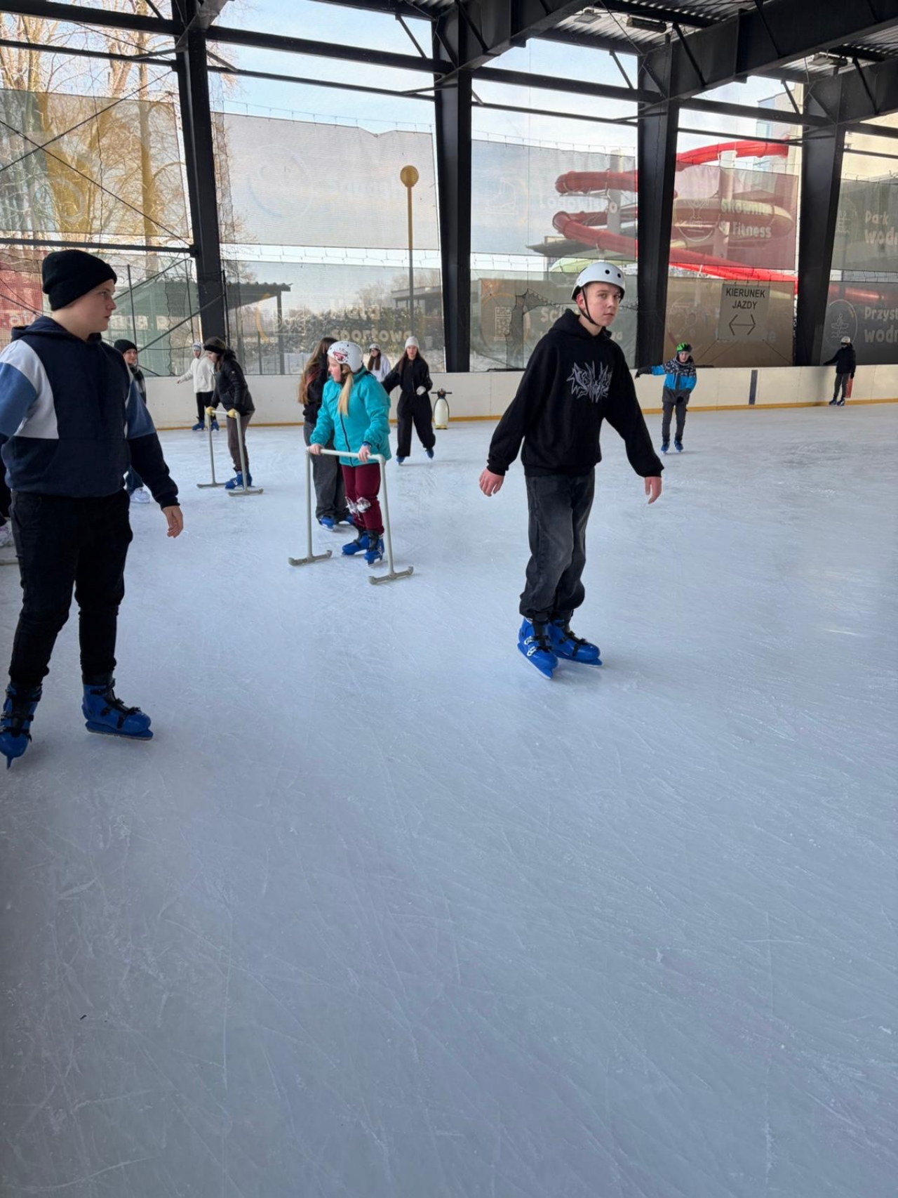 Tuż po feriach, korzystając z uroków mroźnej aury, wybraliśmy się z naszymi uśmiechniętymi uczniami na fantastyczną aktywność na świeżym powietrzu. Naszym celem było rozświetlone lodowisko w Oleśnicy, które przywitało nas idealnie gładką taflą i energetyczną muzyką. Śmiechom i przyjacielskim żartom nie było końca, a każdy ślizg dodawał nam pozytywnej energii. Zarówno mistrzowie piruetów, jak i ci stawiający ostrożne, pierwsze kroki, bawili się wyśmienicie. To było cudowne połączenie sportu z beztroską integracją w serdecznym gronie rówieśników. Zabawa była tak porywająca, że nikt nie myślał o powrocie! To był naprawdę magiczny dzień, który na długo pozostanie w naszej wdzięcznej pamięci.