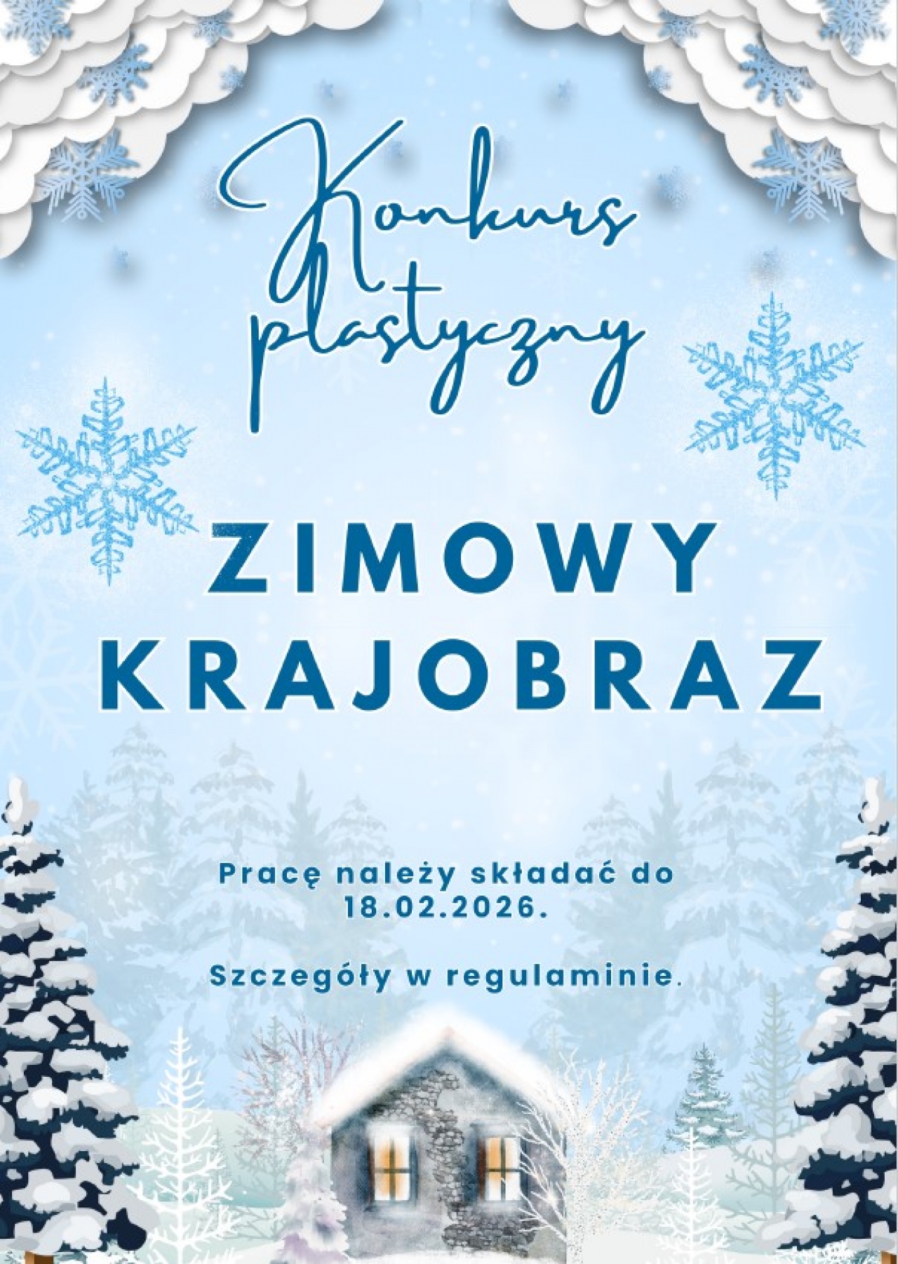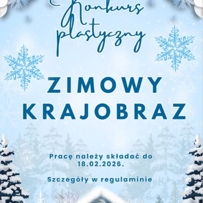Zapraszamy do udziału w konkursie plastycznym nt. "Zimowy krajobraz". Szczegóły konkursu na plakacie oraz w regulaminie.