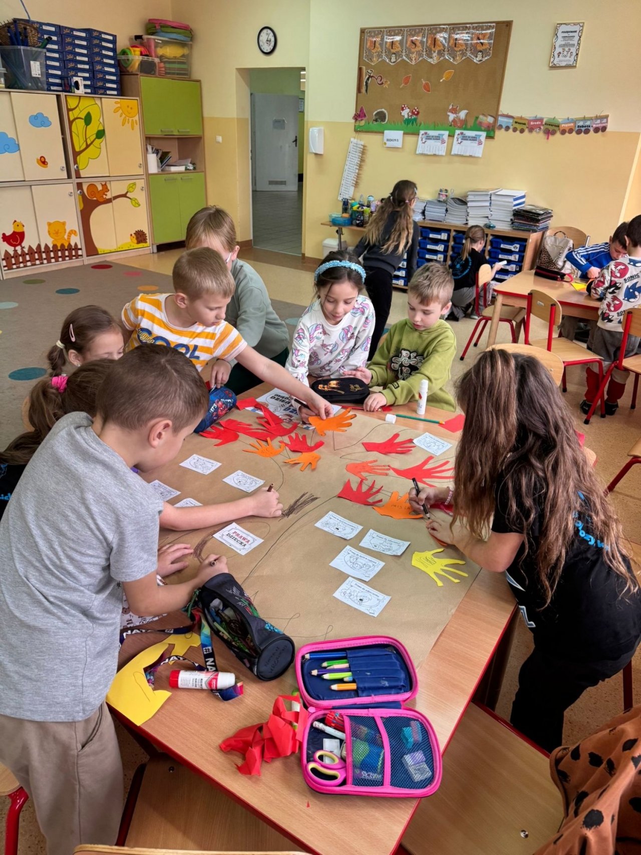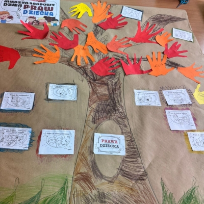 Następnie dzieci wzięły udział w zajęciach warsztatowych prowadzonych wg. metody Doroty Dziamskiej ,,Edukacja przez ruch”. Dzieci z najstarszej grupy przedszkolnej - wykonały plakat na dużym arkuszu szarego papieru , niejako ,,podpisując się” pod znajomością swoich praw. To był bardzo interesująco i aktywnie spędzony dzień.