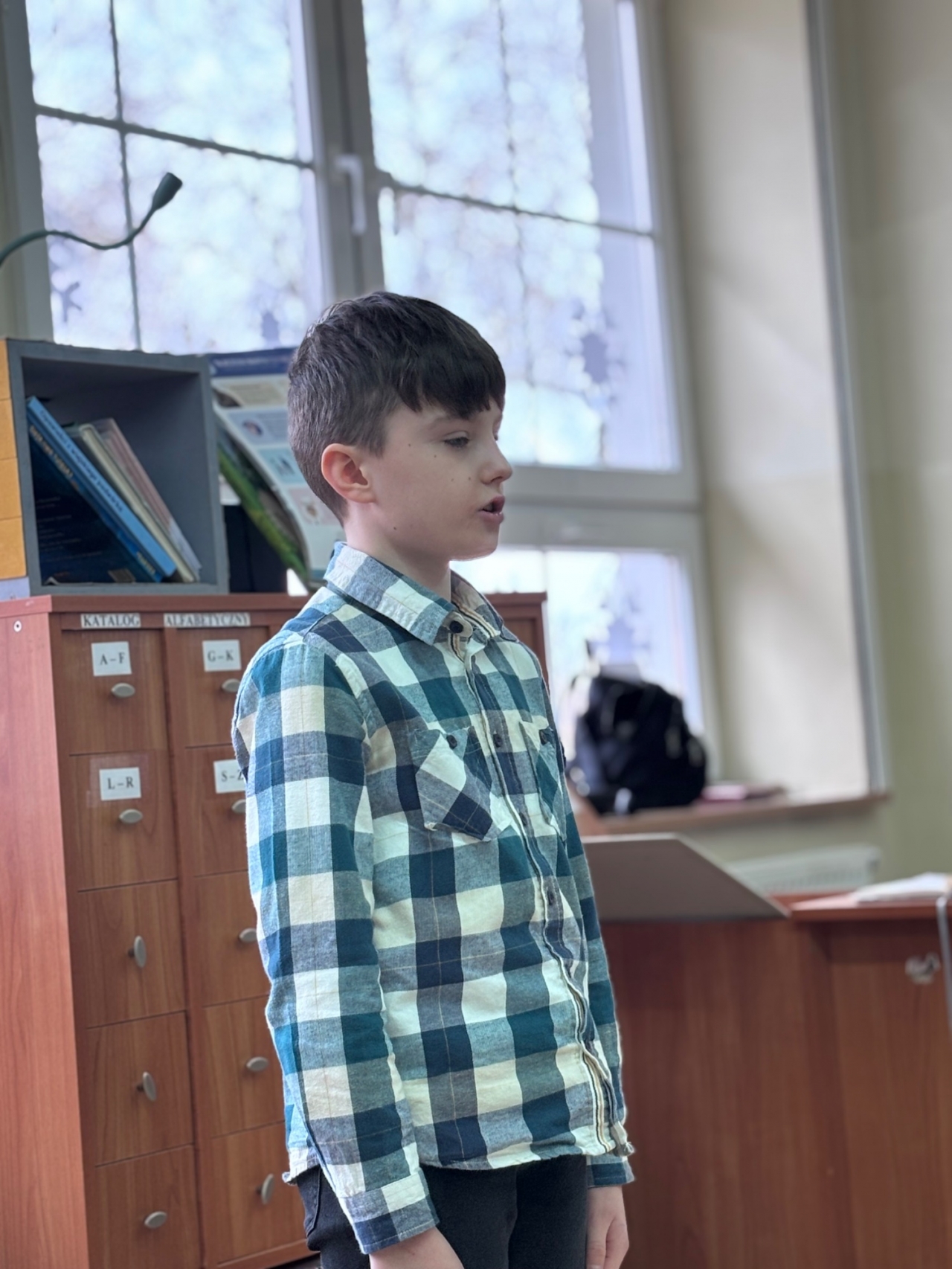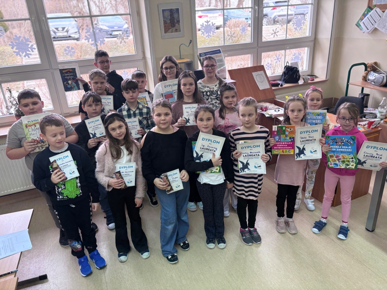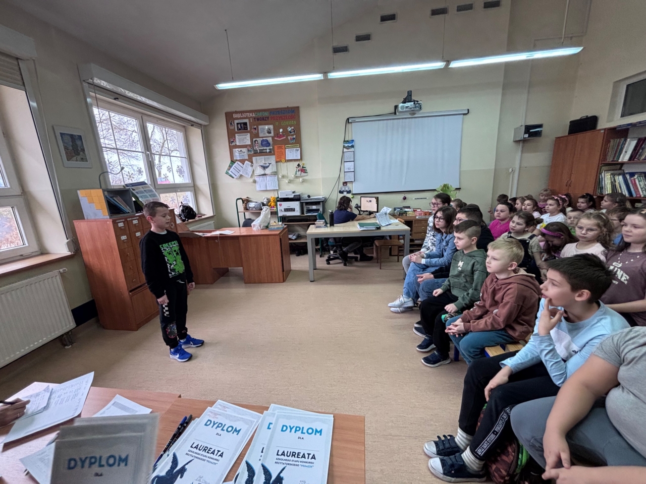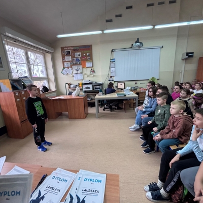 Awans do następnego etapu konkursu z klas IV-VIII otrzymali uczniowie klasy V: Daniela Balicka oraz Wojciech Kuczaj.