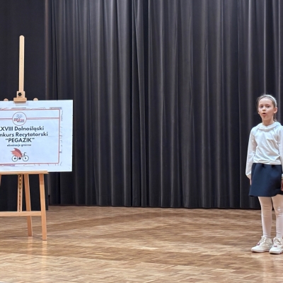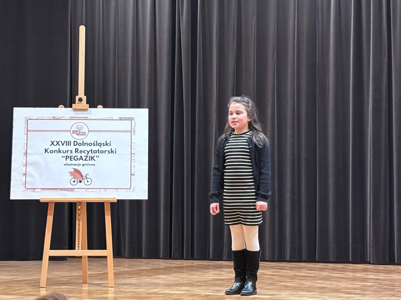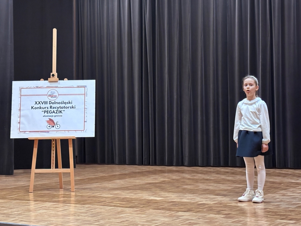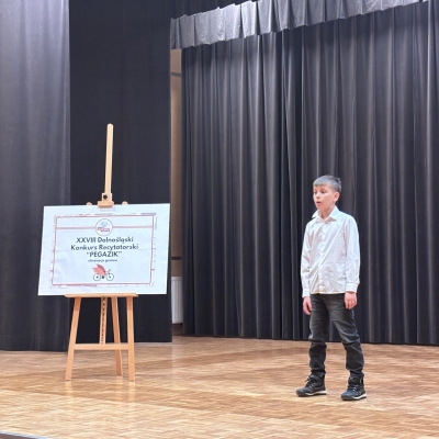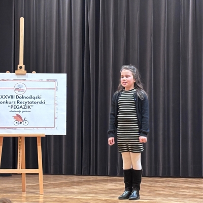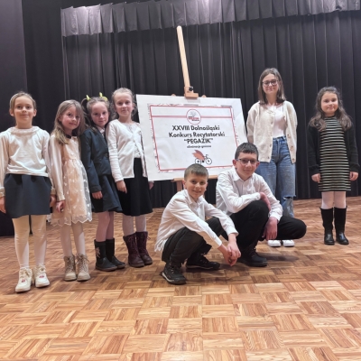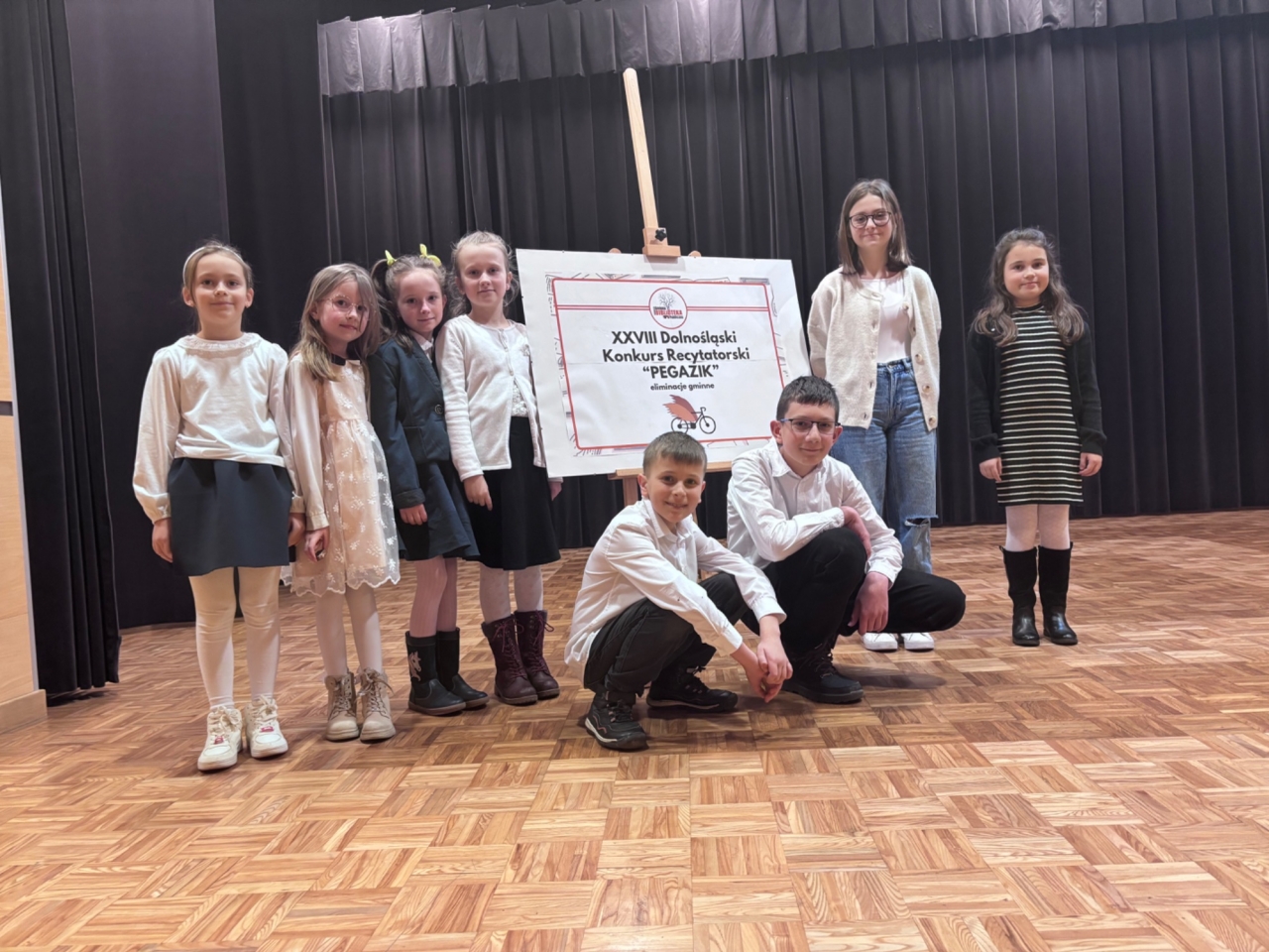 21 lutego odbyły się szkolne eliminacje do XXVIII Dolnośląskiego Konkursu Recytatorskiego "Pegazik". Z grona 18 uczniów, jury wyłoniło 6 recytatorów, którzy reprezentowali naszą szkołę w eliminacjach gminnych, które odbyły się 28 lutego w Gminnym Centrum Kultury im. Anny Sojko w Dobroszycach.