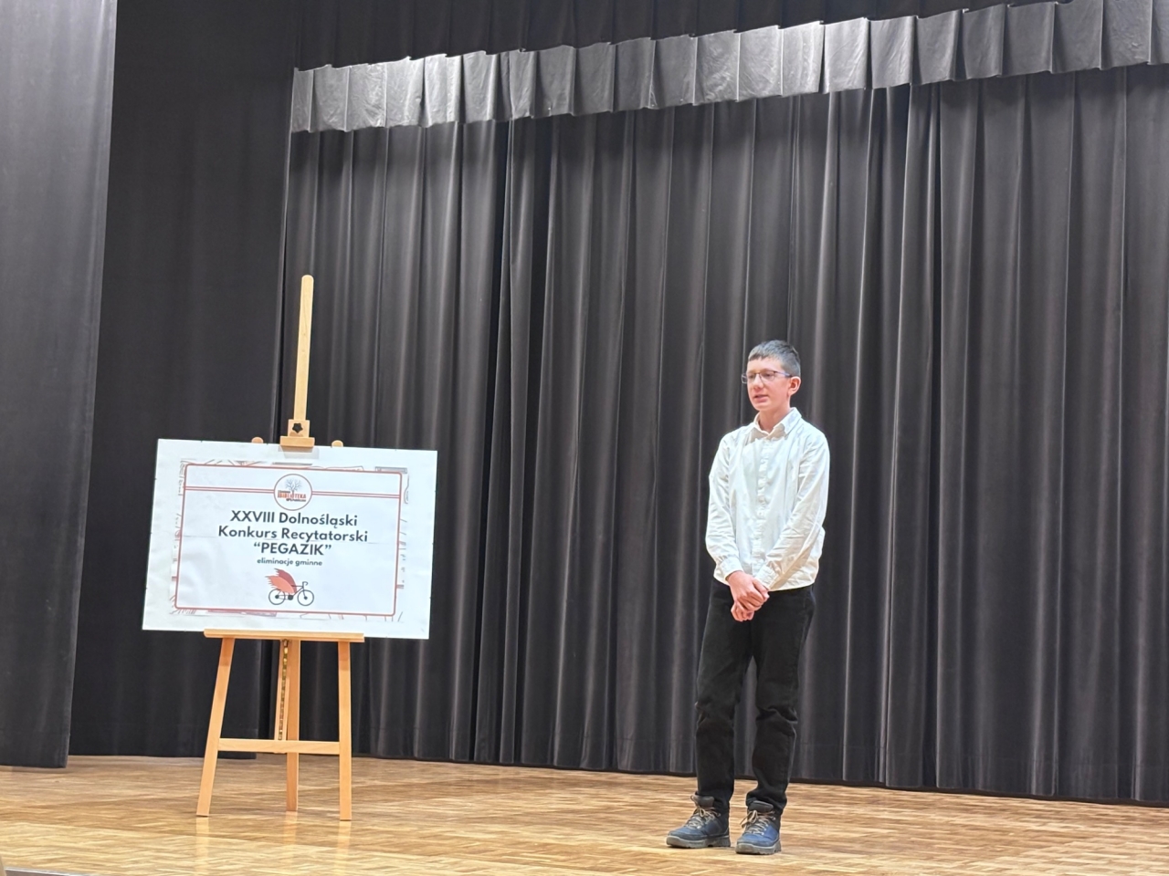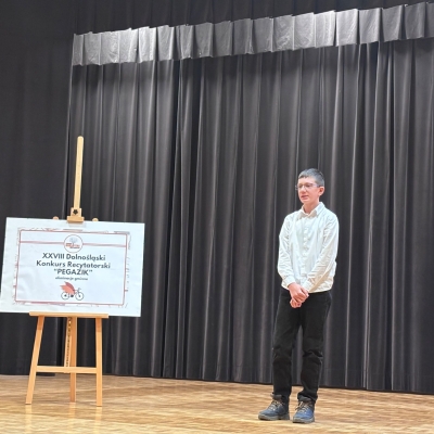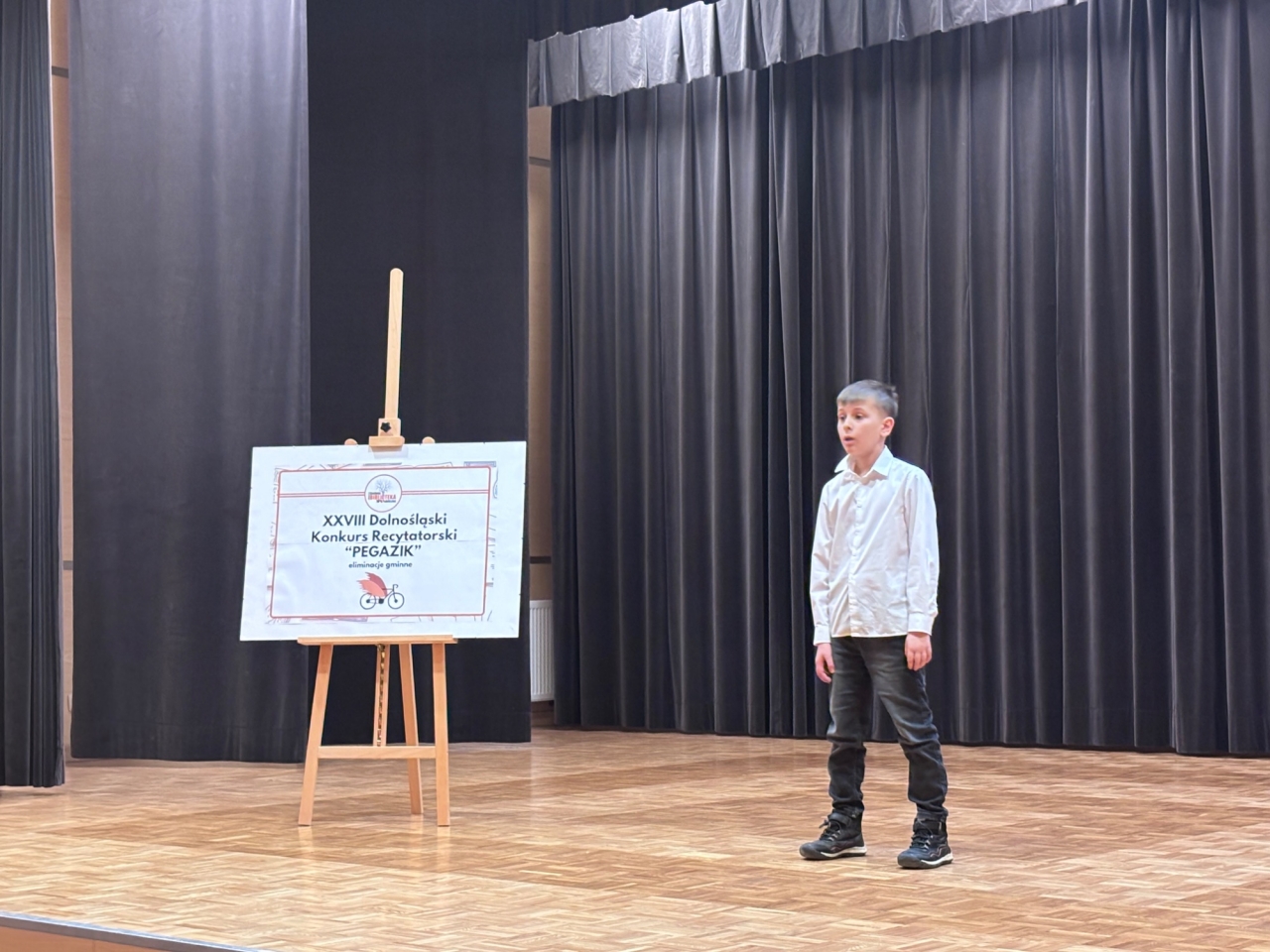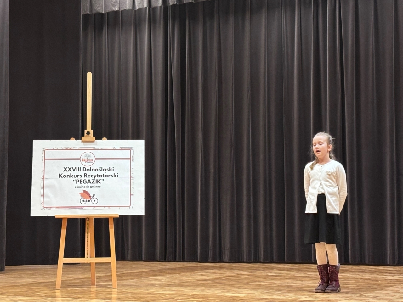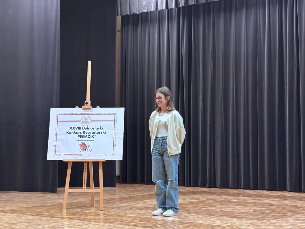 21 lutego odbyły się szkolne eliminacje do XXVIII Dolnośląskiego Konkursu Recytatorskiego "Pegazik". Z grona 18 uczniów, jury wyłoniło 6 recytatorów, którzy reprezentowali naszą szkołę w eliminacjach gminnych, które odbyły się 28 lutego w Gminnym Centrum Kultury im. Anny Sojko w Dobroszycach.
