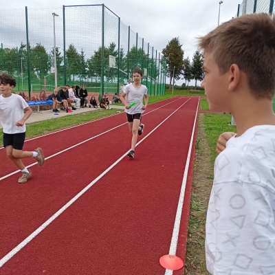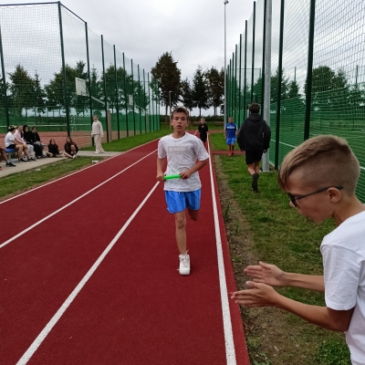 Kilka dni później, w Oleśnicy, naszą szkołę reprezentowali chłopcy z klas IV–VI, biorąc udział w zawodach powiatowych. Zmierzyli się tam z najlepszymi drużynami z całego powiatu – zwycięzcami gminnych etapów rywalizacji. Pomimo ogromnego wyzwania, nasi uczniowie zaprezentowali się z bardzo dobrej strony, pokazując sportowego ducha walki i swoje najwyższe możliwości.