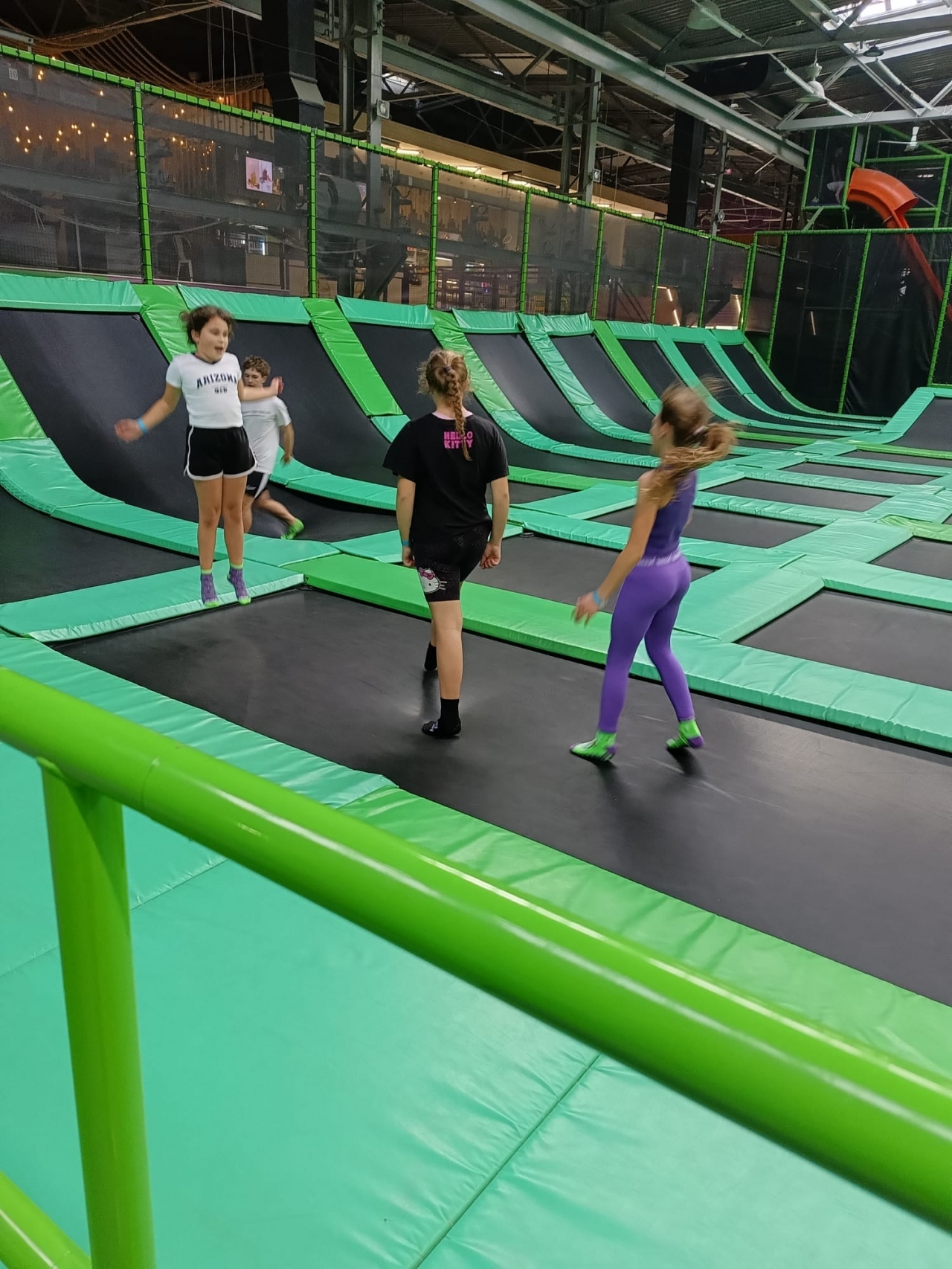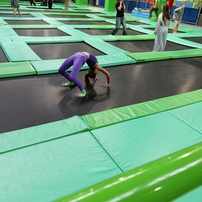 Dzieci doskonaliły matematyczne umiejętności w przestrzeni, z wykorzystaniem infrastruktury parku. Trening myślenia matematycznego i przestrzennego wśród trampolin wszystkim się podobał.