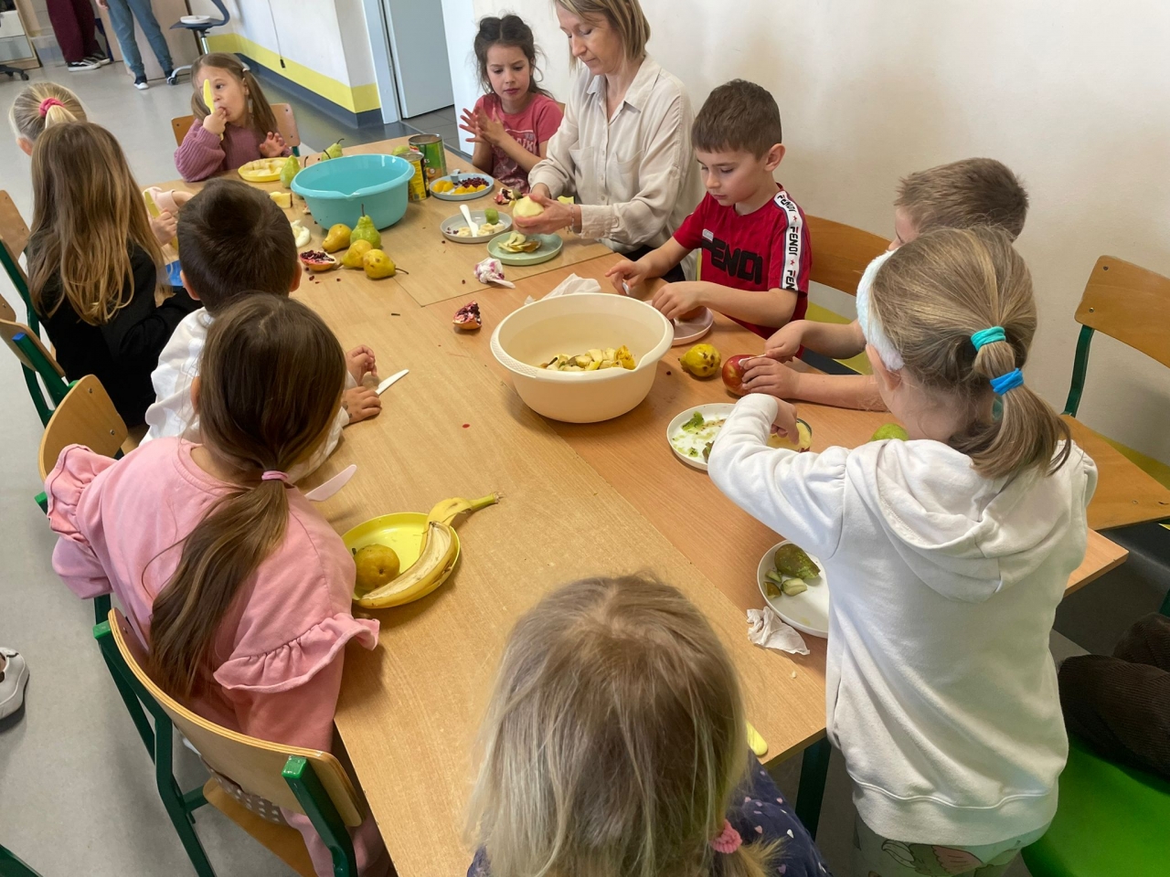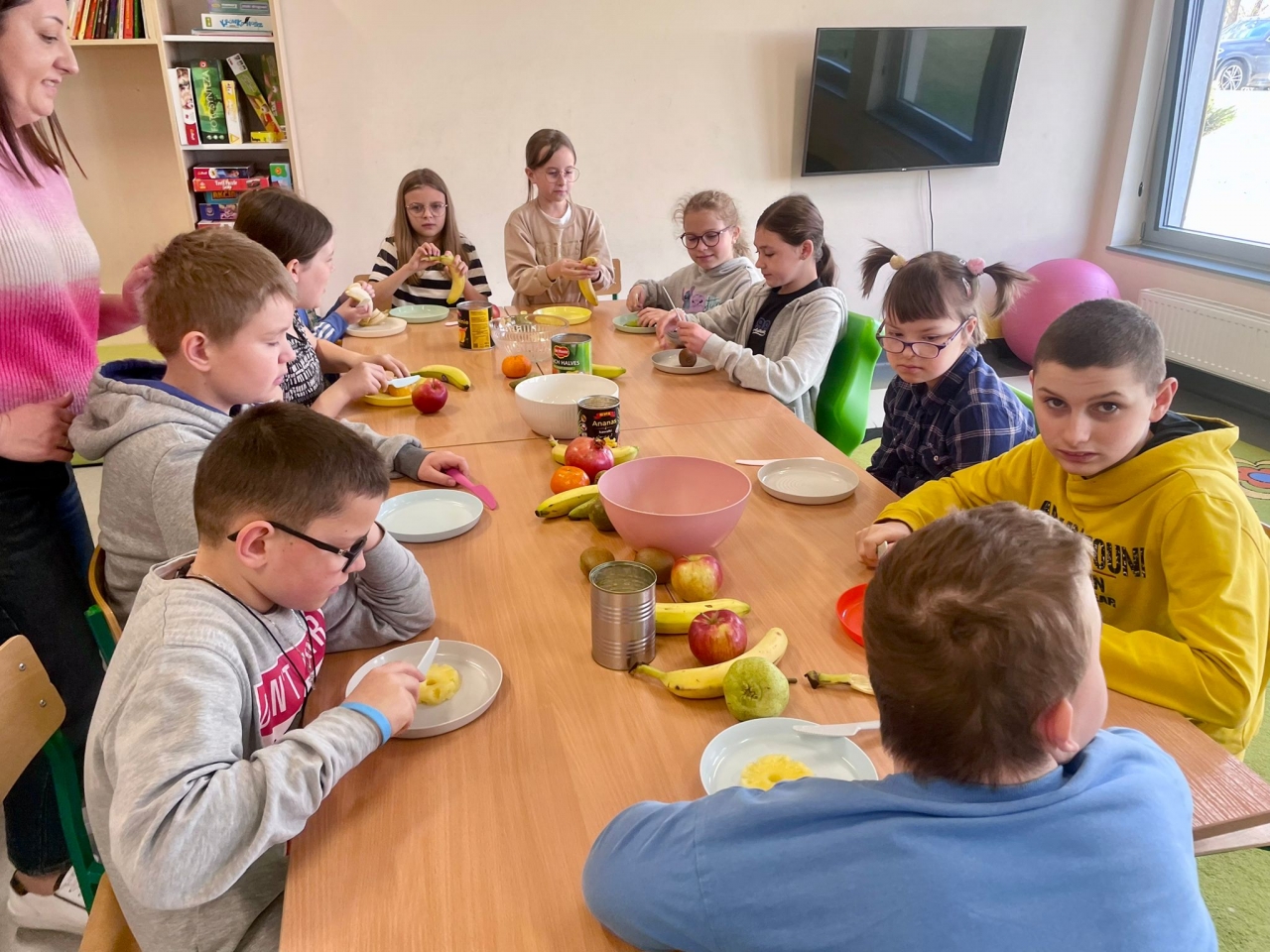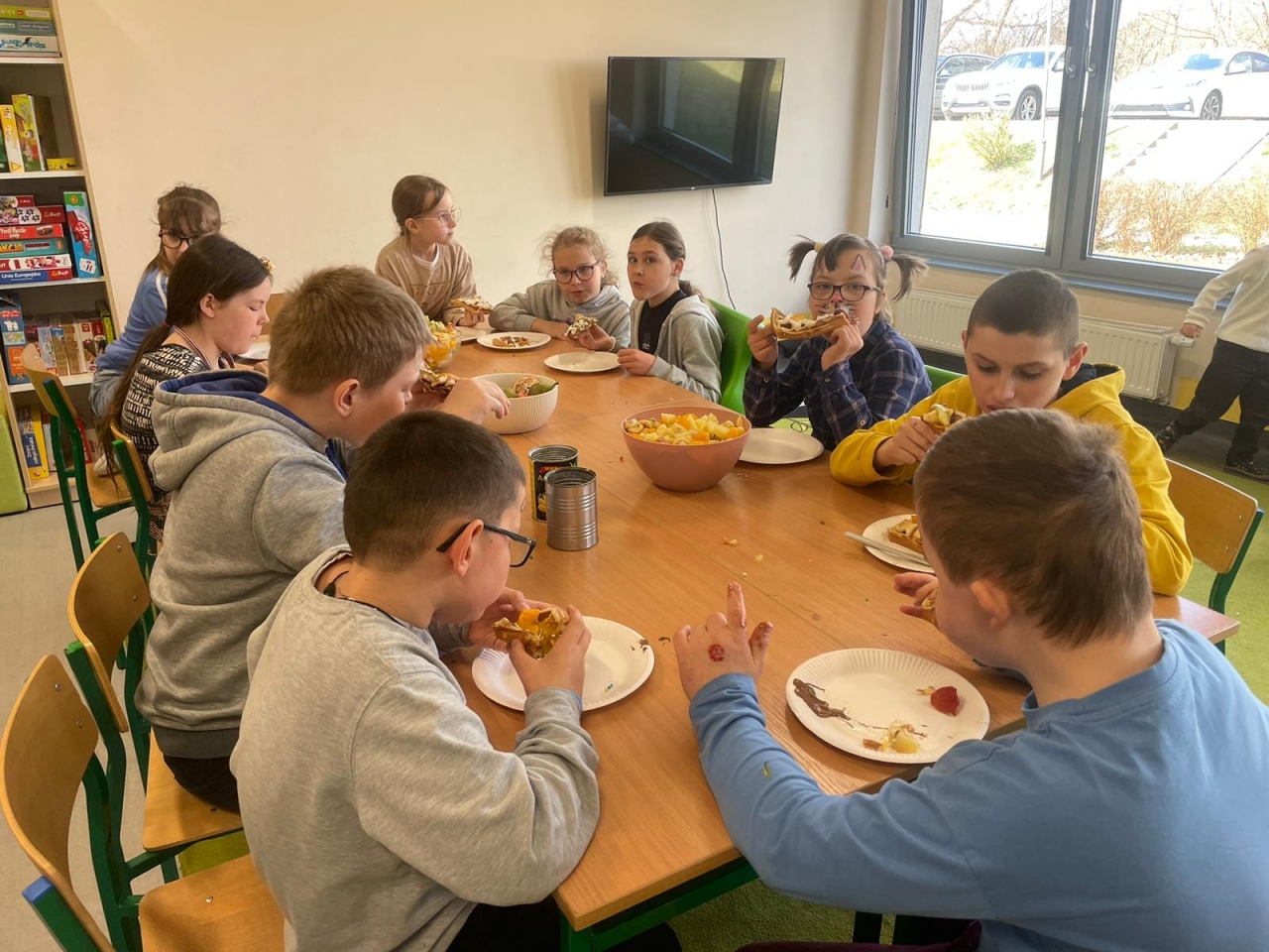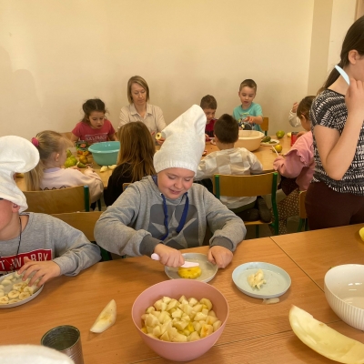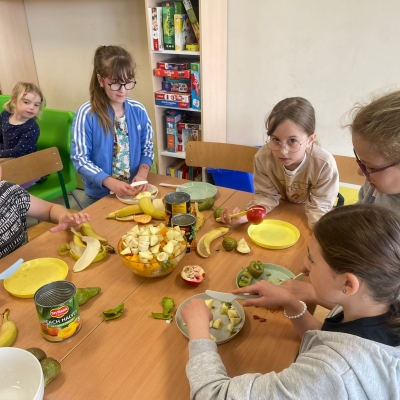 Wspólnie przygotowaliśmy różnorodne warsztaty, które pozwoliły wszystkim aktywnie spędzić czas i odkryć swoje talenty. Uczniowie z entuzjazmem przygotowywali sałatki oraz gofry, a także brali udział w zajęciach artystycznych – malowali twarze, wykonywali brokatowe tatuaże oraz tworzyli prace plastyczne.