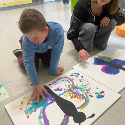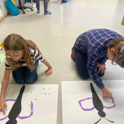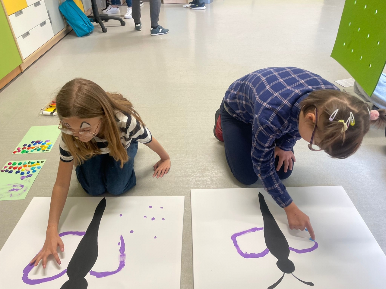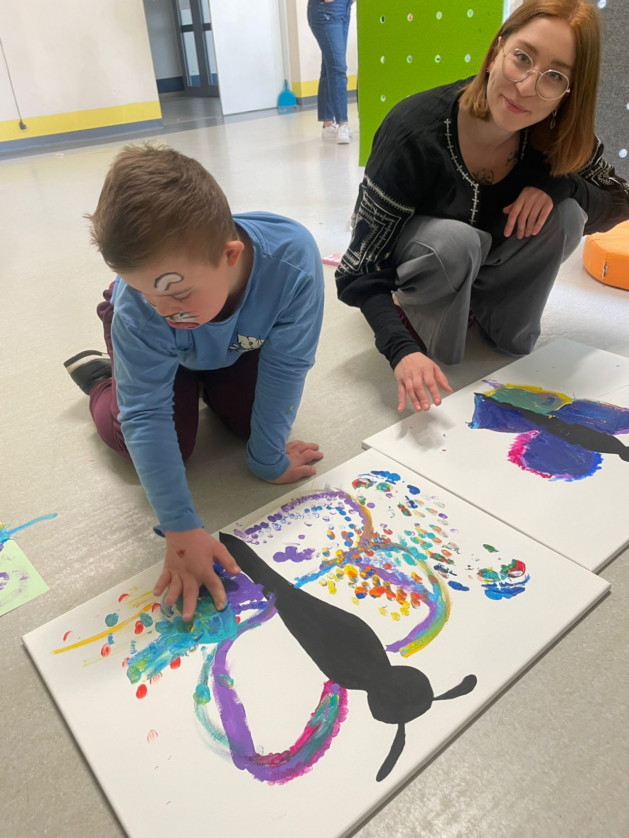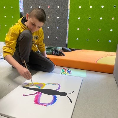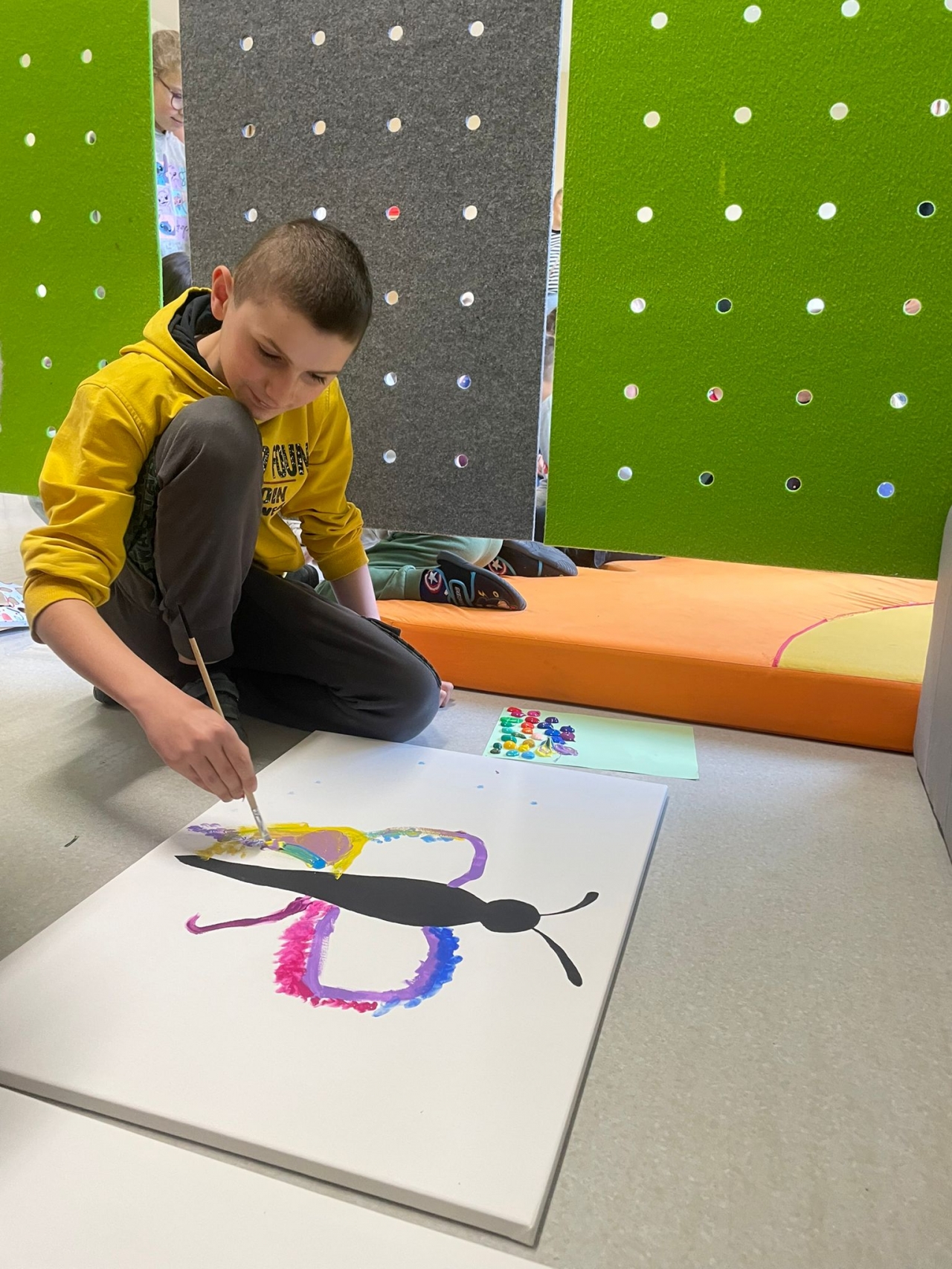Wyjątkowym momentem było wspólne namalowanie dwóch obrazów przedstawiających motyle. Jeden z nich stanie się prezentem dla naszych przyjaciół z Oleśnicy, natomiast drugi pozostanie w naszej szkole jako pamiątka tego wyjątkowego dnia.