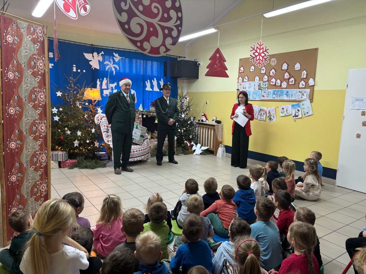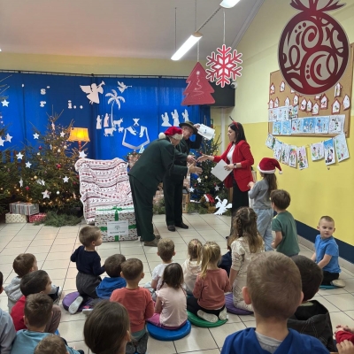 Spotkanie przebiegło w miłej atmosferze oraz scenografii świątecznej przygotowanej przez kadrę przedszkola.