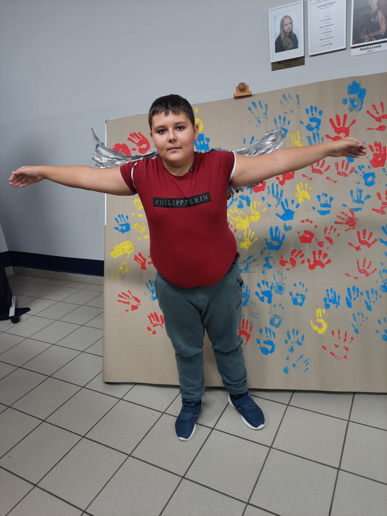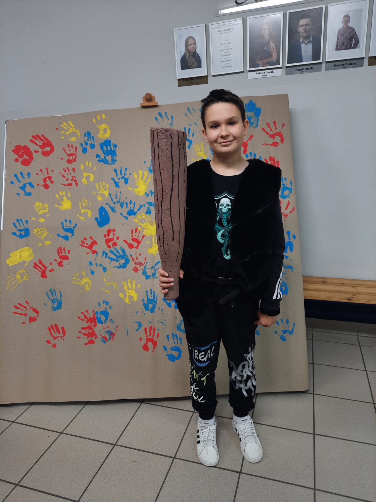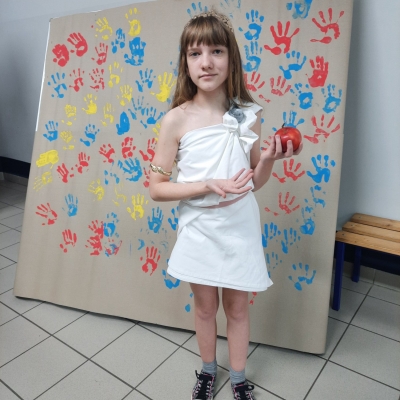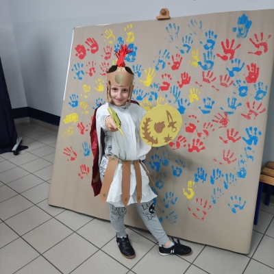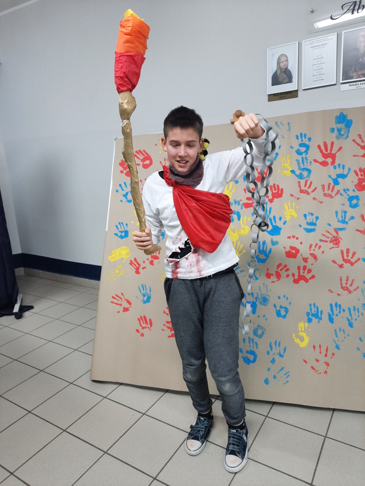 To już w naszej szkole tradycja, że na zakończenie omawiania historii starożytnej Grecji, uczniowie przebierają się za wybranego mitologicznego boga, herosa lub bohatera. Prezentacja postaci, przygotowane stroje oraz atrybuty uczyniły naszą lekcję wyjątkową. Jesteśmy przekonani, że na długo pamiętać będziemy o: Łukaszu – Hadesie i jego Cerberze, gromowładnym Adasiu – Zeusie, dzielnym Kacprze – Prometeuszu, Julce – Afrodycie, najpiękniejszej z bogiń, pomysłowym Adrianie – Dedalu, walecznym Błażeju – Aresie oraz słynącym ze swojej siły i sprytu Michale – Heraklesie.