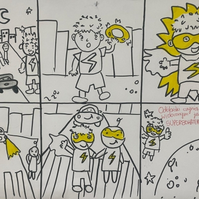 Podczas ostatnich lekcji plastyki uczniowie klas 4–7 tworzyli komiksy poświęcone bezpieczeństwu w ruchu drogowym. Uczniowie z dużym zaangażowaniem podeszli do zadania – ich prace były pełne pomysłowości, humoru i ważnych przesłań. Spośród wszystkich komiksów szczególnie wyróżnił się ten przygotowany przez uczennice klasy 7, które zdobyły nagrodę za najlepszy komiks. Gratulujemy zwyciężczyniom i dziękujemy wszystkim uczestnikom za kreatywność oraz przypomnienie nam, że bezpieczeństwo to sprawa każdego z nas!