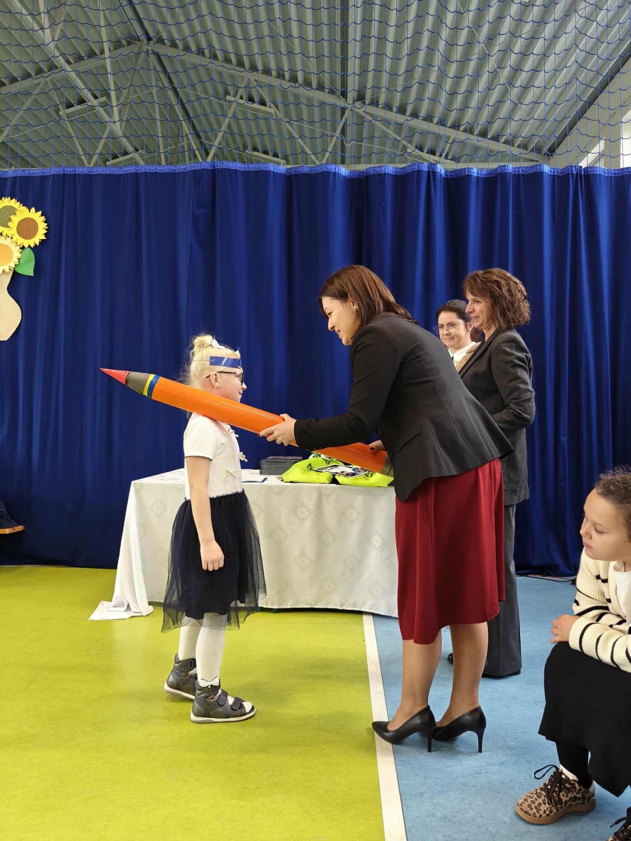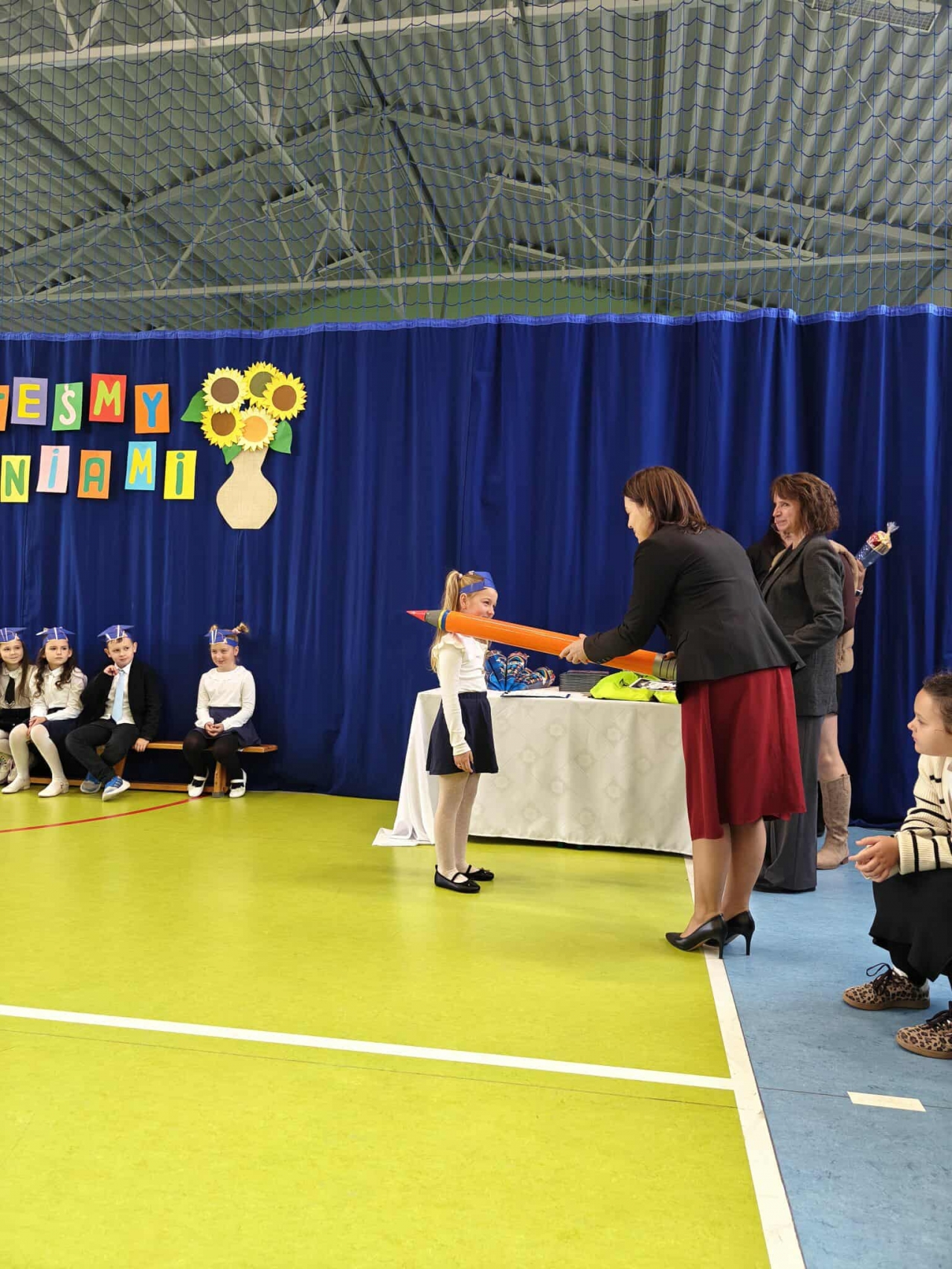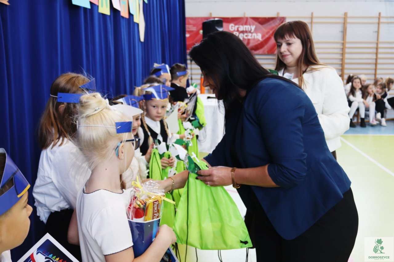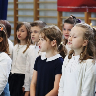Nie zabrakło także części artystycznej – piosenek, wierszy i radosnych występów przygotowanych specjalnie na tę okazję. Serdeczne podziękowania kierujemy do wychowawczyni pani Małgorzaty Kubicz oraz pani Emilii Biegańskiej-Kozołub za przygotowanie uczniów i organizację tej pięknej uroczystości. To był dzień pełen emocji, uśmiechów i wzruszeń – dzień, który na długo pozostanie w pamięci naszych najmłodszych uczniów.