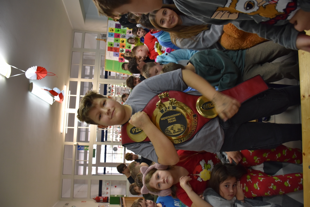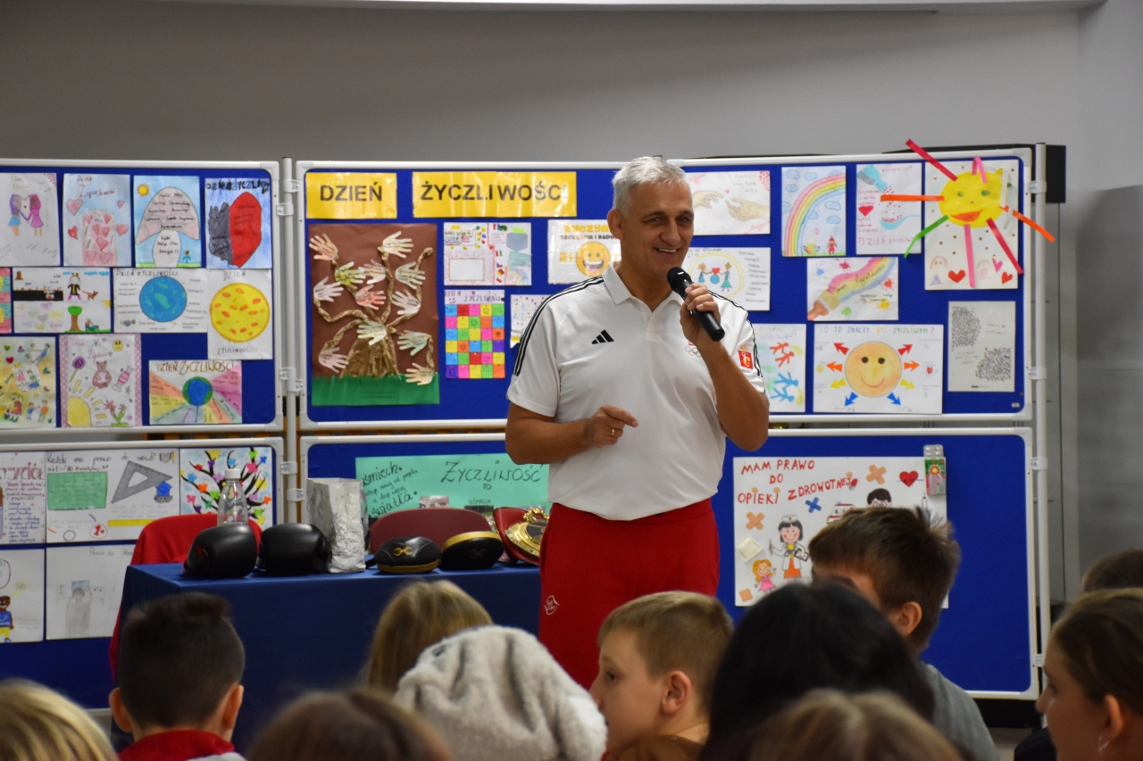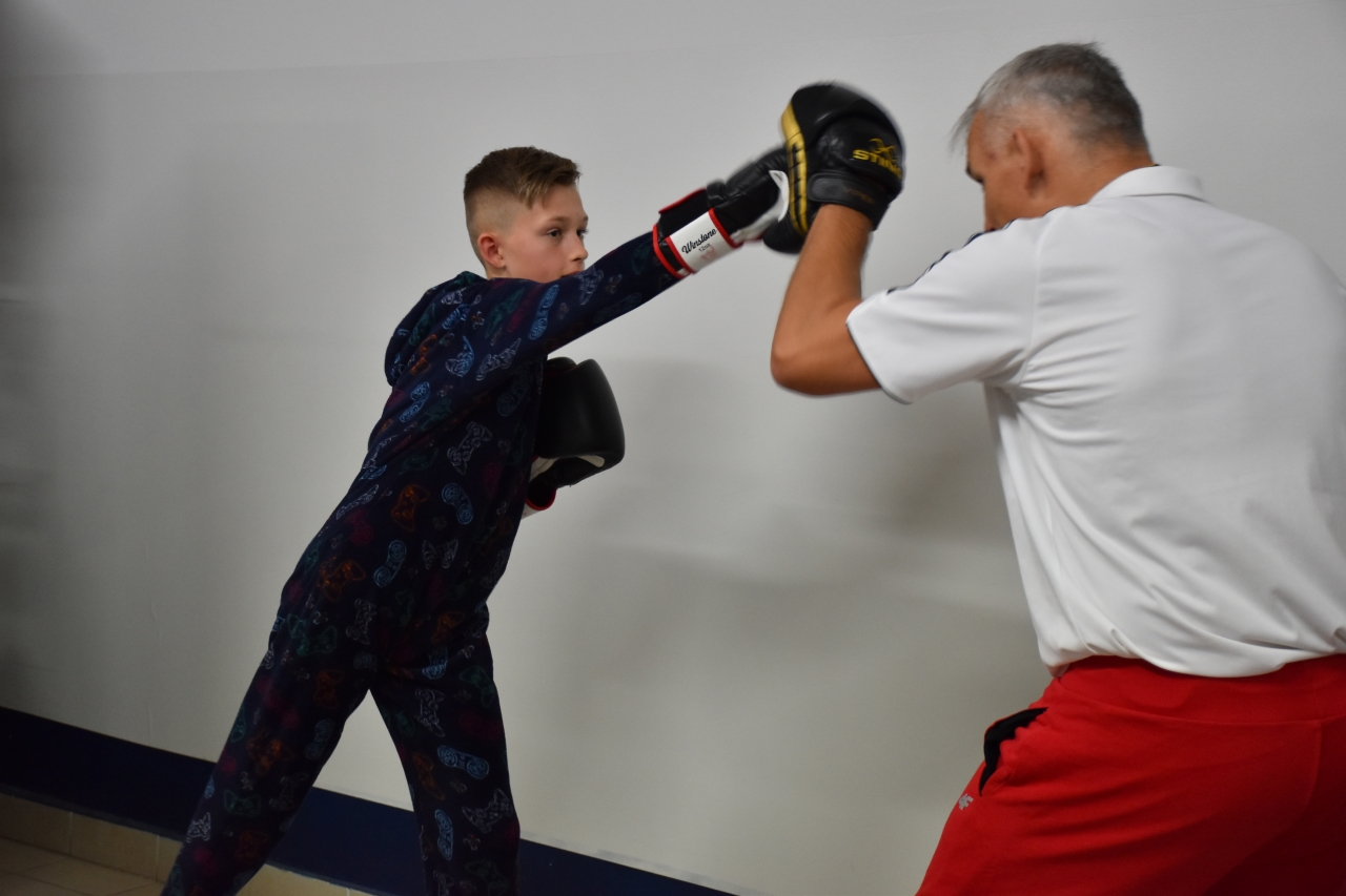 Pan Wojciech przybliżył historię i definicję boksu. Objaśnił kategorie wagowe i zasady na ringu. Omówił zdrowy styl życia (prawidłowe odżywianie, odnowę biologiczną, treningi).