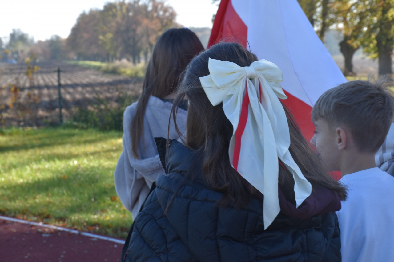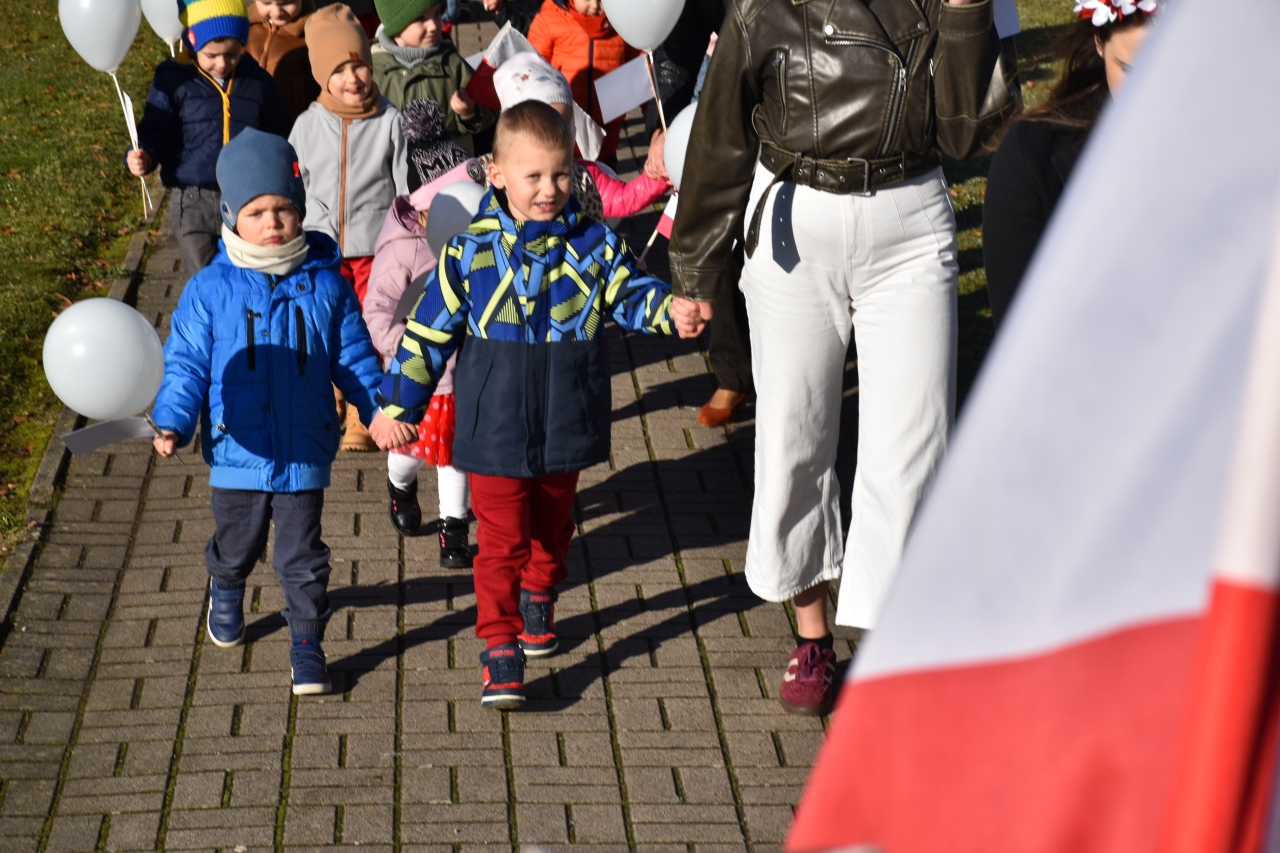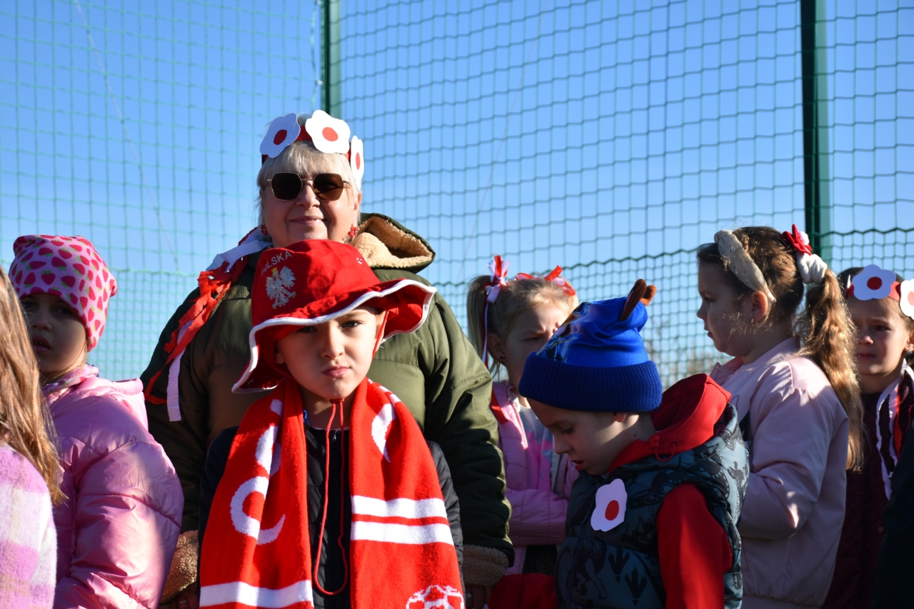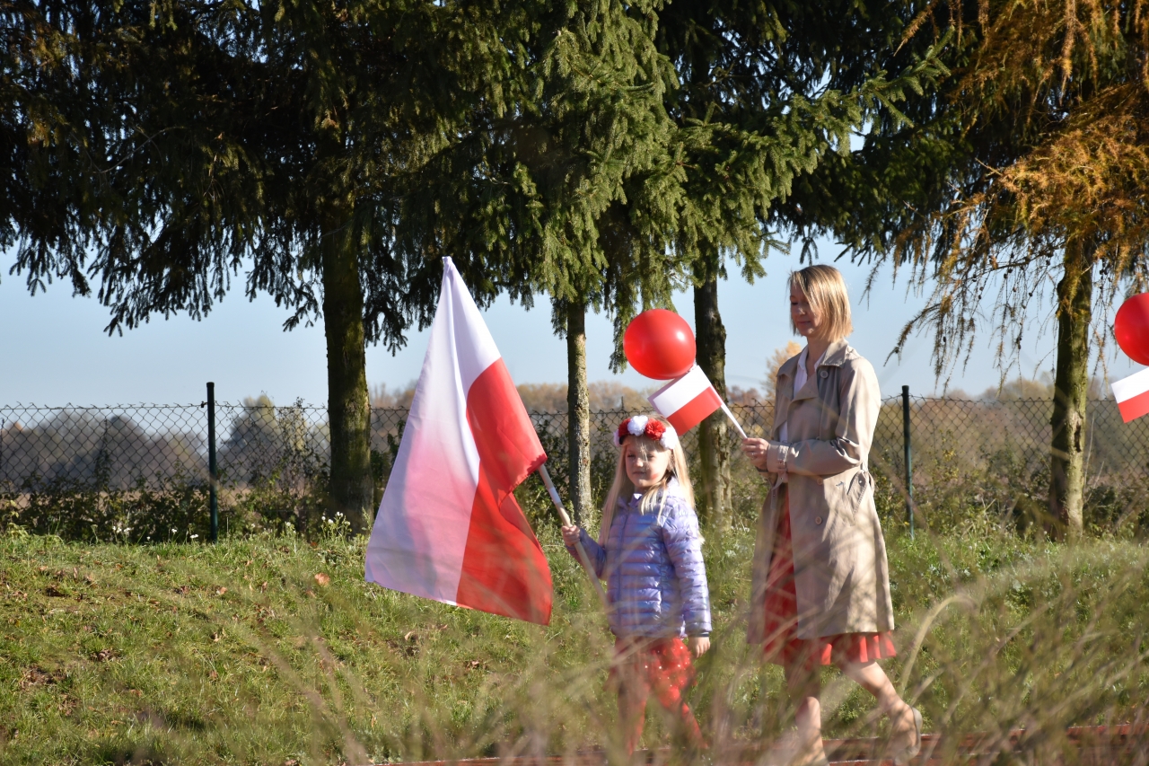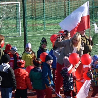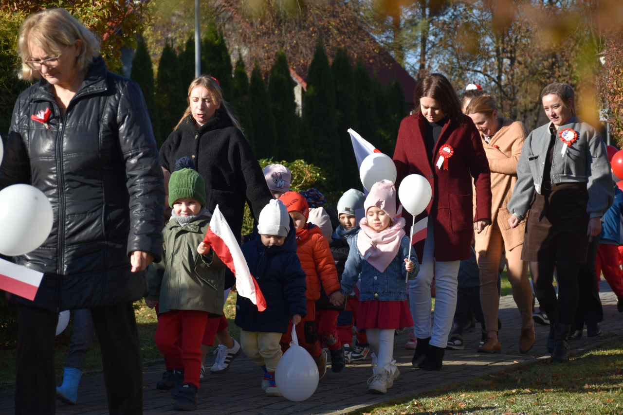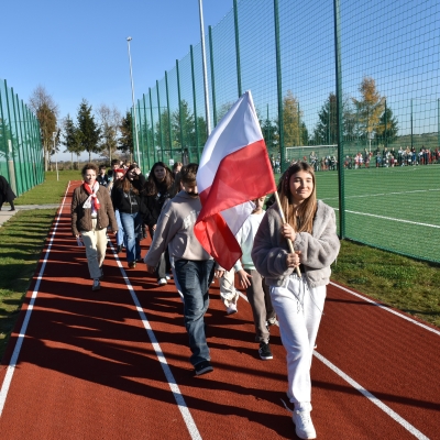 Symbolicznym rozpoczęciem obchodów była Sztafeta Niepodległości – uroczysty marsz z flagą narodową, prowadzony przez chorążego Krzysztofa Sachanka. Flaga wędrowała z rąk do rąk, począwszy od najmłodszej grupy przedszkolnej, aż po uczniów klasy ósmej.