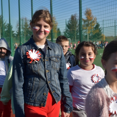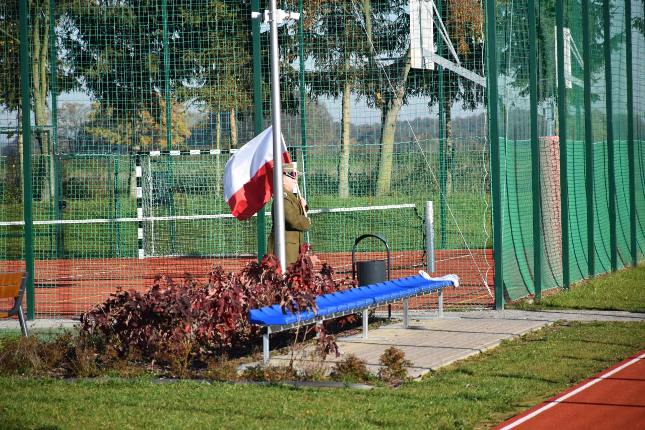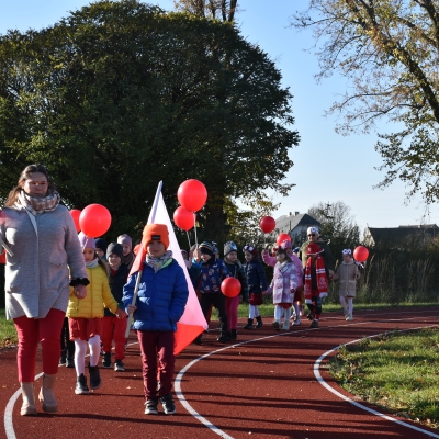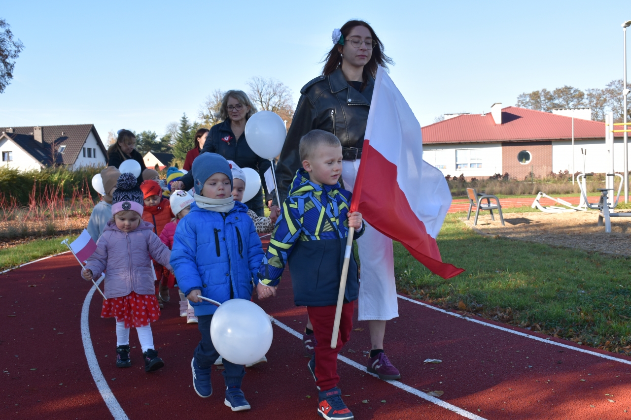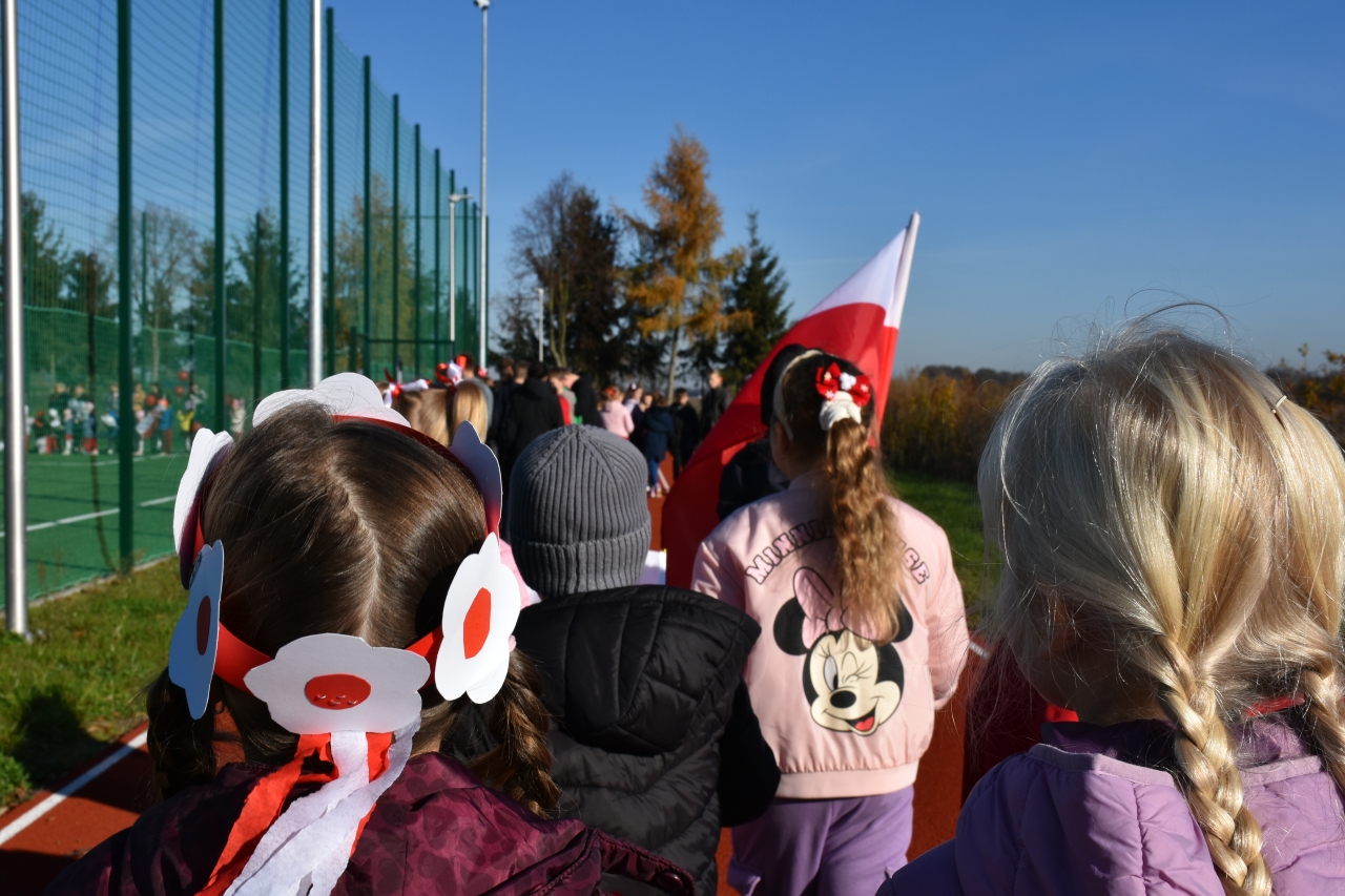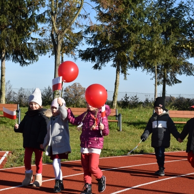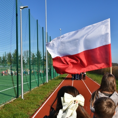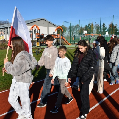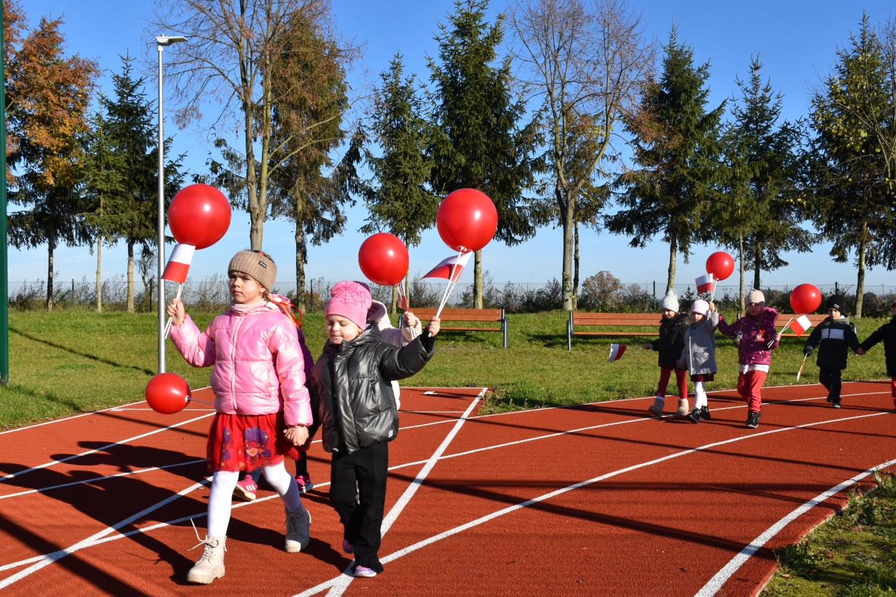 Symbolicznym rozpoczęciem obchodów była Sztafeta Niepodległości – uroczysty marsz z flagą narodową, prowadzony przez chorążego Krzysztofa Sachanka. Flaga wędrowała z rąk do rąk, począwszy od najmłodszej grupy przedszkolnej, aż po uczniów klasy ósmej.