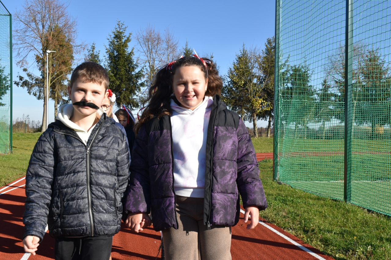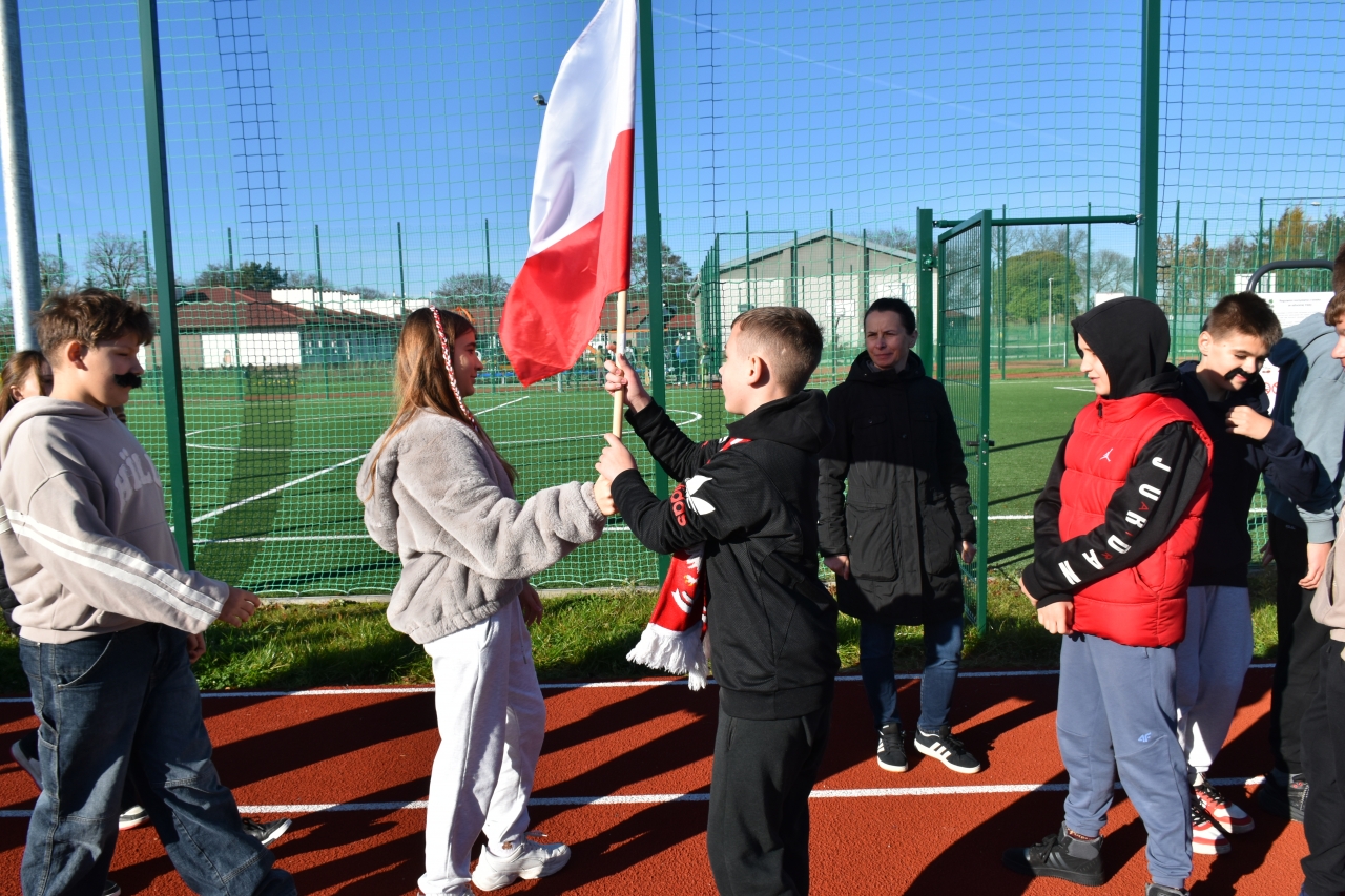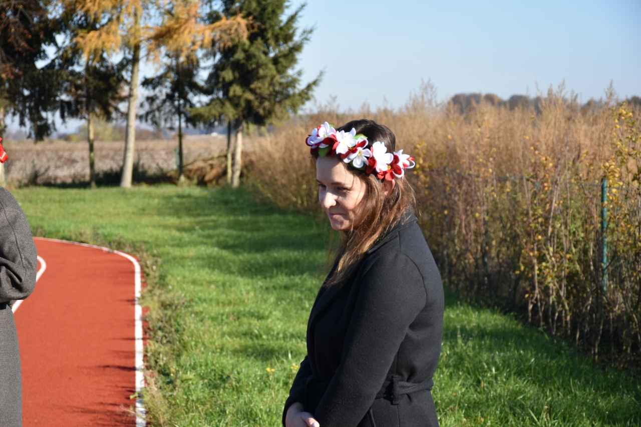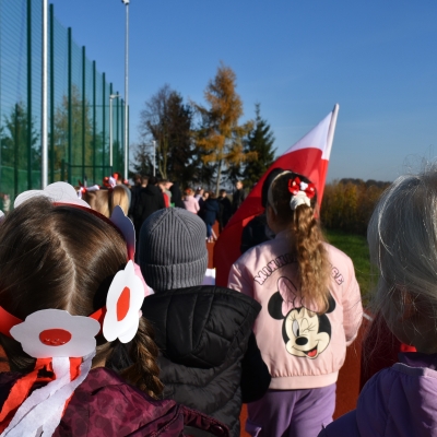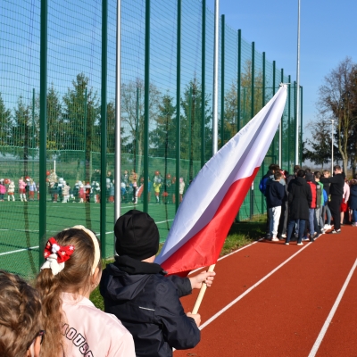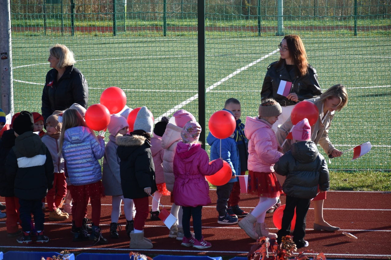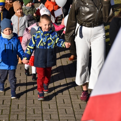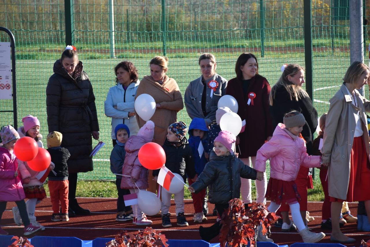Symbolicznym rozpoczęciem obchodów była Sztafeta Niepodległości – uroczysty marsz z flagą narodową, prowadzony przez chorążego Krzysztofa Sachanka. Flaga wędrowała z rąk do rąk, począwszy od najmłodszej grupy przedszkolnej, aż po uczniów klasy ósmej.