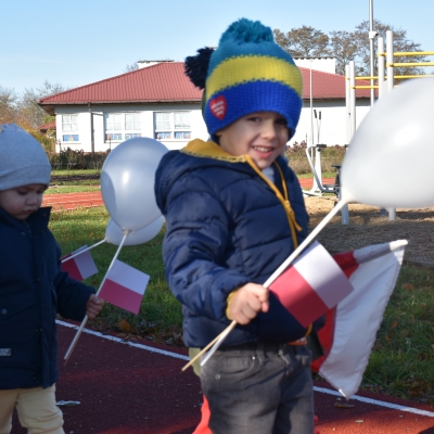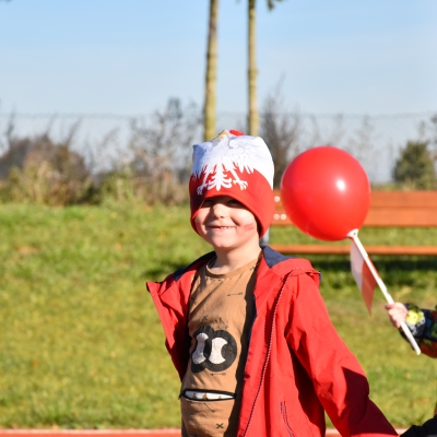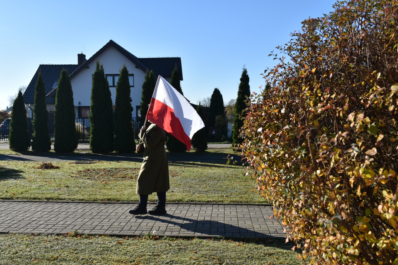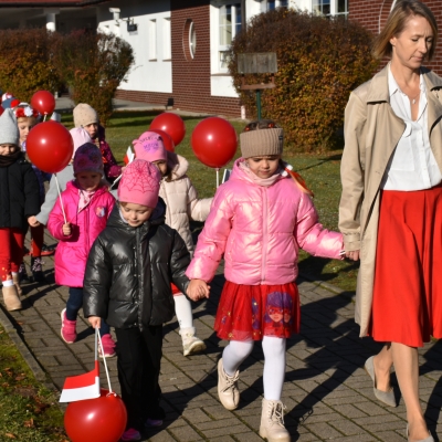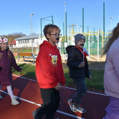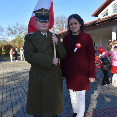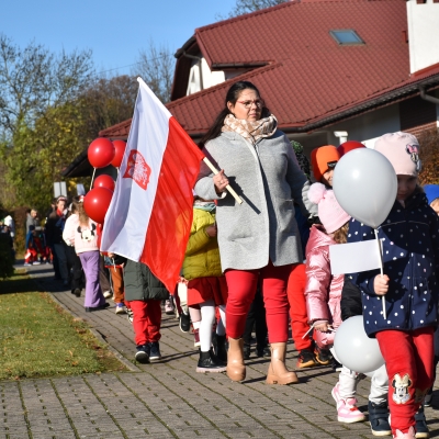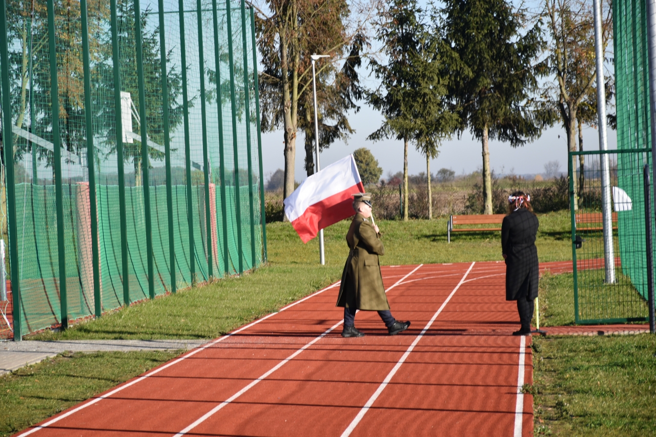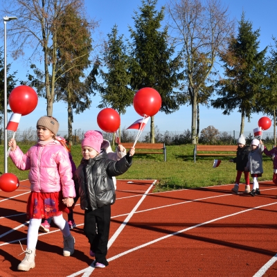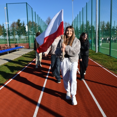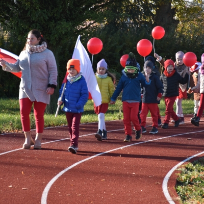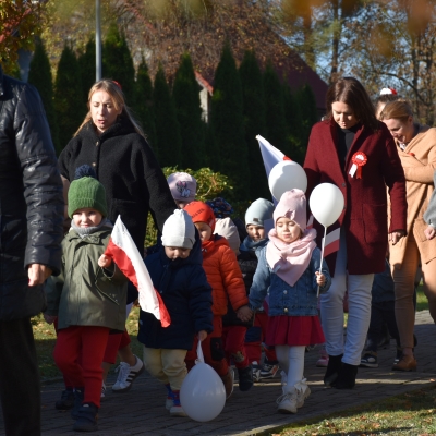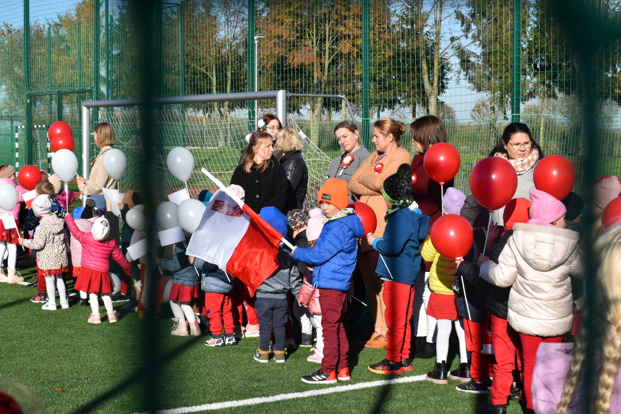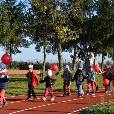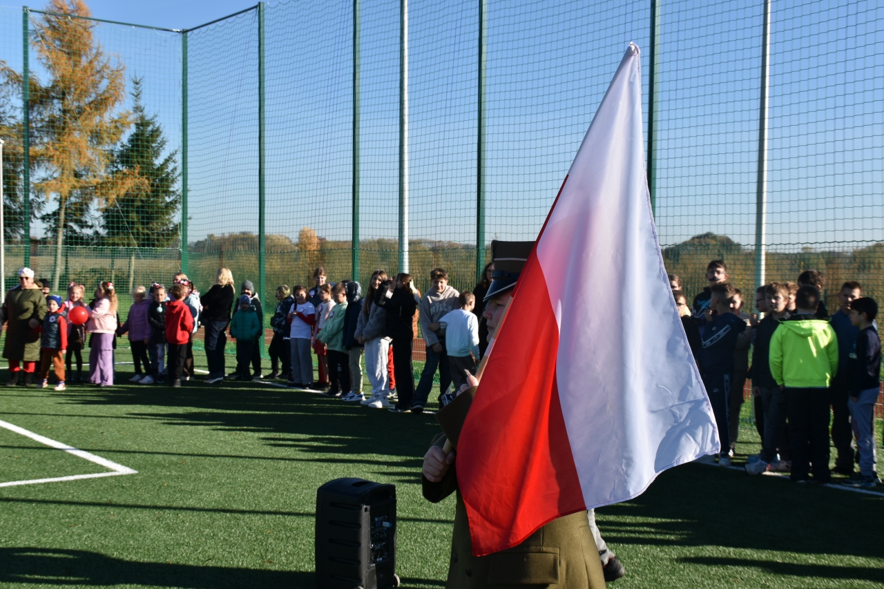 Symbolicznym rozpoczęciem obchodów była Sztafeta Niepodległości – uroczysty marsz z flagą narodową, prowadzony przez chorążego Krzysztofa Sachanka. Flaga wędrowała z rąk do rąk, począwszy od najmłodszej grupy przedszkolnej, aż po uczniów klasy ósmej.