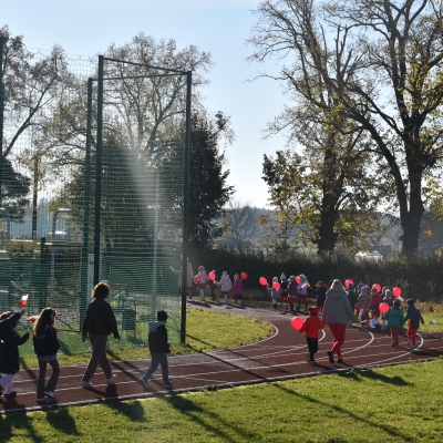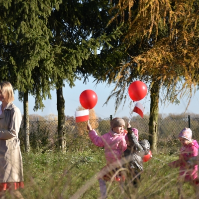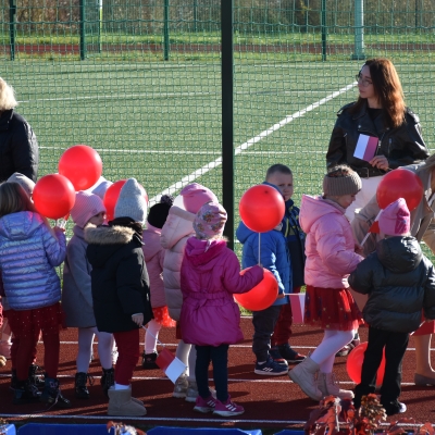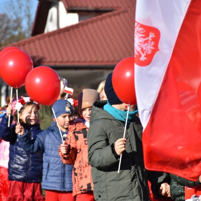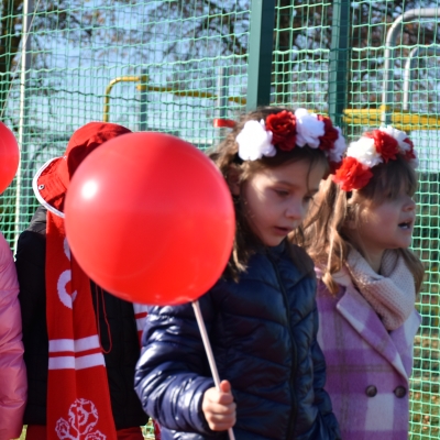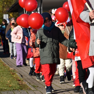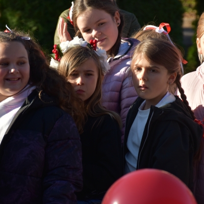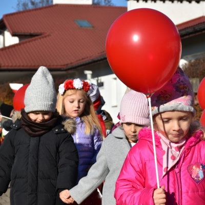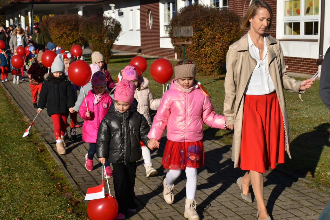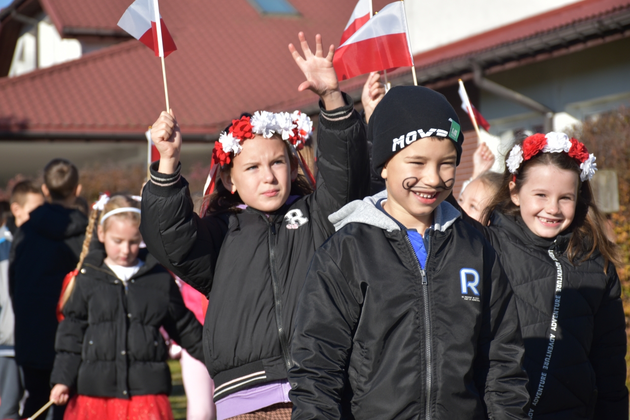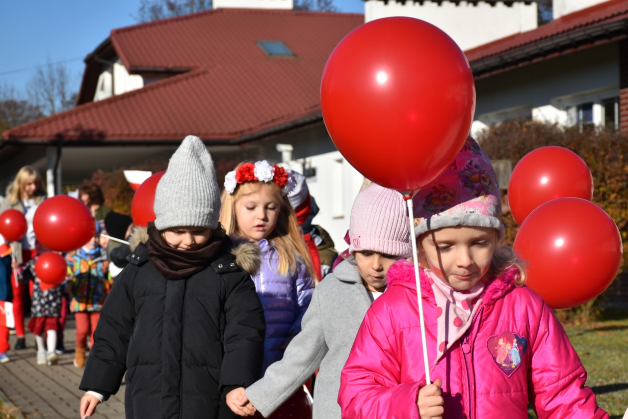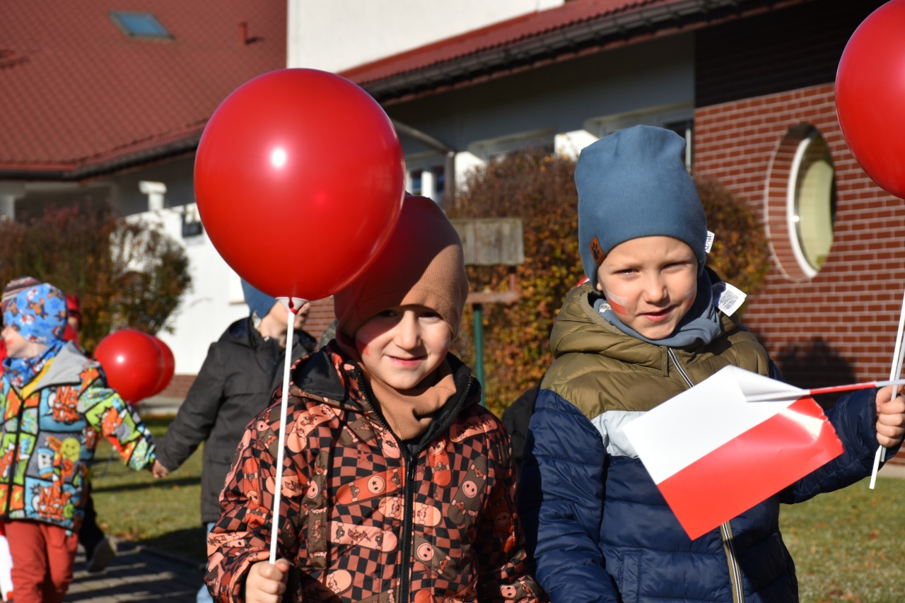 W dłoniach wielu uczniów powiewały biało-czerwone flagi, a balony w barwach narodowych dodawały wydarzeniu radosnego charakteru.
