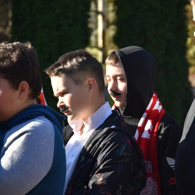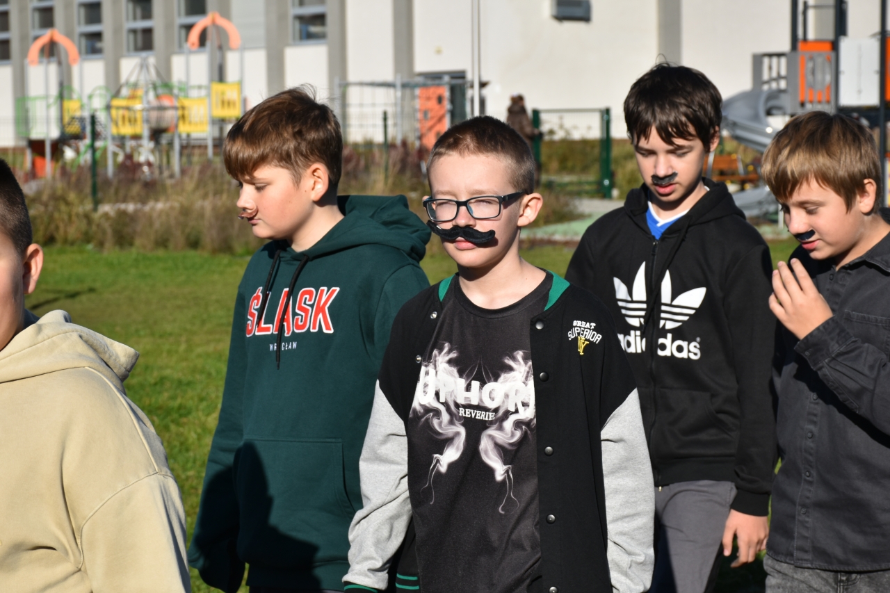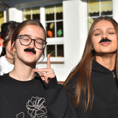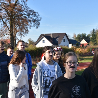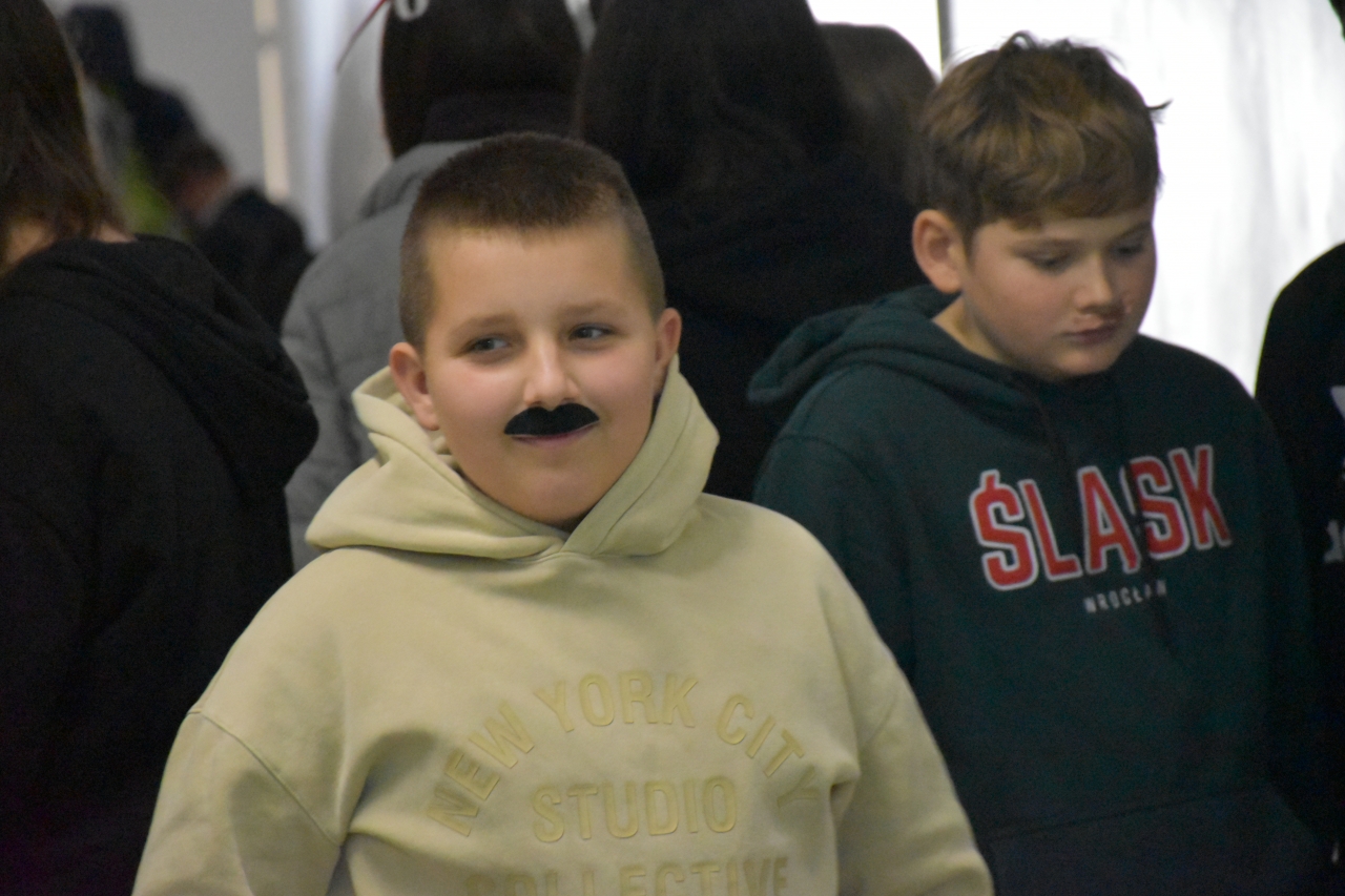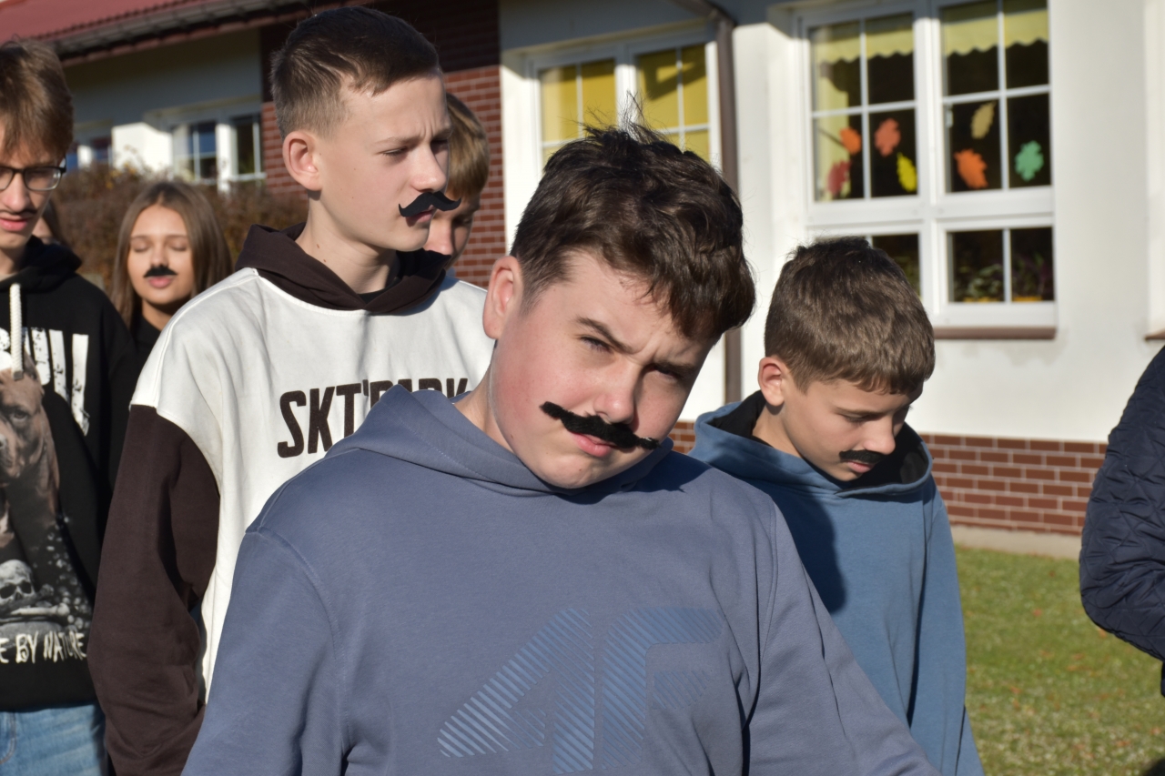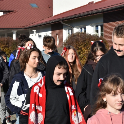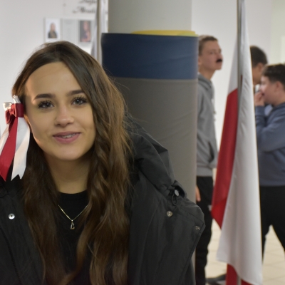 Obchody Narodowego Święta Niepodległości w naszej szkole rozpoczęliśmy już w czwartek. Od wczesnych godzin porannych w korytarzach panowała podniosła, patriotyczna atmosfera. Uczennice ubrane w biało-czerwone ozdoby – opaski i kokardy – oraz uczniowie z wąsami wprowadzili wszystkich w nastrój narodowego świętowania.