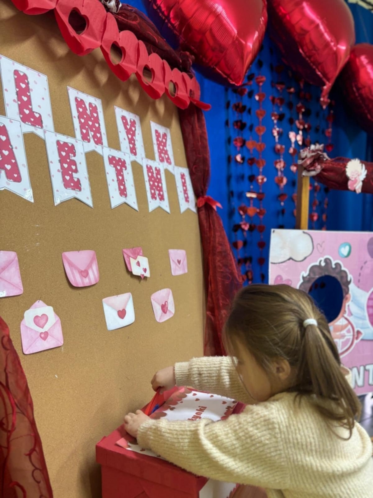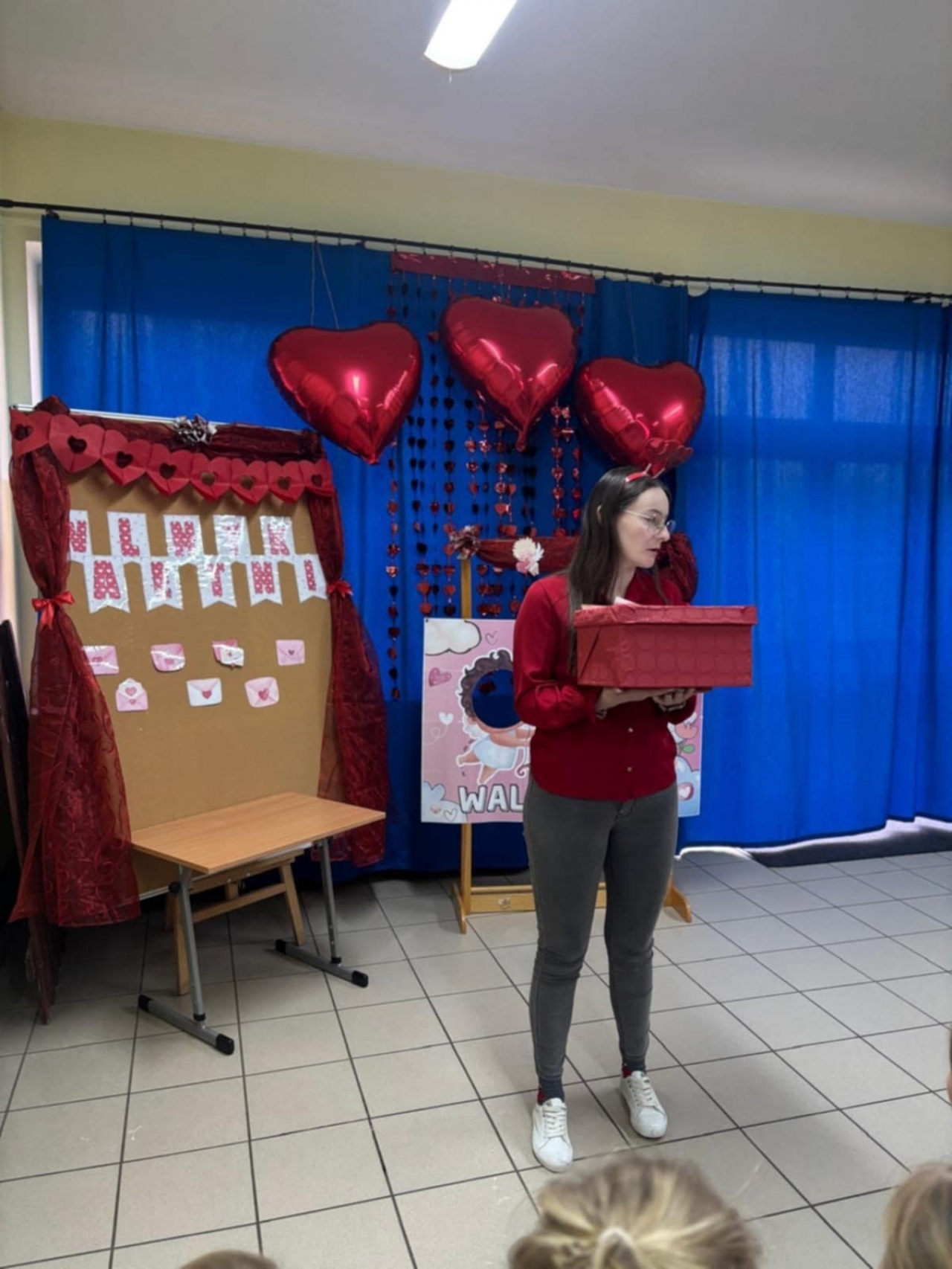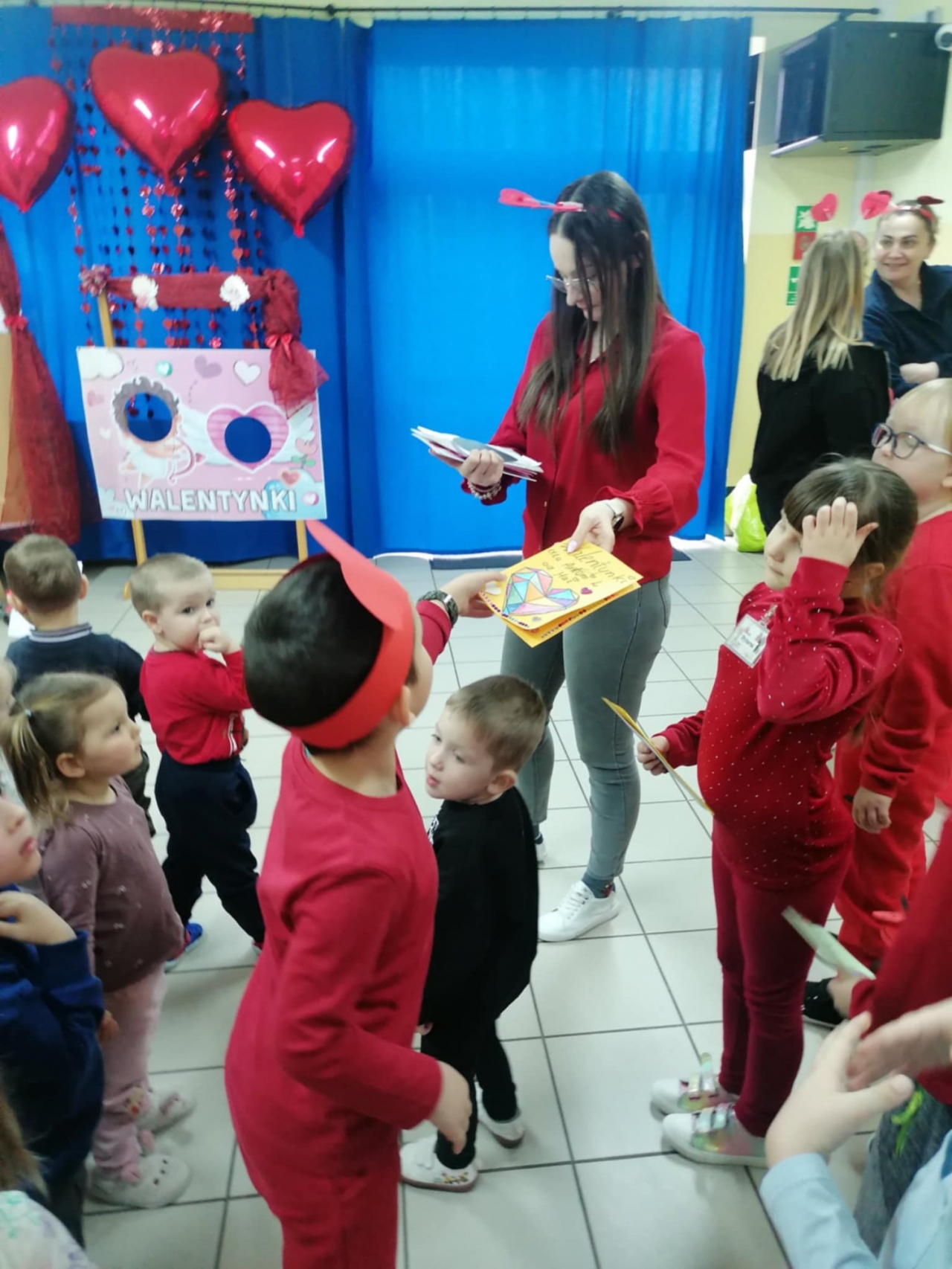 Ogromnym zainteresowaniem cieszyła się także, Poczta Walentynkowa. W holu przedszkola stanęła specjalna skrzynka, do której dzieci mogły wrzucać przygotowane kartki dla swoich kolegów, koleżanek oraz pań.